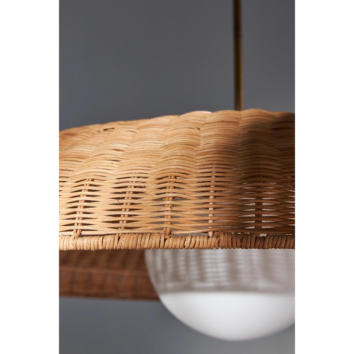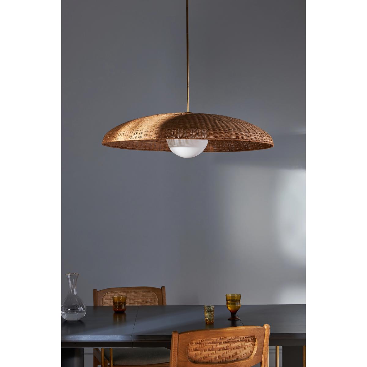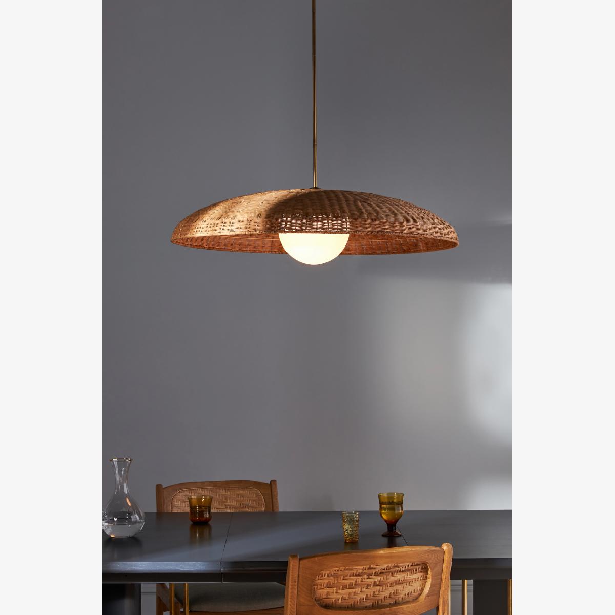 Crafted of woven rattan, this hanging light whisks a sense of modern bohemia to your living space. This item is CE listed, meaning it has been tested and approved to meet the government-regulated safety standards for the UK. Use with electrical outlets of 230v or lower, as anything higher can cause fire or injury. If you're purchasing this item for use outside of the United Kingdom, employ the adapter and voltage converter suited for your country Liz Pendant by Anthropologie