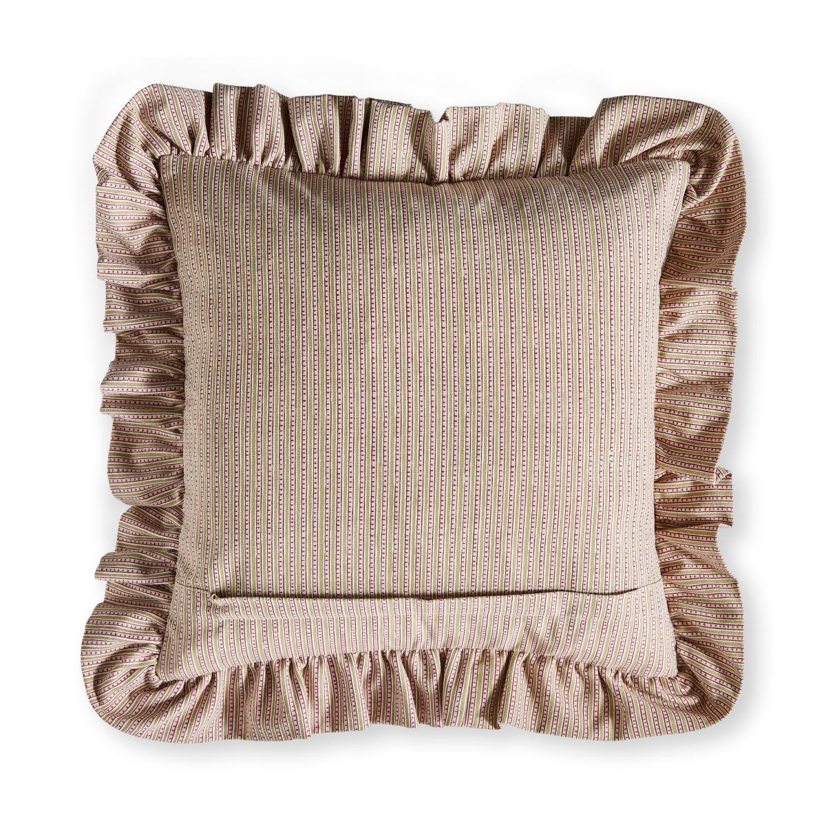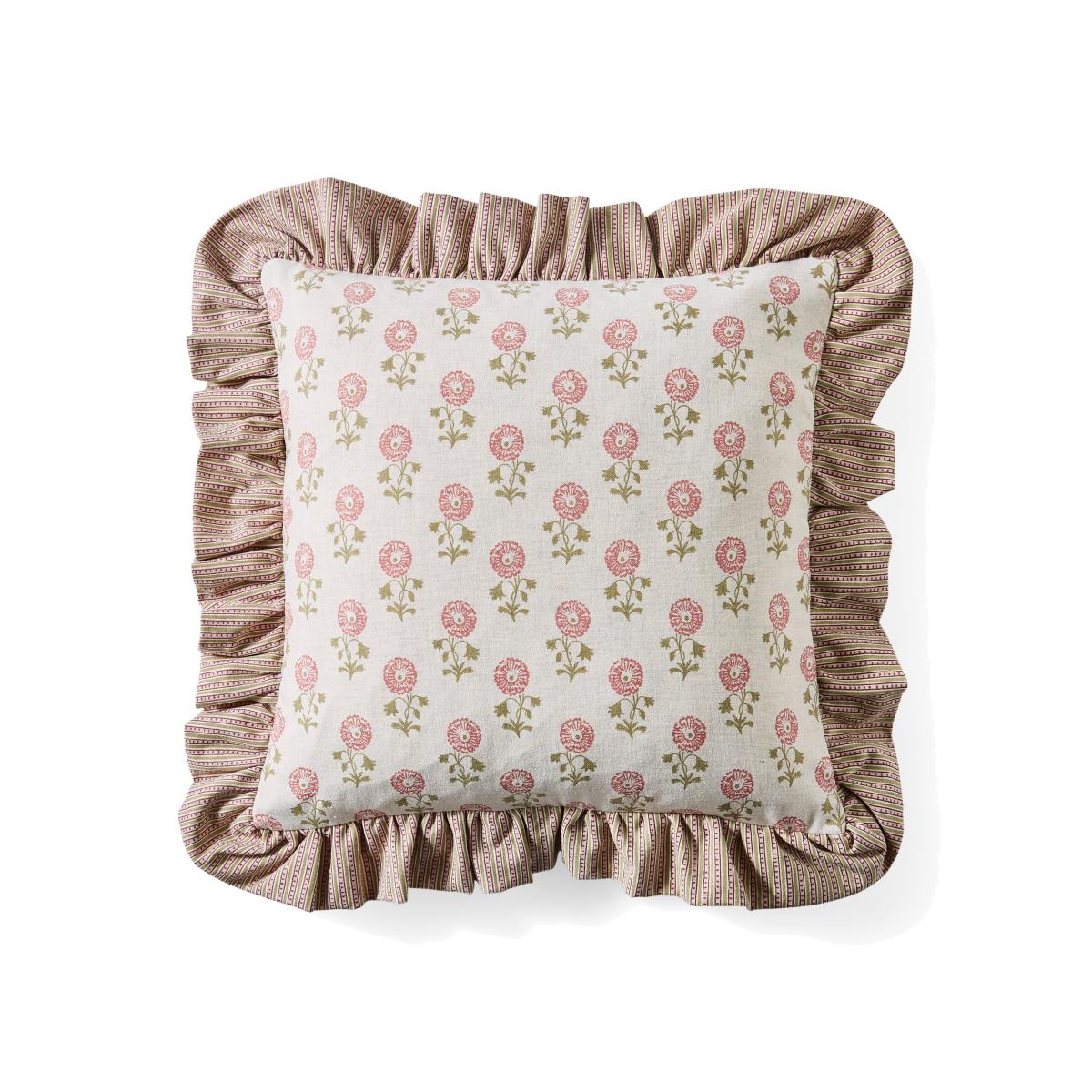 * Made from cotton* Machine washable* Floral design Bring vintage charm into your home with the Lizzy Tile Frilled Cushion Cover! With a floral print on the front, a striped reverse, and delicate 1.5cm frilled edges, it’s the perfect balance of classic and chic. Use it alone or pair with coordinated cushions for a stylish look.