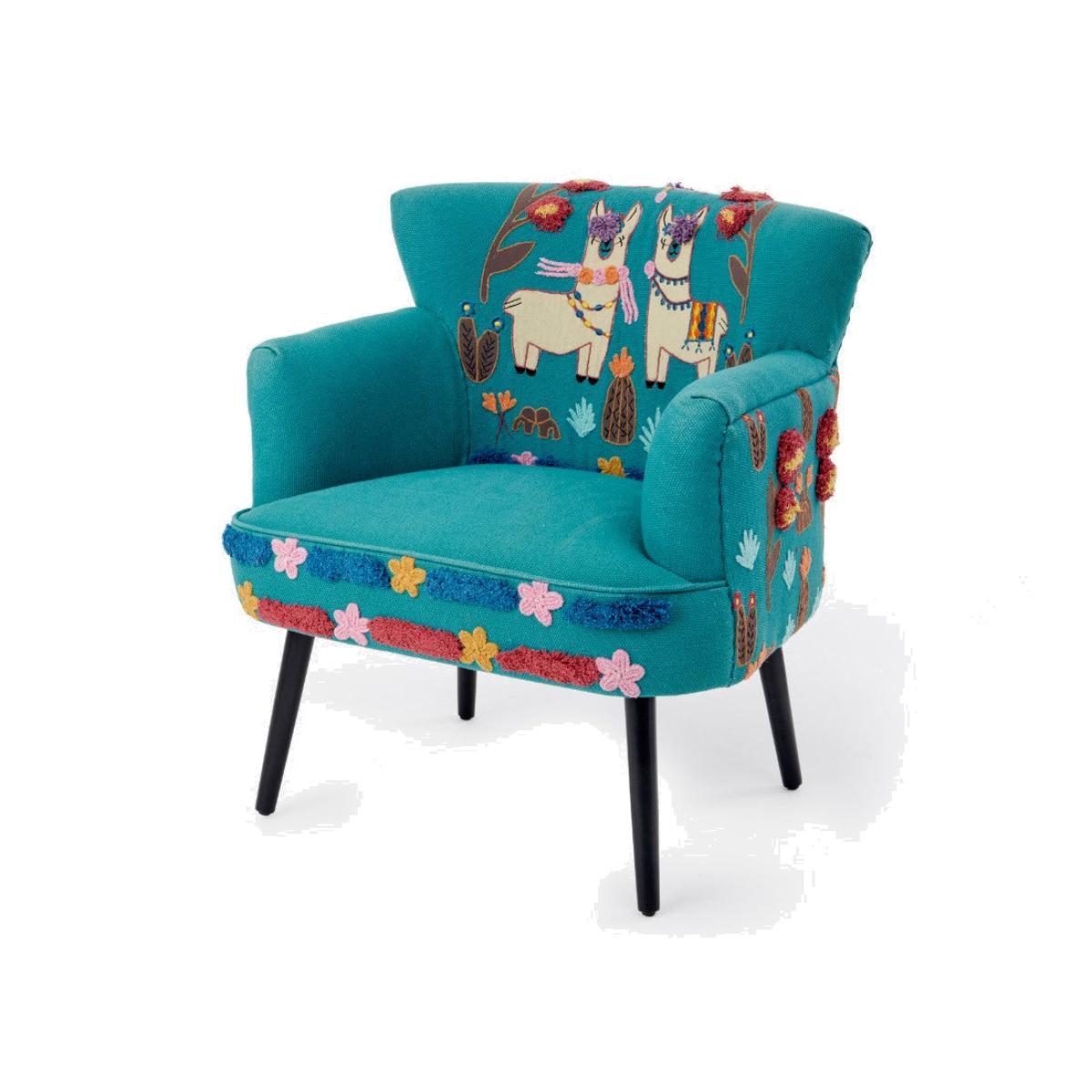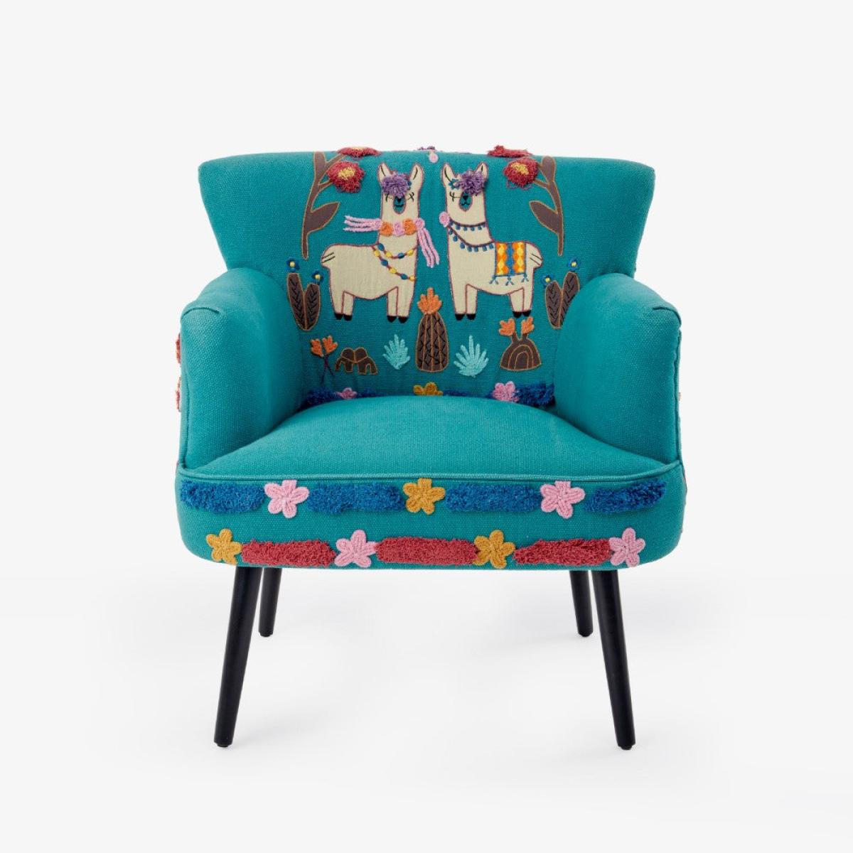 Llama Cotton Armchair With Embroidery, Multicoloured