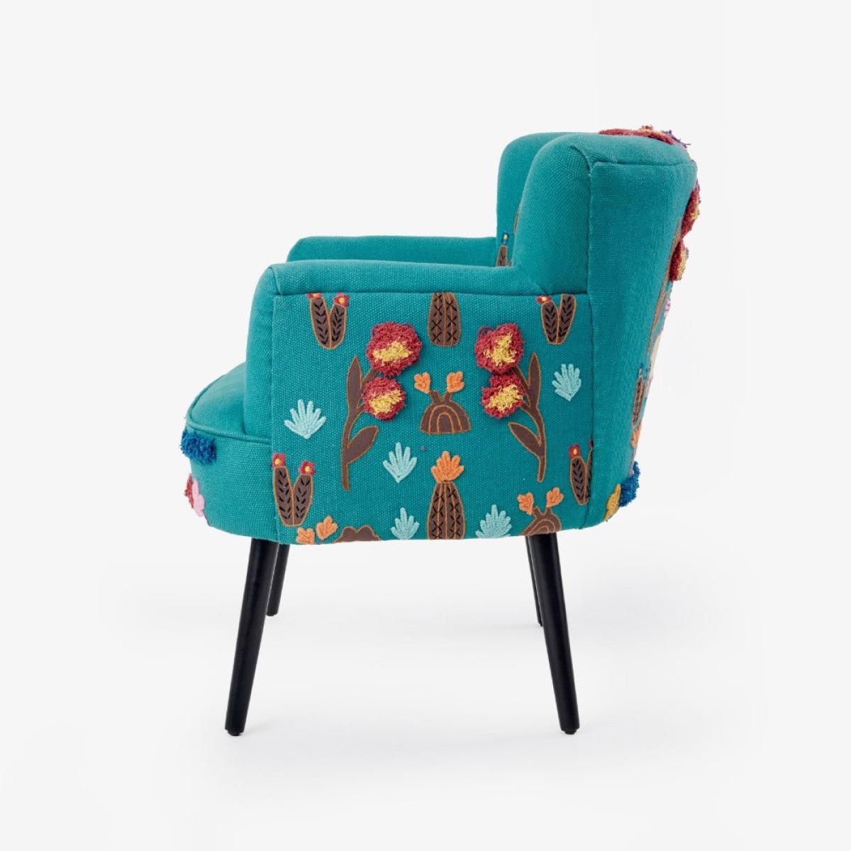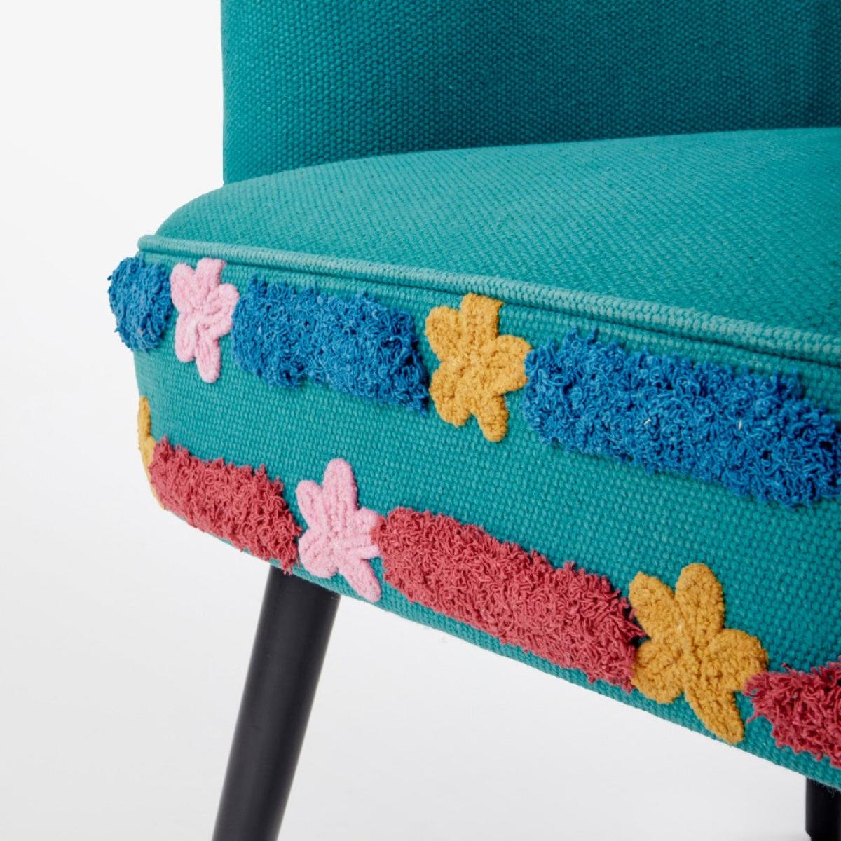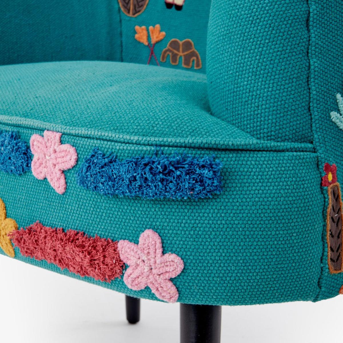 I love this armchair because of its playful and vibrant design, which can instantly lift the mood of any room. It’s a fantastic statement piece that works particularly well in eclectic, modern, or children’s spaces, adding a pop of colour and personality. The embroidery detailing adds texture and charm, making it a great focal point. Practical styling tips include pairing it with neutral-toned furniture to let the colours stand out, or mixing it with other colourful accessories for a lively, coordinated look. It’s also versatile enough to serve as a reading nook in a cosy corner or as an accent chair in a contemporary lounge, making it both functional and fun.