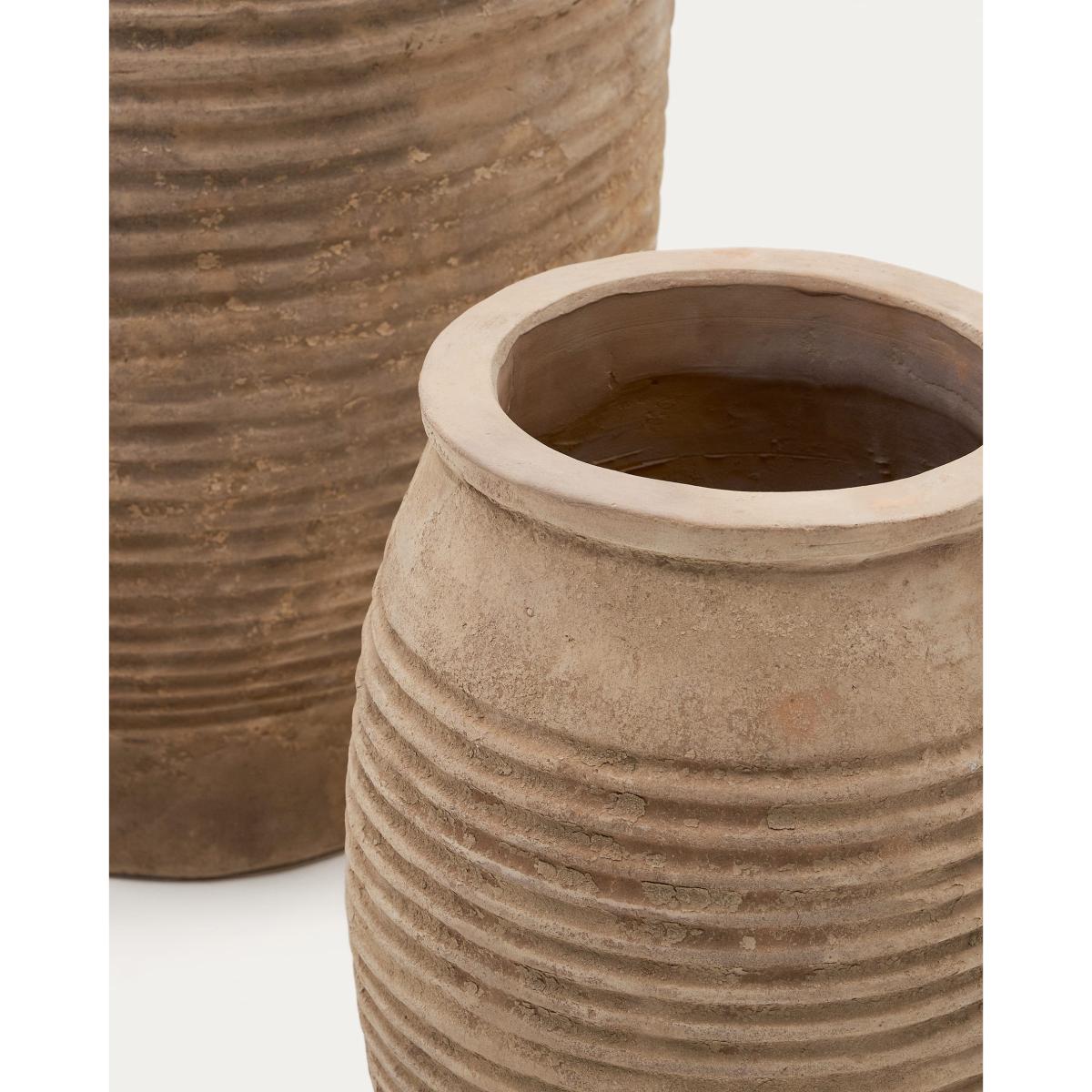 I really like these terracotta planters because of their natural finish and versatile shape, making them a great addition to both modern and rustic interiors. Their warm, earthy tone adds texture and warmth to any space, whether in a living room, hallway, or even outdoors. They work particularly well paired with lush greenery or minimalist plants, creating a relaxed yet stylish focal point. For practical styling, I recommend grouping them with other natural materials such as wood or wicker for a cohesive look. Additionally, consider placing smaller plants in the smaller pot to create height variations, or use them as standalone statement pieces on outdoor terraces or entryways to boost curb appeal.