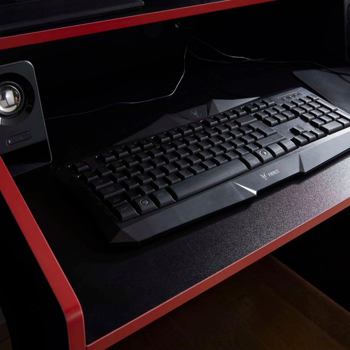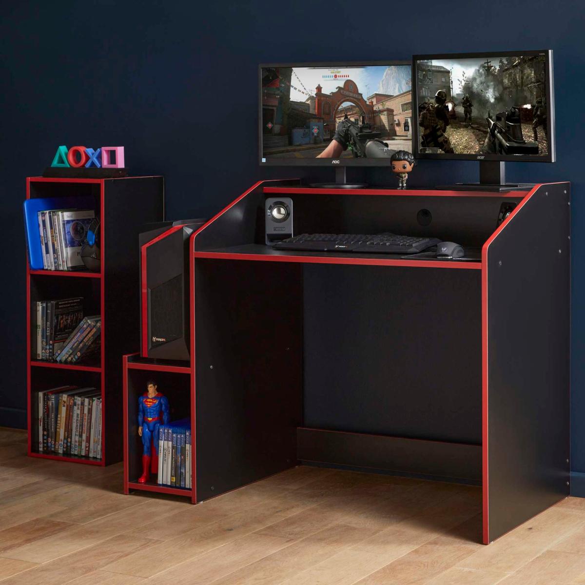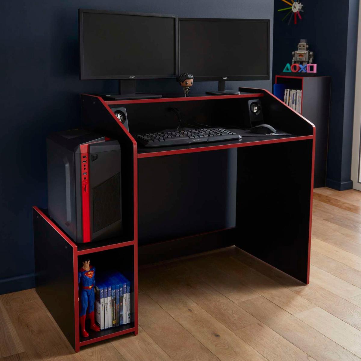 I really like this gaming desk for its bold, contemporary look, especially with its striking red accents that add a pop of colour to any room. It works well in modern or urban interiors, particularly those with sleek, minimalist themes or contrasting dark walls. Practical styling tips include pairing it with monochrome accessories or a neutral colour palette to let the desk stand out without overwhelming the space. To keep the setup neat, consider adding a few organisers or cable management solutions underneath or at the back, ensuring it remains functional for everyday use. It’s a statement piece that combines style with practicality, ideal for creating a dedicated gaming or workspace area.