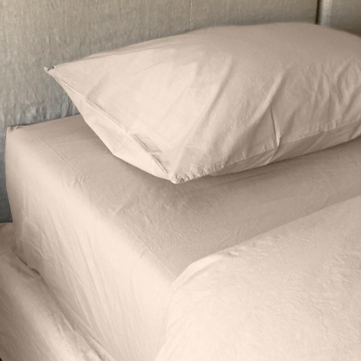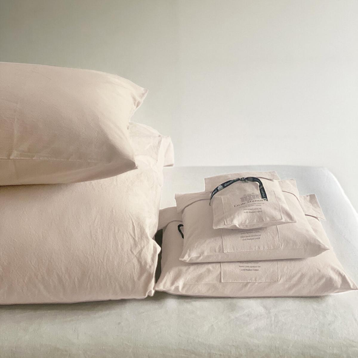 I love this pink washed cotton fitted sheet for its fresh, understated appeal and breathability, making it a great choice for adding a gentle splash of colour without overwhelming a space. It works particularly well in interiors that embrace soft, muted palettes or Scandinavian-inspired schemes, where natural textures and subtle tones are key. To style it effectively, consider pairing with crisp white or matching pastel bedding for a clean, cohesive look. Practical tips include opting for neutral-toned cushions or throws to keep the overall aesthetic calm and inviting, or layering with textured bedding to add visual interest and comfort. The breathable cotton fabric ensures both style and functionality, ideal for creating a relaxed, comforting bedroom environment.