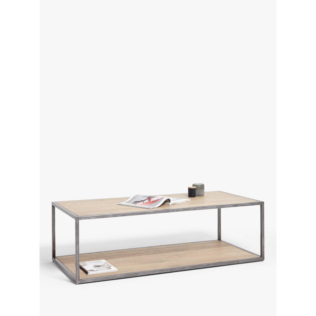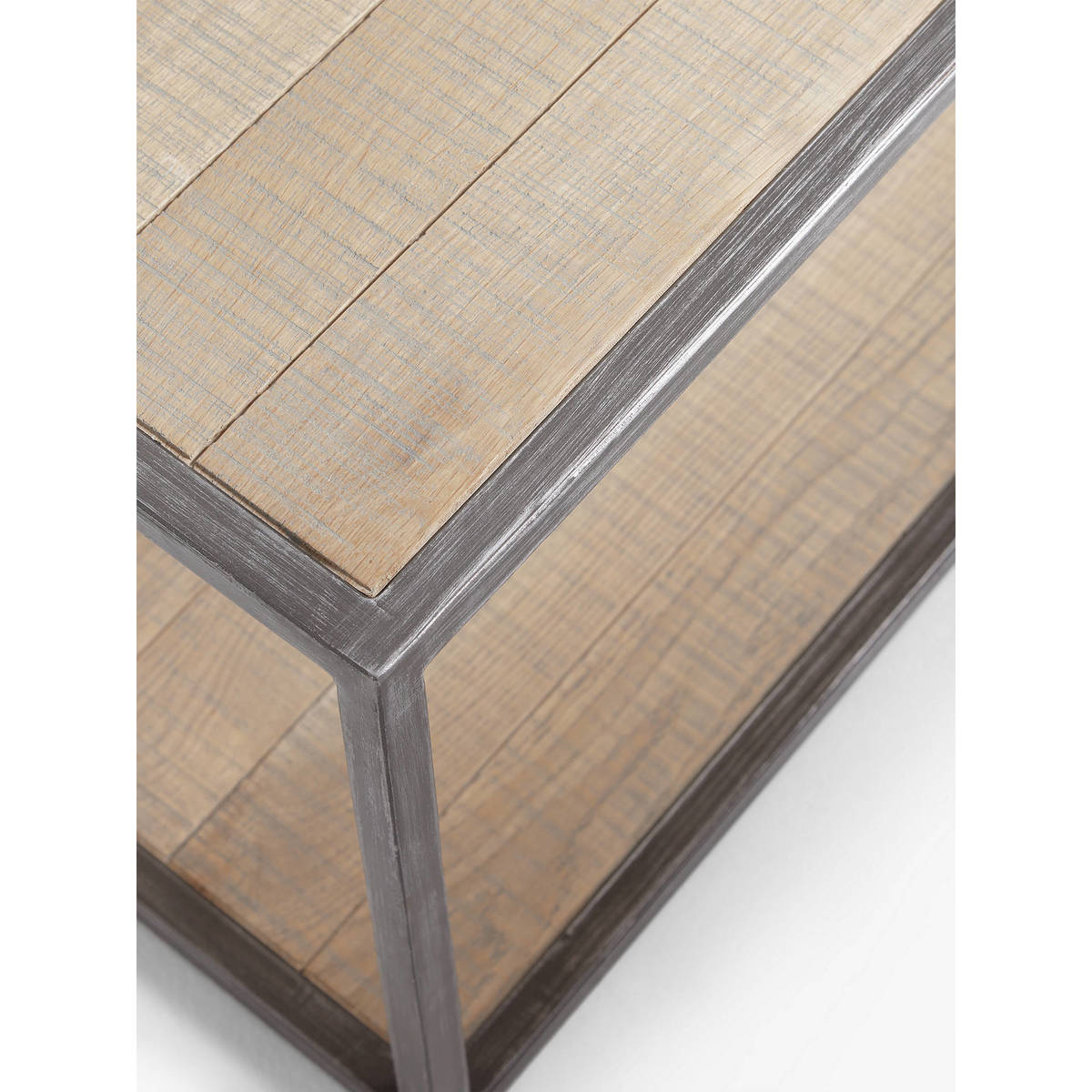 Designed by Loaf's in-house design team exclusively for John Lewis & Partners, the robust and rustic-inspired Acorn coffee table is a functional centrepiece for your living room. Made from solid oak in a grey wash and incorporating two shelf storage options, it has a tactile band sawn finish that highlights the natural, unique grain of the wood. This vintage style makes it ideal for country-inspired settings and the hand-welded, brushed metal frame creates an airy, open profile.