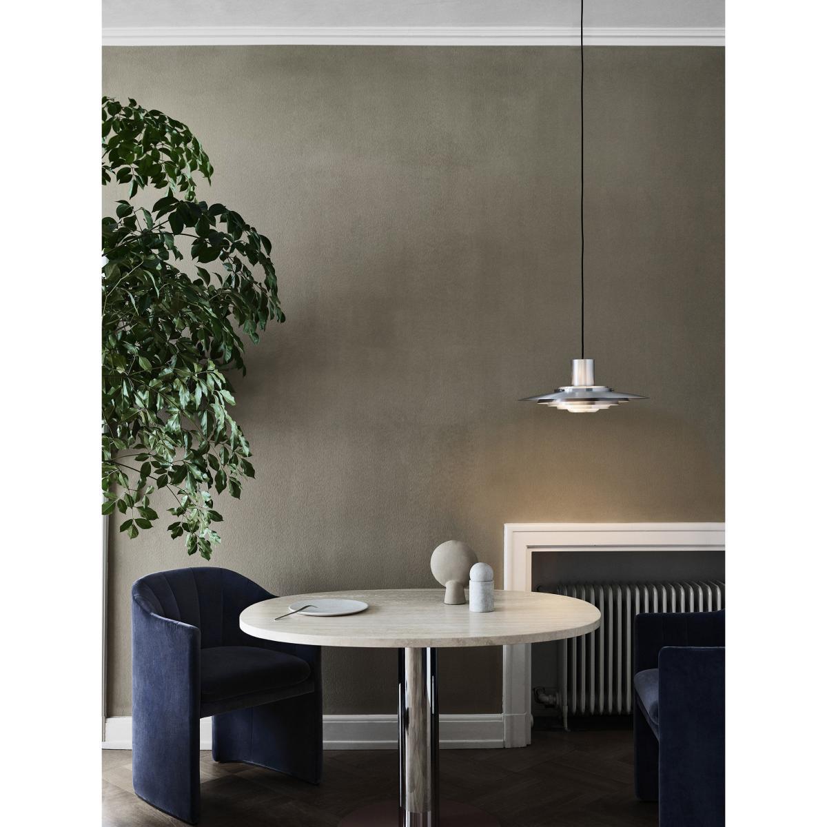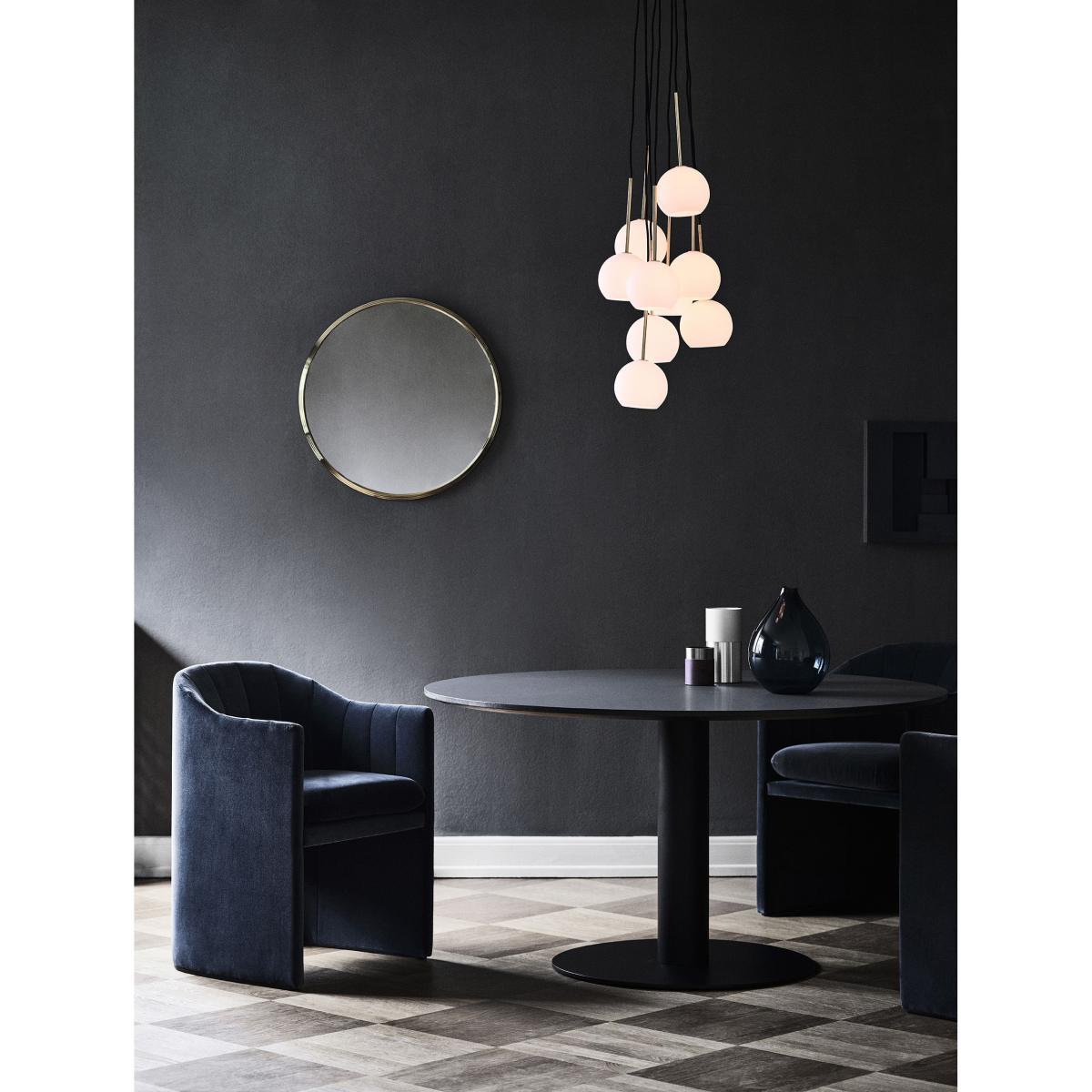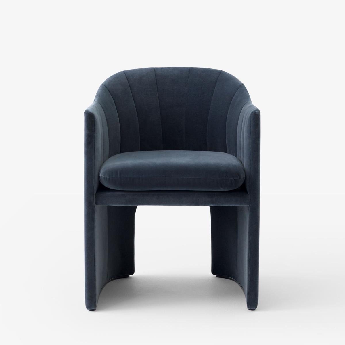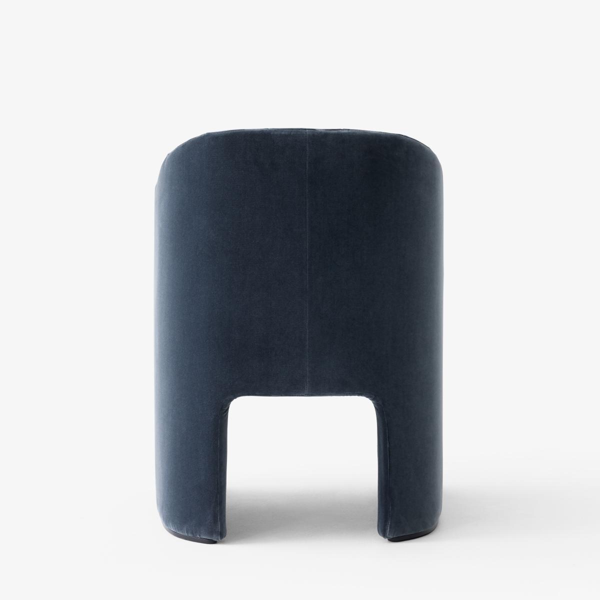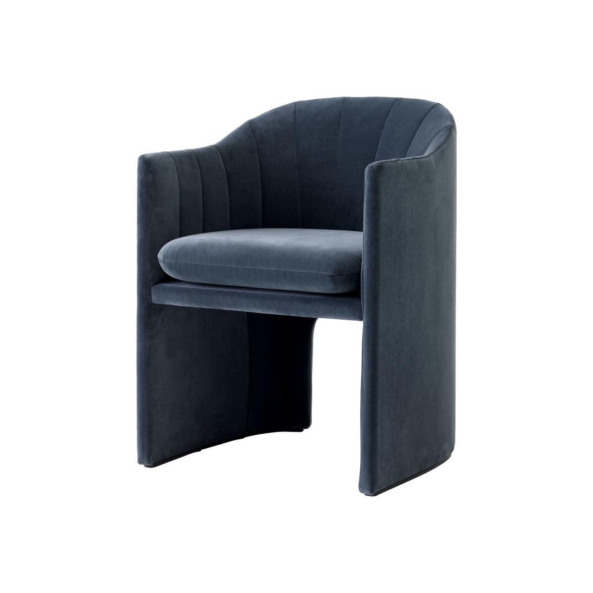 Retro, glamorous and chic, the Loafer armchair is from the Space Copenhagen duo of Danish designers commissioned by the prestigious SAS Royal Hotel, designed by Arne Jacobsen in Copenhagen. Designed to occupy the legendary foyer of the hotel, the Loafer armchair, through its lines, is reminiscent of the circular columns and the spiral staircase which overlook the space. Compact, comfortable and inviting, the Loafer armchair lets you sit down without feeling exposed. The generous and welcoming seat is padded with high-resilience foam and polyester. The armchair is completely upholstered in high-end fabric. This Small version of the Loafer armchair will fit in perfectly around a table, in a lounge, a bedroom or an entrance hall, granting your room a warm and sophisticated touch.