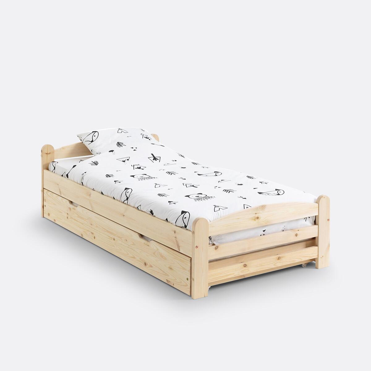 This simple and practical Loan solid pine bed is excellent value for money. In solid raw pine to paint or with lacquered acrylic finish. Product Details • Sleeping area 90 x 190cm. • In untreated solid pine or lacquered acrylic finish • Delivered with slatted bed base in untreated solid pine. • Made in Europe. Dimensions. Total: • Length 196 cm • Width 95cm, • Height at bed head 53cm, base 44 cm. Delivery:Assembly required. Available for home delivery. Note! Please check that all access points are large enough to accommodate your delivery (doors, stairs, lifts) • Made in Europe. Parcel Dimensions:1 parcel • 202 x 21.5 x 15.5 cm • 22kg. Home Delivery:Your Loan bed is sold for self-assembly. It will be delivered to your door!Note! Please check that all access points are large enough to accommodate your delivery (doors, stairs, lifts).