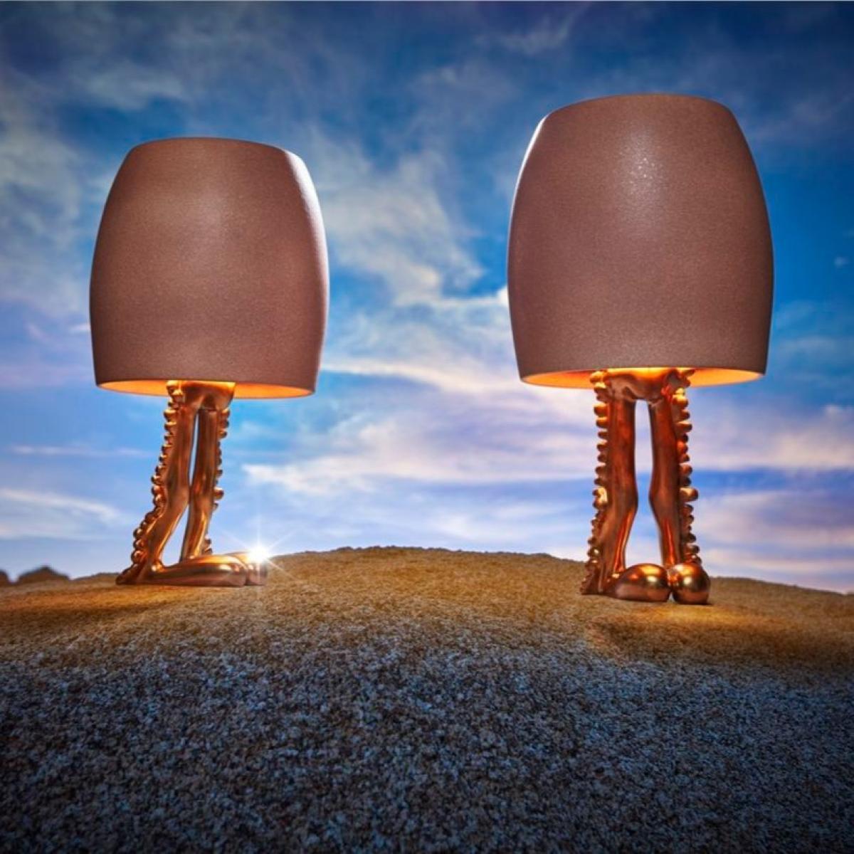 The L’OBJET Haas Brothers collection is a meeting of imaginative minds and skilled hands. Inspired by the otherworldly landscape of Joshua Tree, Los Angeles-based artists Simon and Nikolai Haas worked in close collaboration with the master craftsmen at L’OBJET to create a collection that spans tableware, home décor, textiles and fragrance. Together, they have brought to life a family of characterful creatures with the highest quality of finish and function. These are objects to be cherished. In using them, everyday moments become memorable; the ordinary becomes extraordinary. The Haas lighting collection is composed of 2 otherworldly table lamps. The endearing Simon Leg Table Lamp is beloved for its bashful, expressive brass legs and blushing earthenware shade. The porcelain Mojave Moon Table Lamp casts a dramatic glow through delicate porcelain walls, revealing deep relief surface sculpture of the desert skyline.