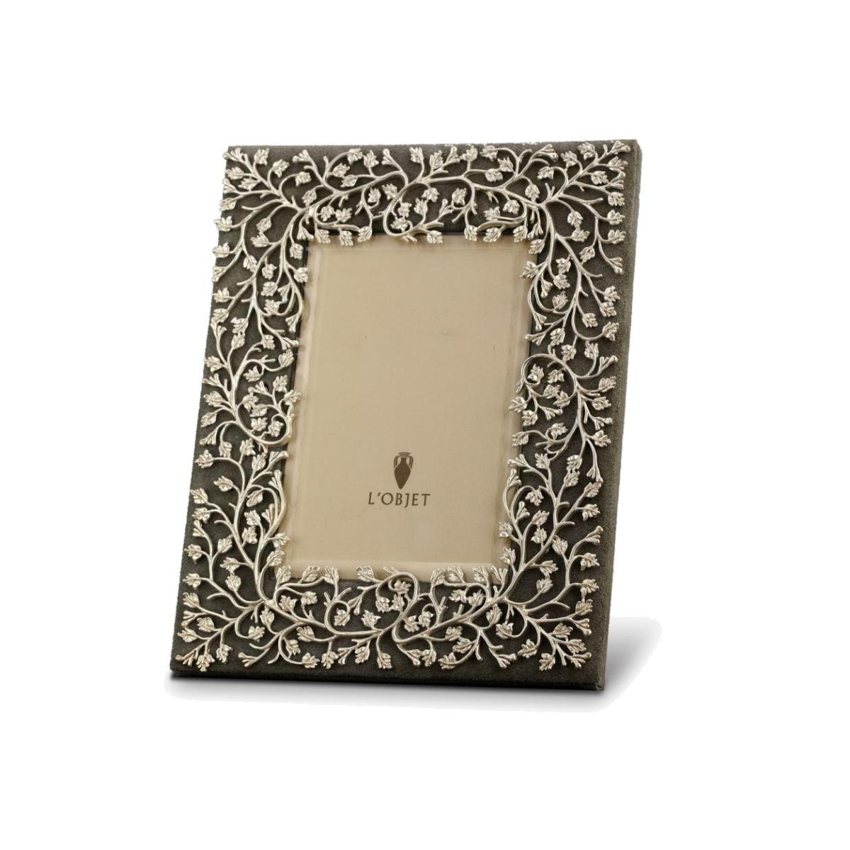 Emulating centuries of fine jewelry design and technique, L'Objet frames are meticulously handcrafted and incorporate 24. K gold and platinum plating, beveled glass, satin lining and Italian leather and suede backs with beautifully detailed closures. Presented in a luxury gift box.