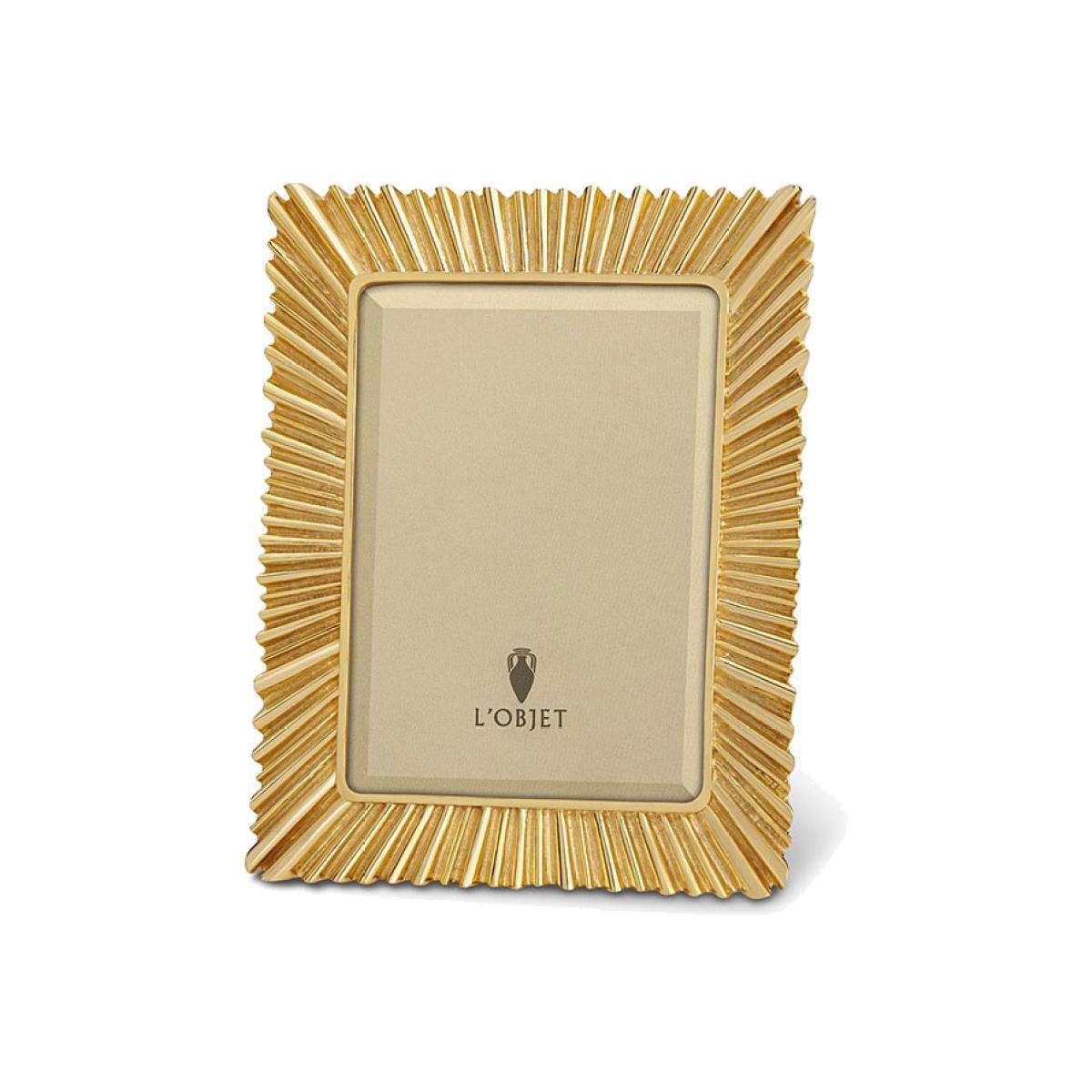 Emulating centuries of fine jewellery design and technique, L'Objet frames are meticulously handcrafted and incorporate 24. K gold and platinum plating, beveled glass, satin lining and Italian leather and suede backs with beautifully detailed closures. Presented in a luxury gift box.
