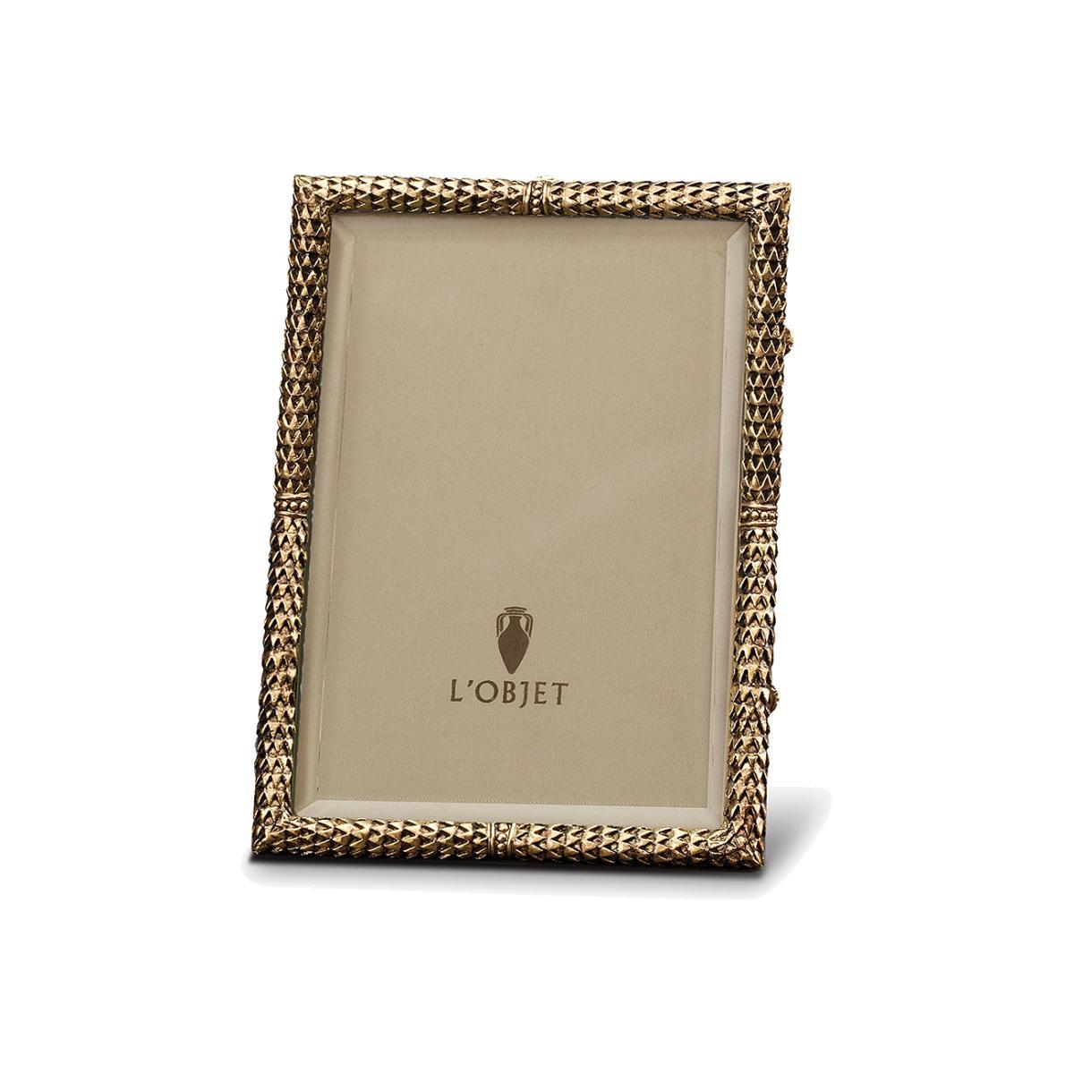 Emulating centuries of fine jewellery design and technique, L'Objet frames are meticulously handcrafted and incorporate 24. K gold and platinum plating, beveled glass, satin lining and Italian leather and suede backs with beautifully detailed closures. Presented in a luxury gift box.