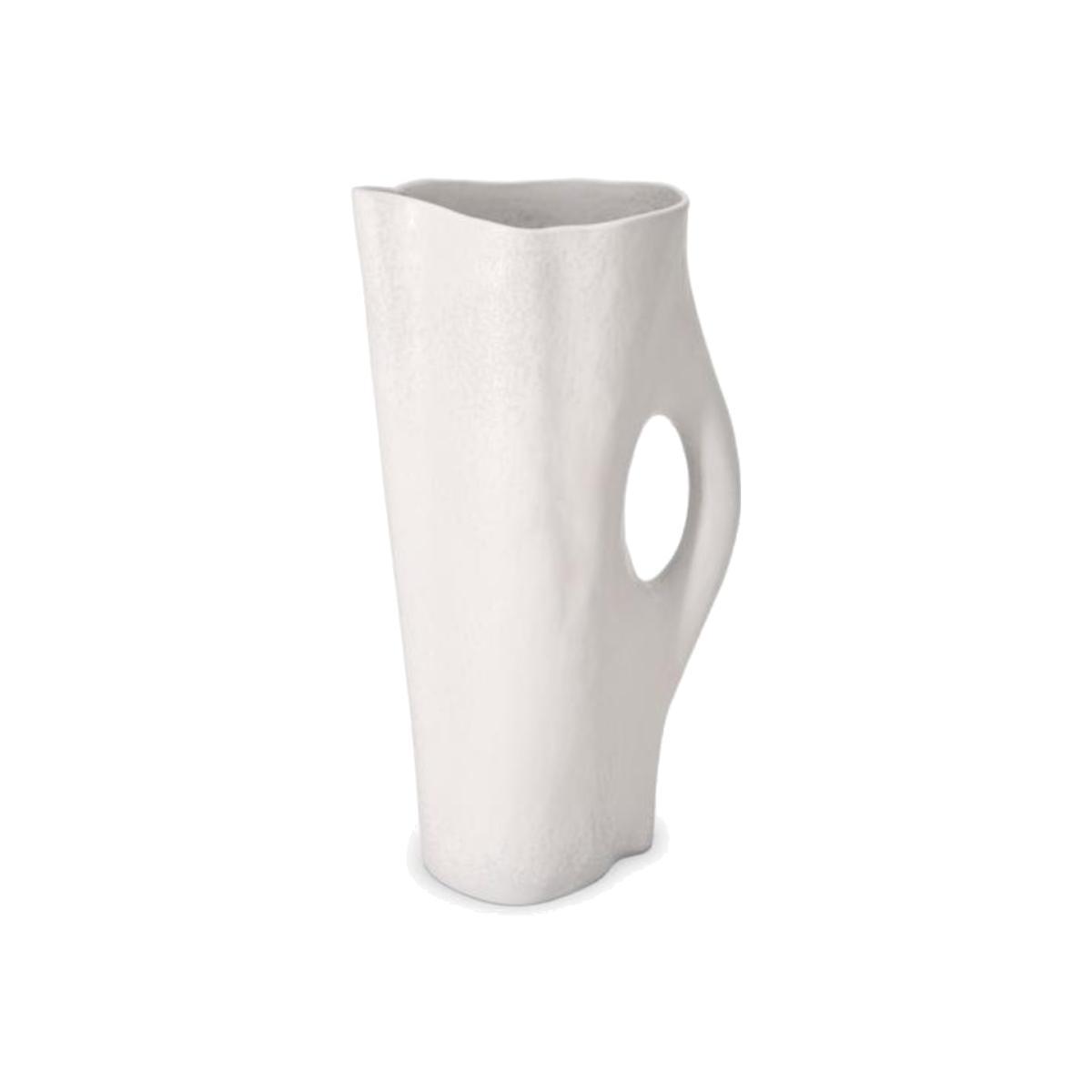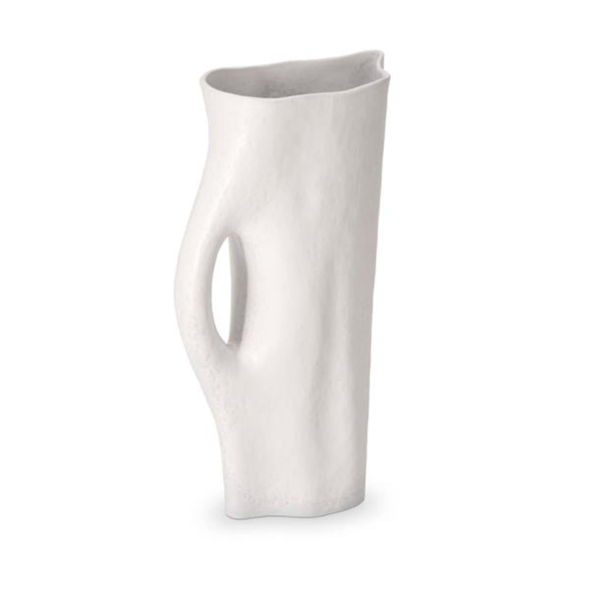 I love this pitcher-style vase for its sculptural quality and understated elegance. Its organic shape and clean white finish make it a versatile piece that can complement both contemporary and minimalist interiors. It's particularly effective when paired with a single stem or a small bouquet, allowing the form to be the visual focus. Practical styling tips include placing it on a mantel or side table, where it can be appreciated up close, or using it as a standalone statement in a neutral space. Its shape lends itself well to casual, relaxed settings, but it can also elevate more sophisticated interiors when paired with modern decor.