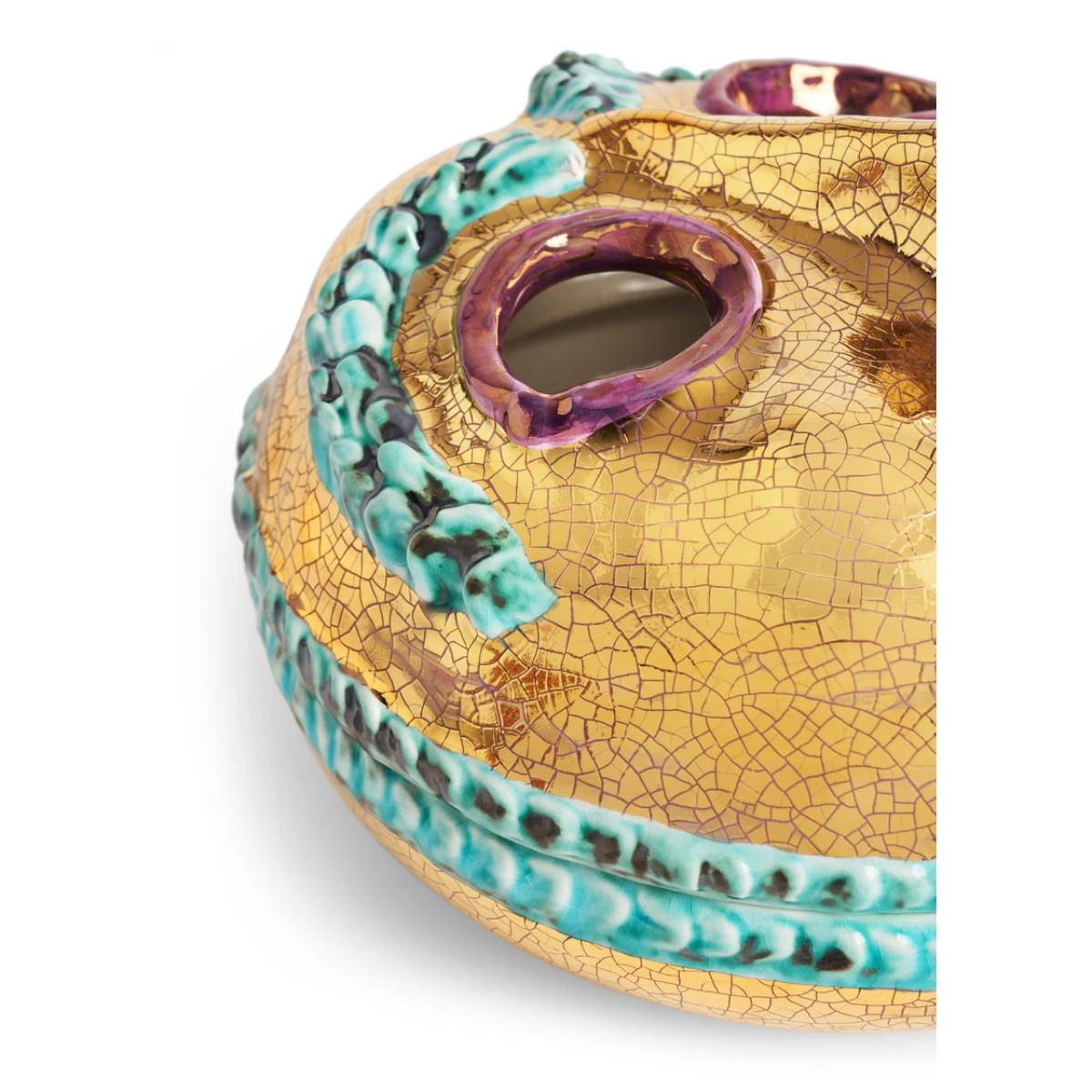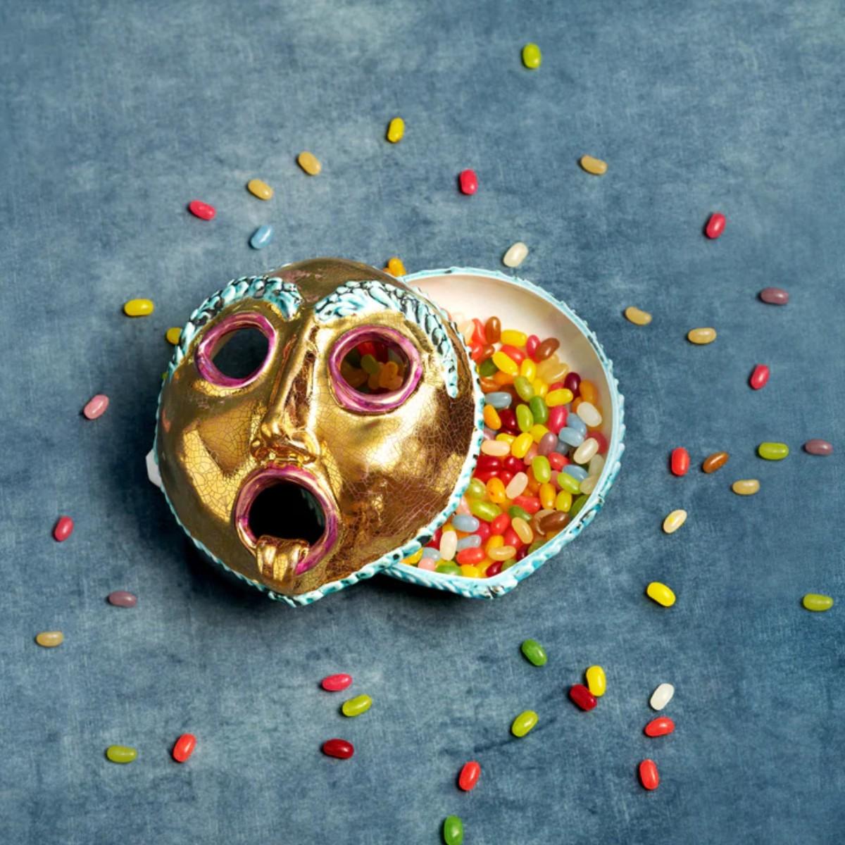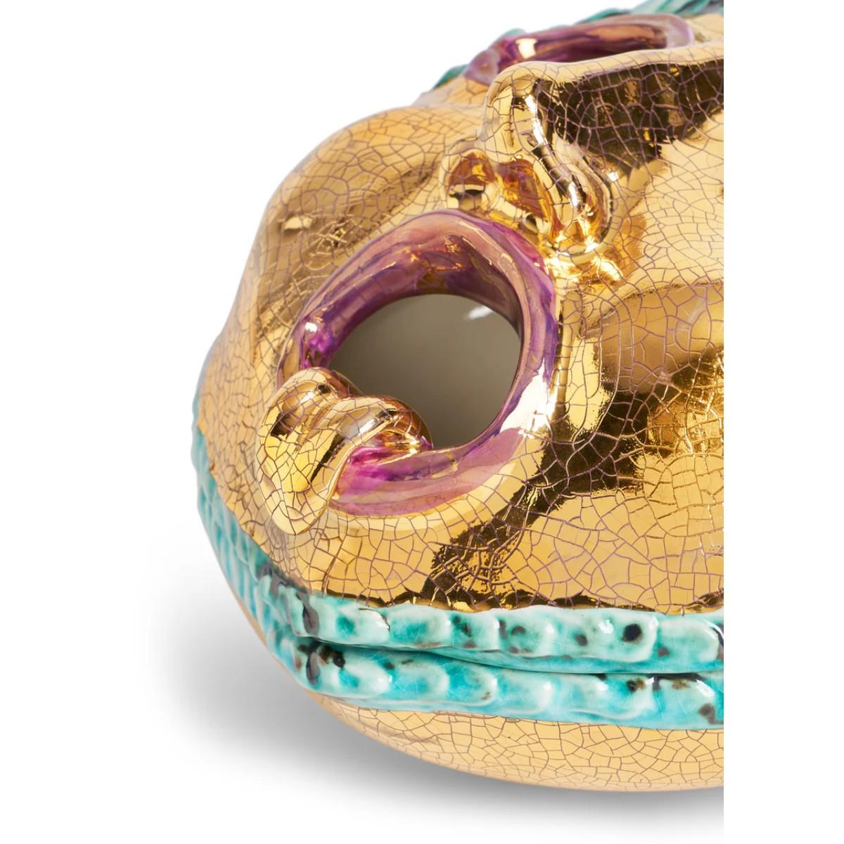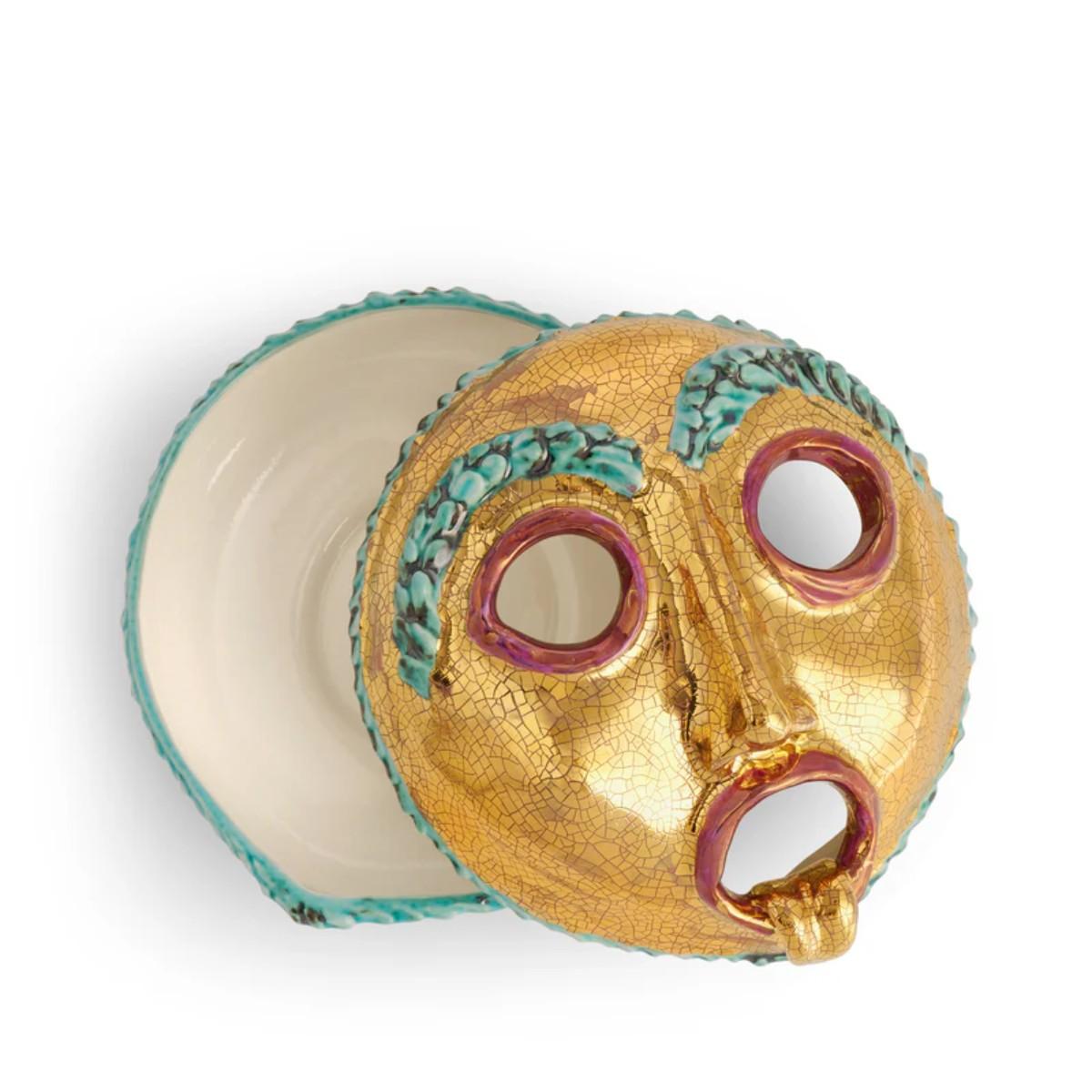 A true collector’s delight, the Mask Box exemplifies the playful artistry and impeccable craftsmanship of the astounding collaboration between L'Objet and Ruan Hoffmann. Meticulously crafted in stoneware and adorned with signature 24k gold, this whimsical yet refined piece is an ode to bold creativity. The expressive design, enhanced with hand-painted details in vibrant hues, adds a touch of wit and intrigue to any setting. Designed to be both functional and decorative, the Mask Box opens to reveal a hidden compartment, ideal for storing cherished trinkets or offering a playful surprise, a testament to L’Objet’s dedication to luxurious craftsmanship and the extraordinary vision of Ruan Hoffmann.