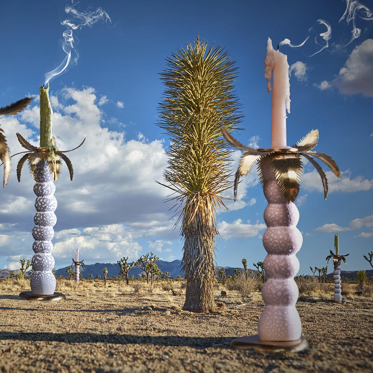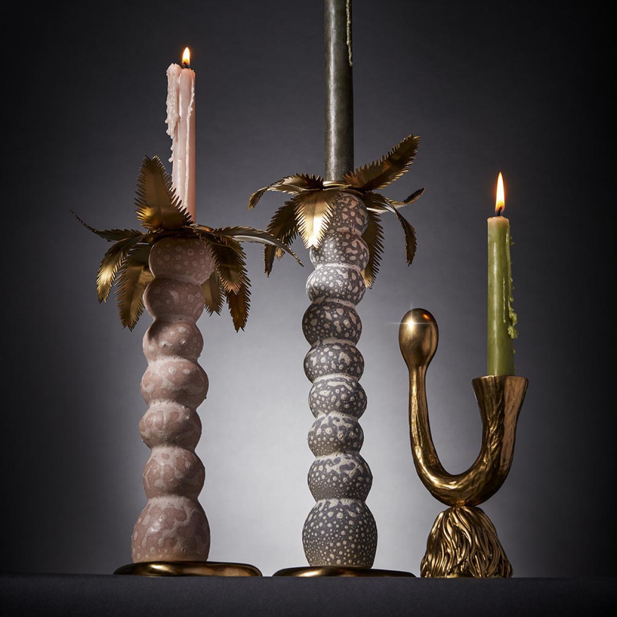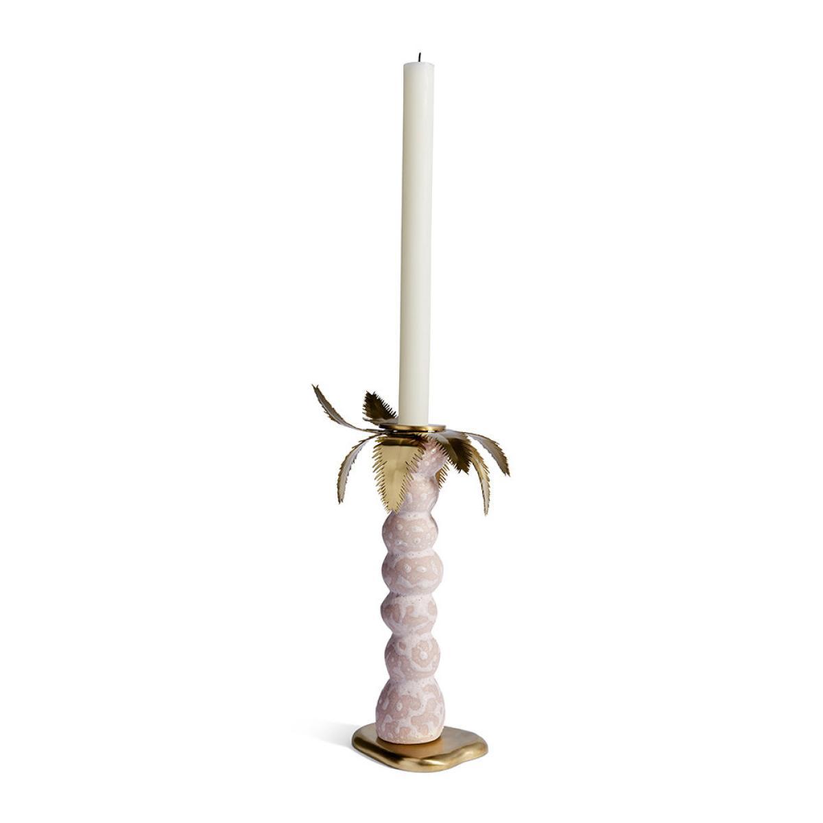 Bring some imagination into your home with this Mojave Palm candlestick from L'Objet is the perfect centrepiece. Made in collaboration with the Haas Brothers, this candlestick has been inspired by the otherworldly landscape of Joshua Tree national park. Featuring porcelain palm trunks with custom glazes and laser-cut brass fronds, this palm is easy, breezy & the perfect amount of whimsy. Key features: * Candlestick * Material: earthenware, brass * Dimensions: Ø7.75xH10cm * Collaboration with the Haas Brothers * Abstract design inspired by the Joshua Tree landscape * 24k gold accents