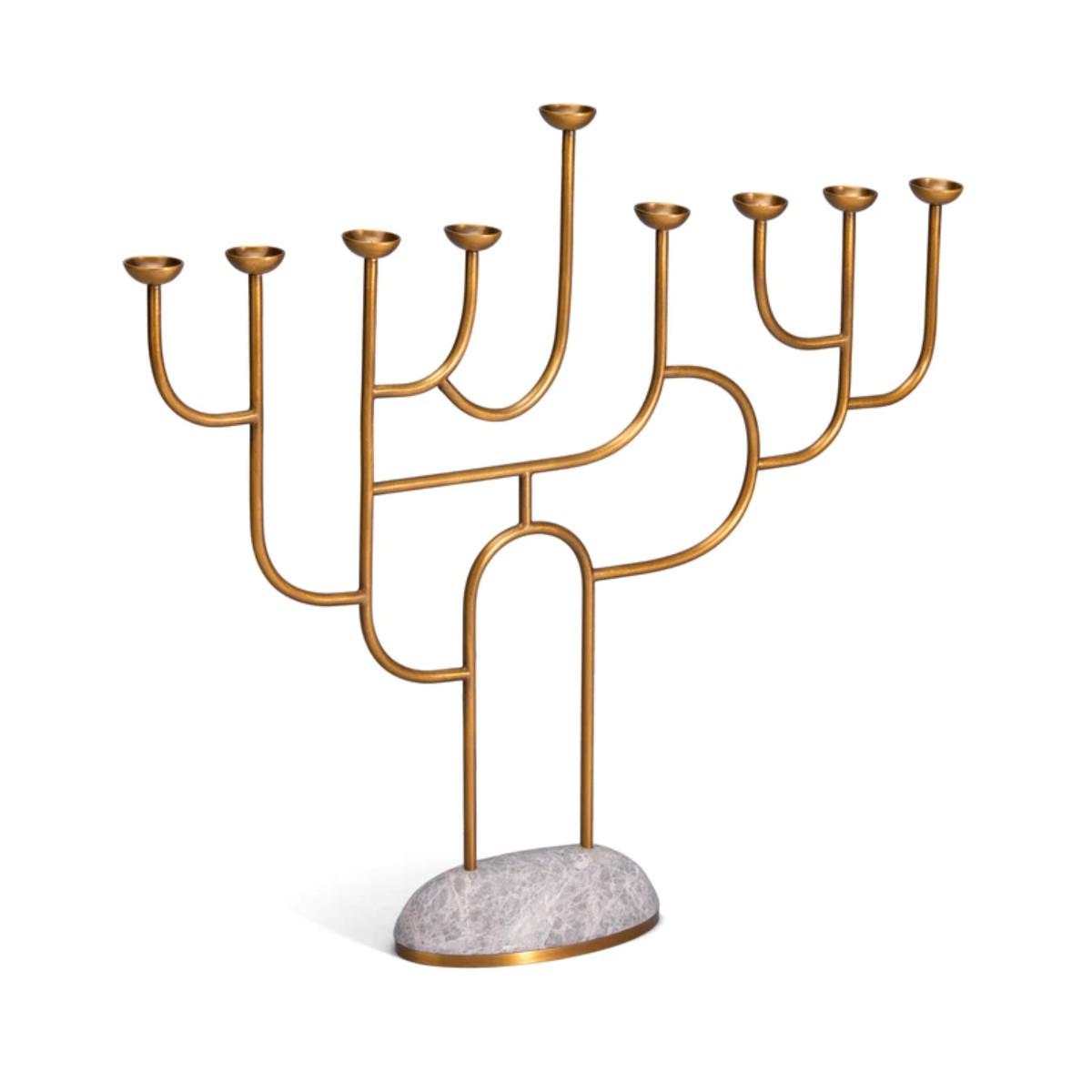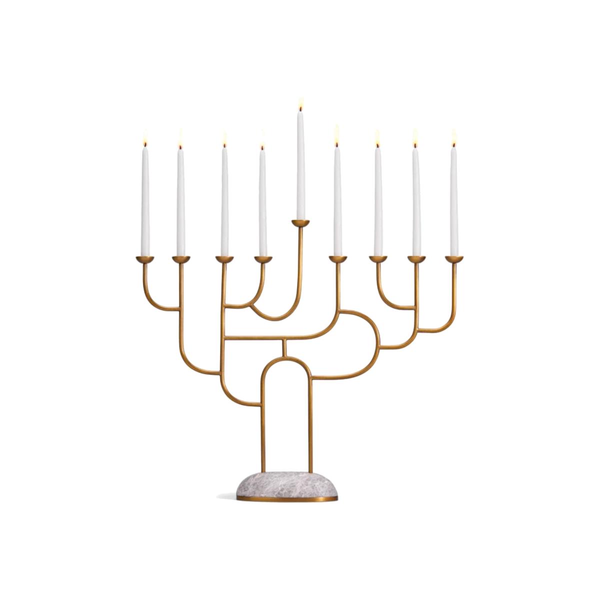 Inspired by the street’s maze in the old City of Jerusalem. Hand sculpted in brass and gris-marble, this modern take on the Hanukkah menorah evokes a sense of lightness and balance through its abstract, geometric structure.