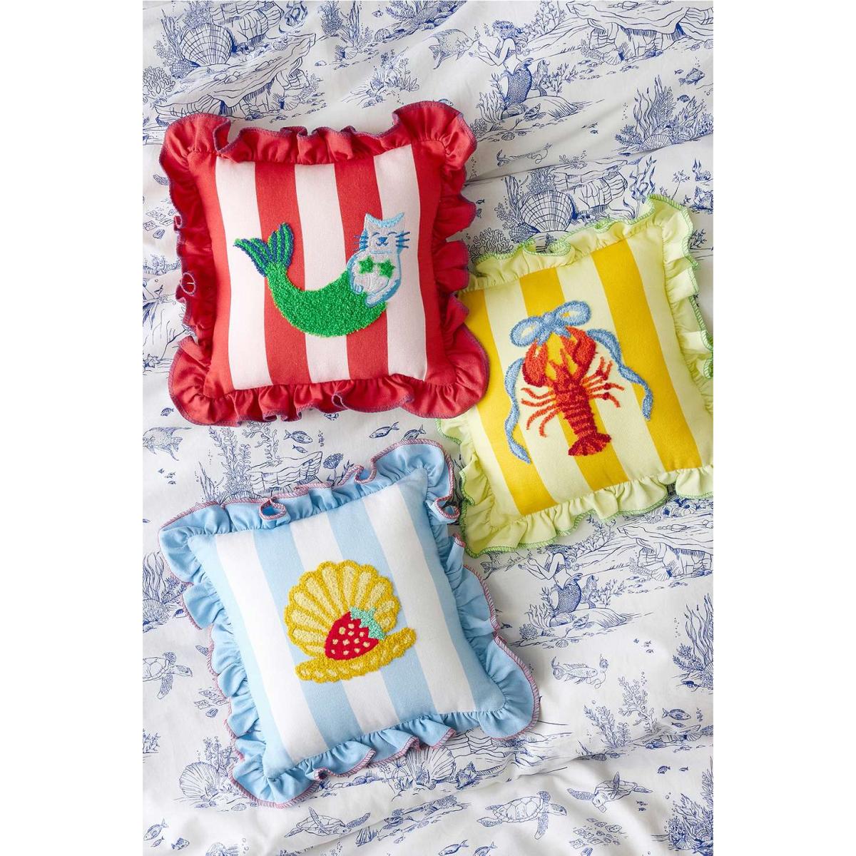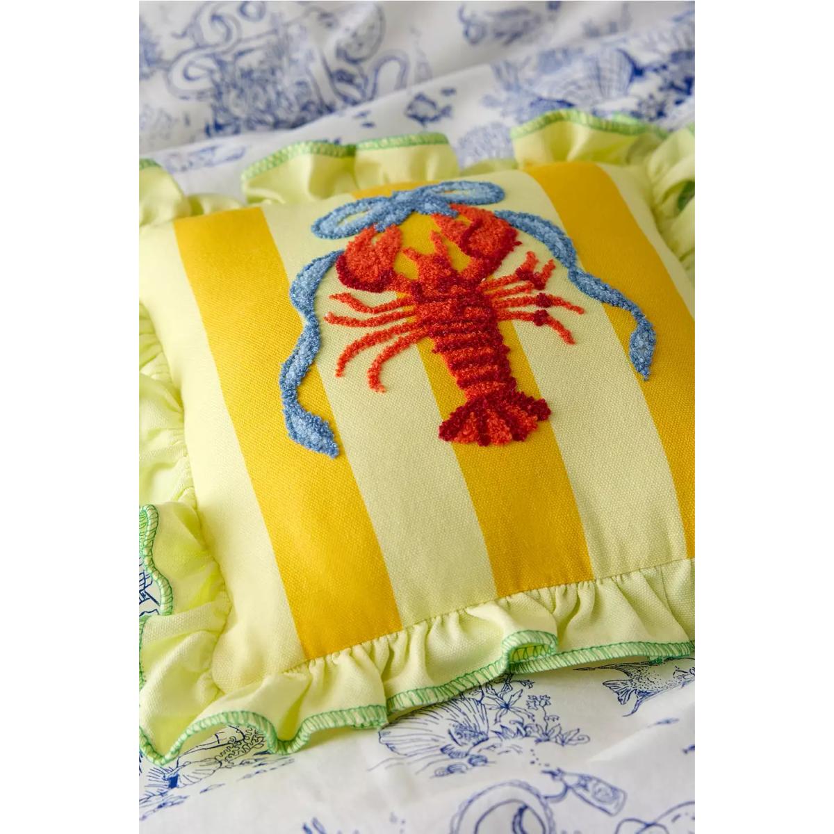 The cutest striped cushion topped with a textured lobster motif. Square shape complete with a soft filling and pretty ruffled edges. **Content + Care** \- Outer: 100% Cotton \- Filling: 100% Polyester \- Spot clean