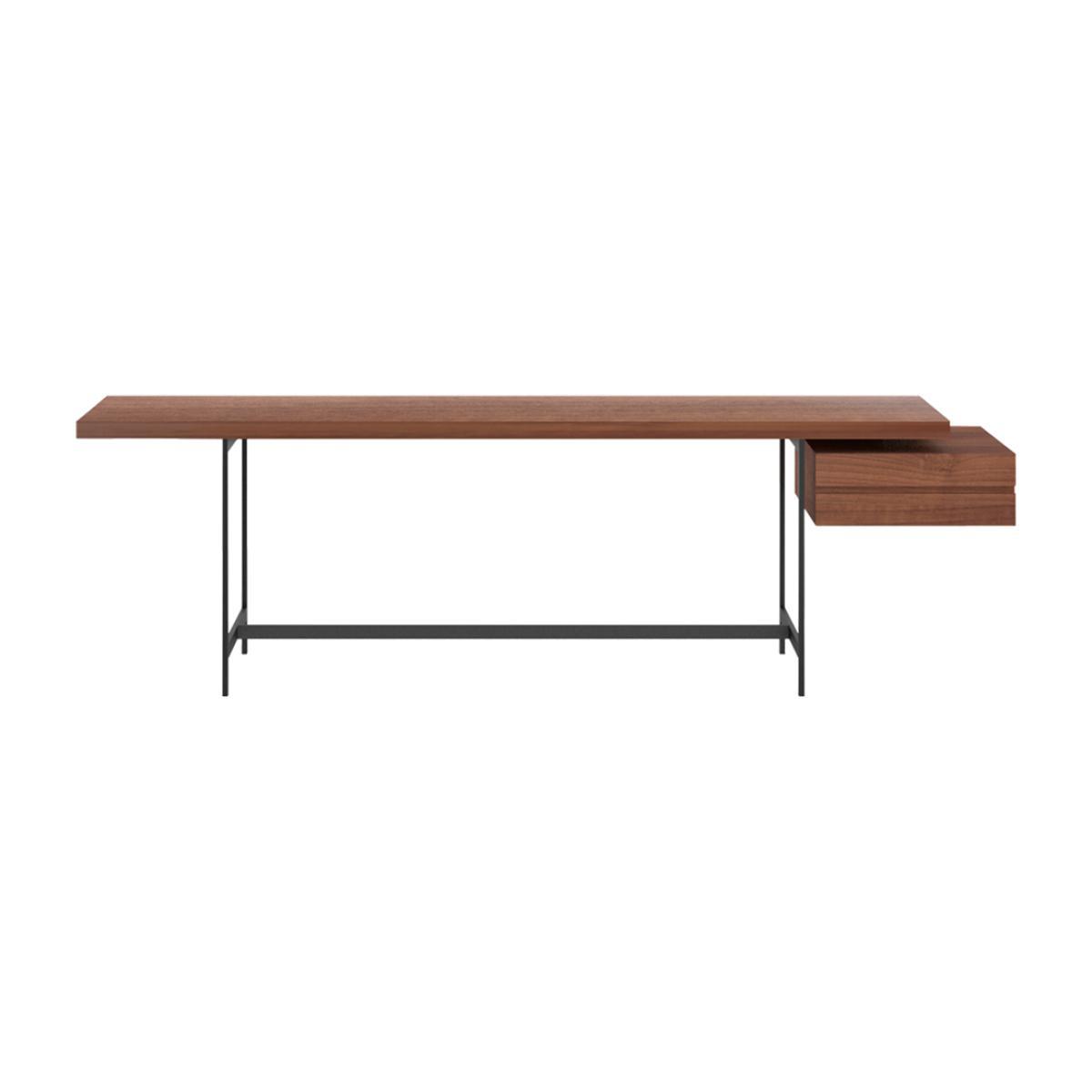 Created by iconic Italian designer Piero Lissoni, the Lochness Desk is a timeless piece with integrity and style. With a simple metal frame and generously sized worktop, the elegant finish of the natural Santos wood awards this desk an opulent feel. The adjoining drawers are ergonomically suspended from the side of the desk and serve as both a practical addition for storage, while lending the desk a modular, modern feel. The rich natural hue of the wood, alongside the streamlined design of the Lochness Desk, would make it a perfect match for a variety of interior styles.