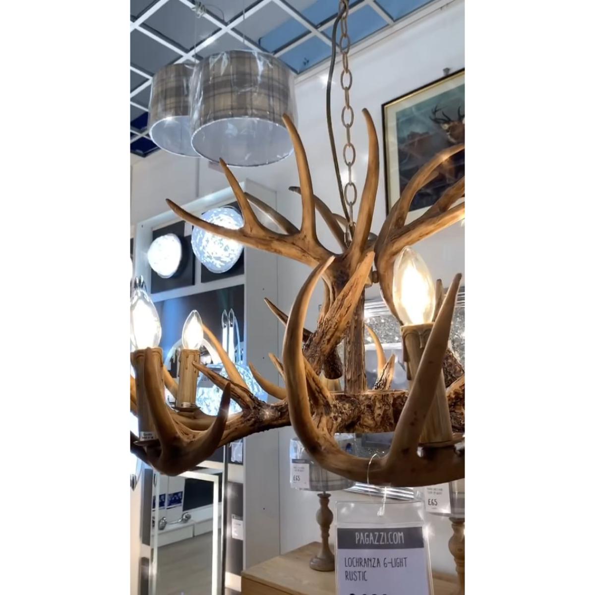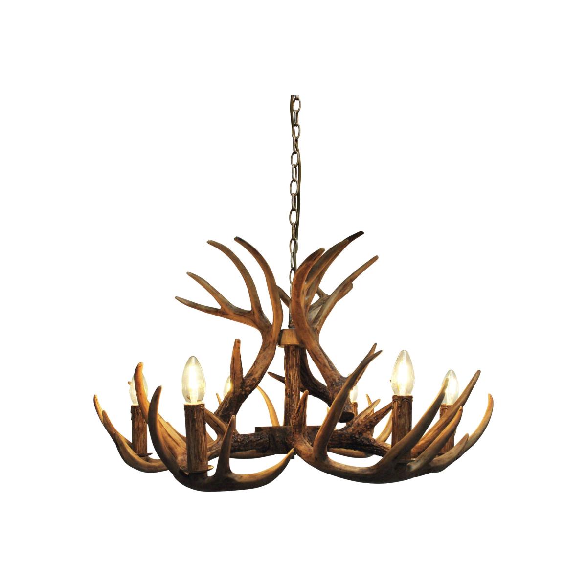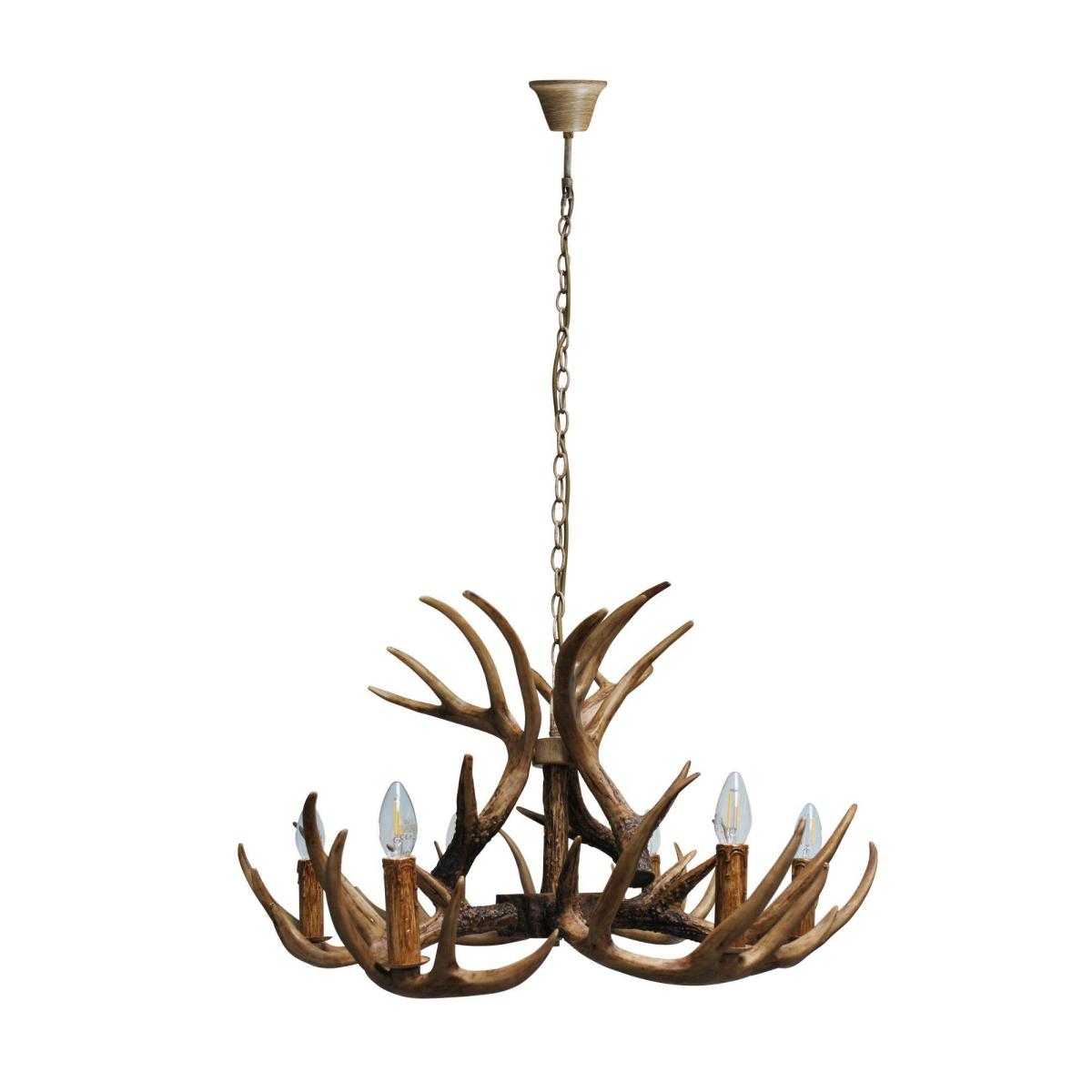 Magnificent 6 Light Antler Chandelier in a stylish a traditional wooden painted finish.. Bring the county lodge look into your home with this charming antler chandelier. Boasting 5 antler arms, this statement piece will sit beautifully in any hallway or living room. Style with antique bulbs for a traditional look, or pair with candle shades for a modern twist.. This product is a 3 day delivery and will be delivered on a pallet due to size. Saturday delivery is not available on this product...