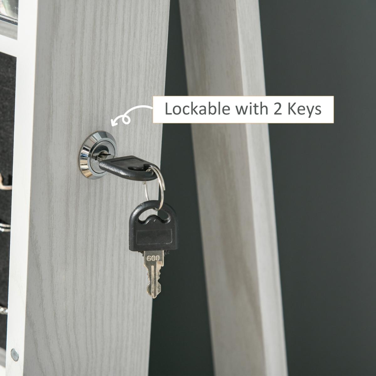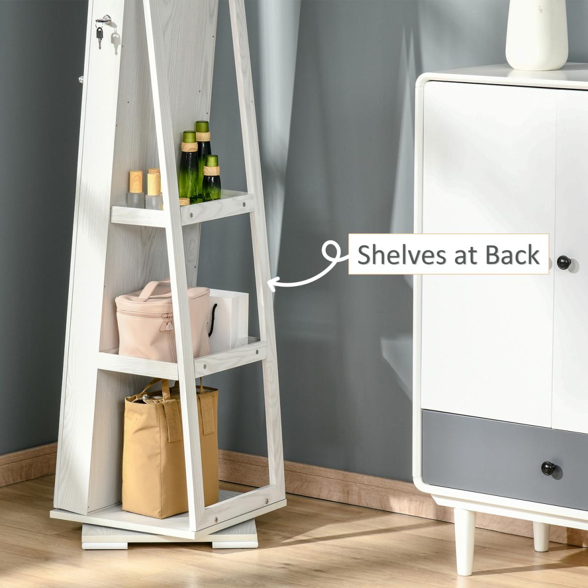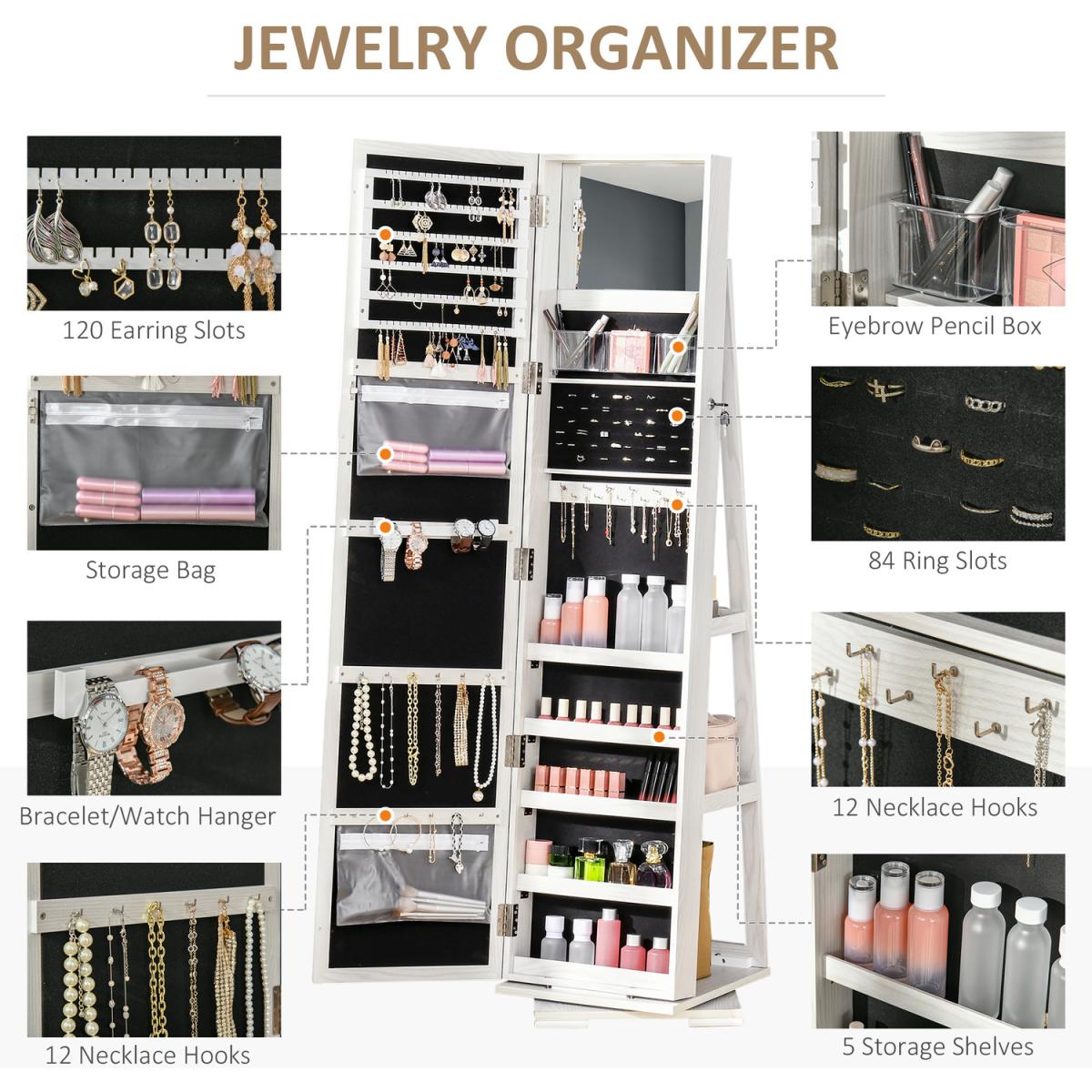 This is a must for the make-up and jewellery fanatics - a place to get ready and keep everything securely stored. The HOMCOM jewellery armoire is formed of a large mirror, inner storage and back storage. Inside the compartment for earrings, bracelets, necklaces, etc with a small inner mirror so you don't have to take everything out once when getting ready. It moves from side to side in a full 360-degree motion so you can see it from any angle. Finished with three shelves on the back for extra storage.
