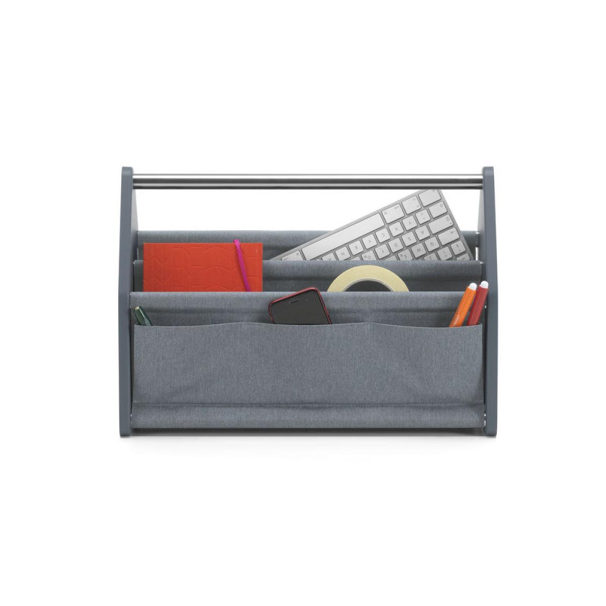 Locker Box by Konstantin Grcic is a large storage box with compartments and a handle that can be easily moved like a basket. It lets you transport all your work utensils from home to the office, and store them easily at the end of the day. Thanks to its various compartments of different sizes, it can contain everything you need for professional tasks: laptop, keyboard, papers, pens, cables, hard drives, headphones, etc. Locker Box is a tool intended to meet the new needs associated with the flexible working methods which have been transforming our offices for several years now. Work is no longer limited to a specific office, but can be carried out in various locations - depending on whether the task requires productive interaction with colleagues or an atmosphere of concentration. So it’s convenient for employees to always have their personal items with them. Locker Box is characterised by its simple, robust construction. Two recycled plastic side panels are assembled using aluminium tubes. The top tube serves as a handle. Fabric panels form compartments. Lightweight and robust, Locker Box can be quickly disassembled when needed. You can use it more traditionally as a desk organiser, magazine rack.