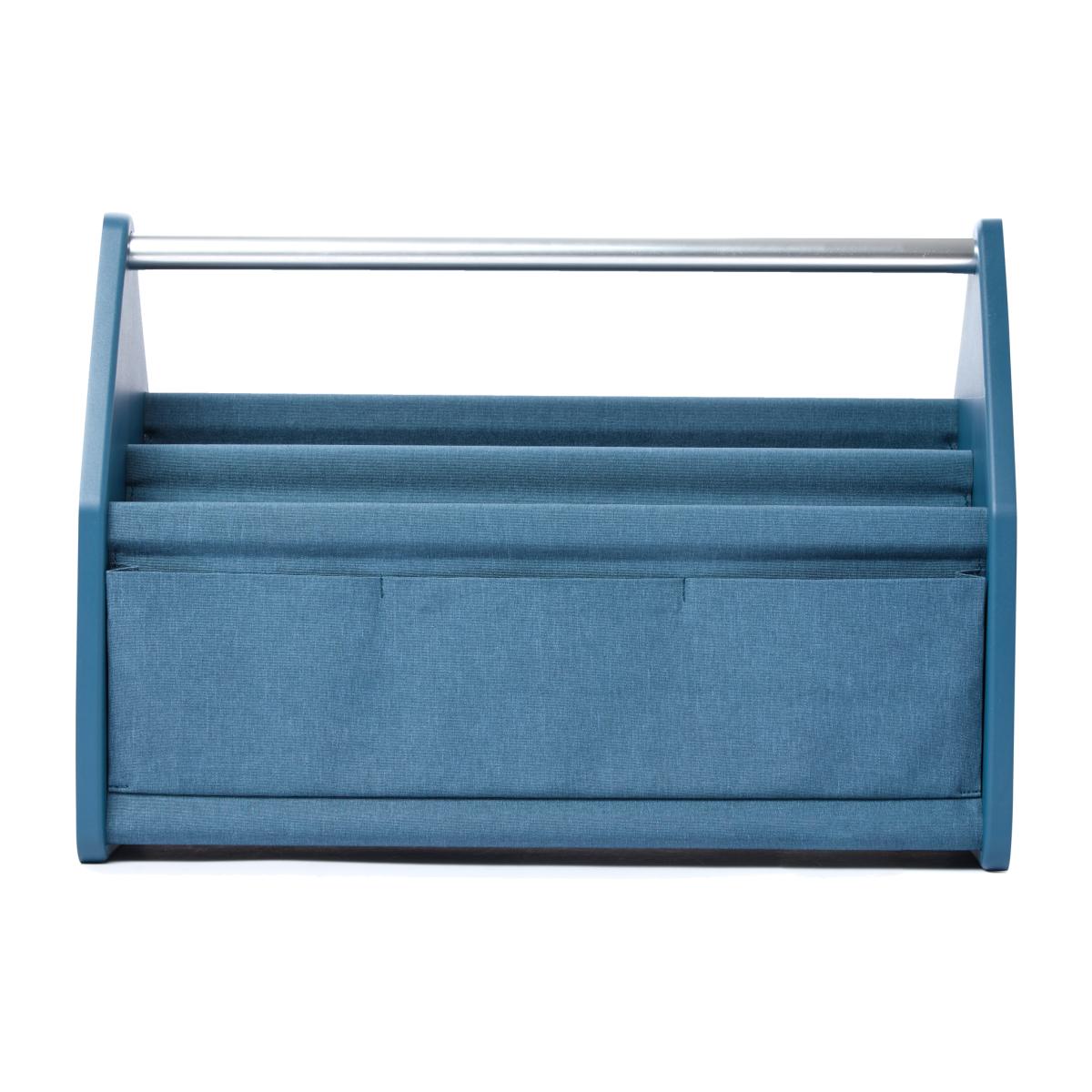 Organise your workspace with flair with the ergonomic sea-blue Locker Box, designed by Konstantin Grcic for Vitra. A modern reinterpretation of a locker storage box, this grab-and-go storage caddy is the perfect organisation system for a multi-purpose or shared office desk. The box is crafted from two panels of recycled plastic with aluminium tubes, with a structure of textile panels making up its many compartments. Light and easy to handle, the Locker Box provides the perfect solution to agile work routines, ensuring that you remain at optimum productivity and tidiness.