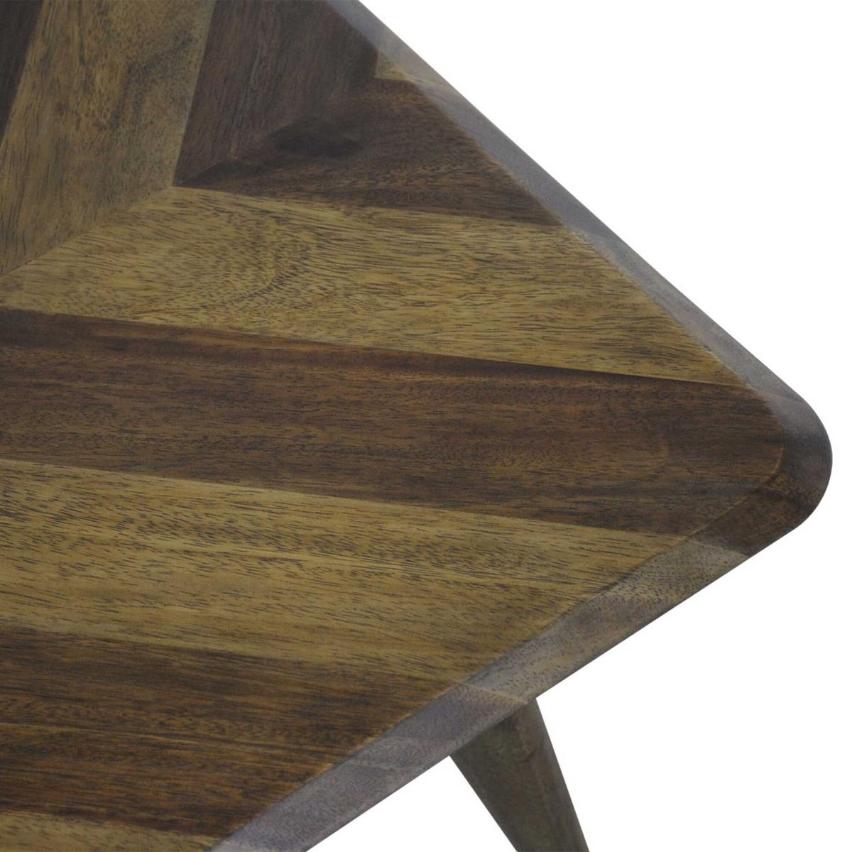 The Lockley Chevron Brown Wood Rectangular Coffee Table is a striking addition to any living room, blending style and practicality. Expertly crafted from durable saman wood and finished in a rich cognac mellow tone, it showcases a captivating chevron pattern that adds visual interest. The rectangular shape offers ample surface space, making it perfect for entertaining or displaying decor, while ensuring lasting quality and sophistication.