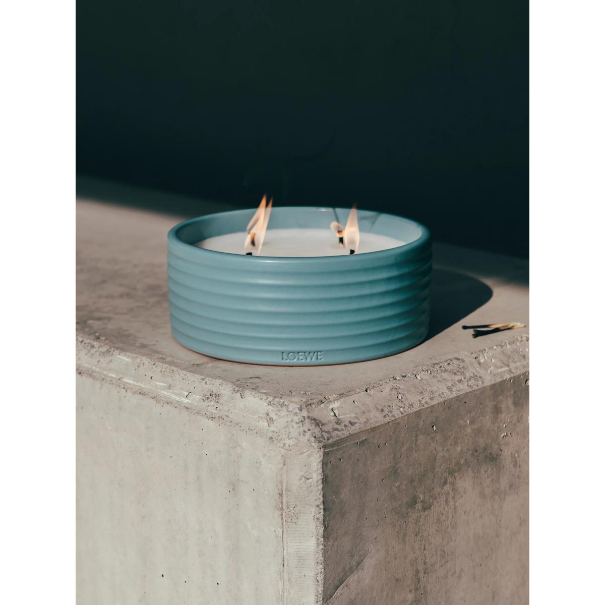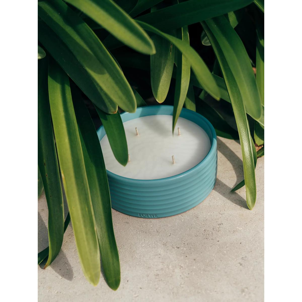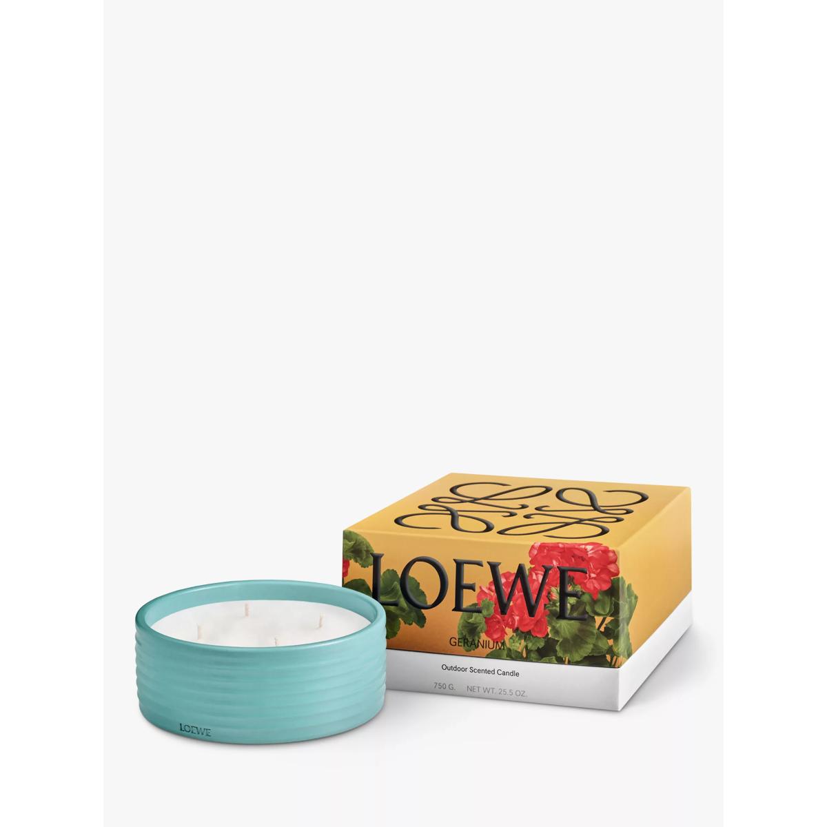 Scented candle with geranium essence, specially designed for outdoor use. Featuring a large surface area, the Outdoor Candle is designed to create an effective diffusion of scent in the open air. The Geranium Outdoor Candle has a high-intensity fragrance with a floral scent that evokes the fresh aroma of the vibrantly coloured, flowering plant, known for its mosquito-repelling properties. It reveals rose notes once lit. The outdoor candle features four cotton wicks and is presented in an artisanal, glazed, terracotta vessel with a stamped base. Made in Spain.