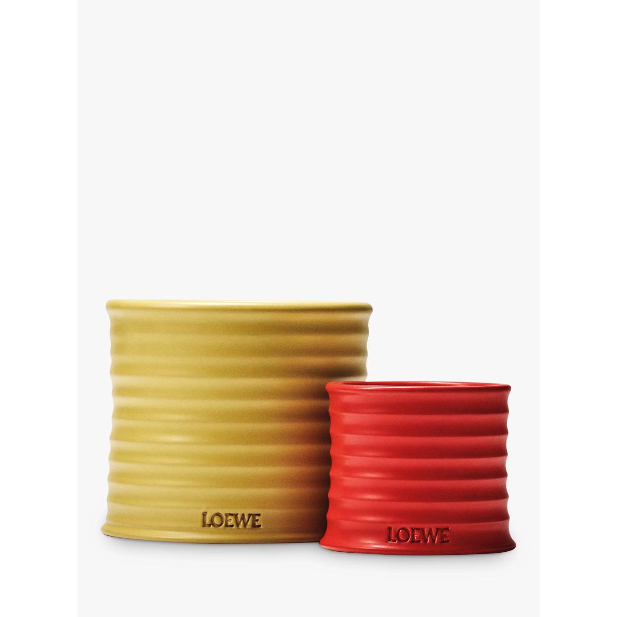 Scented candle with honeysuckle essence. The Honeysuckle candle has a low-intensity fragrance with a floral scent that evokes the sweet aroma of this flowering vine. It reveals delicate, honeyed notes once lit. Crafted in natural wax with one cotton wick, the candle is presented in a glazed terracotta vessel with a stamped base. All LOEWE Home Scents items are olfactory creations that highlight nature’s most natural and pure scents. Made in Spain. Due to their handcrafted nature, no two Home Scents Scented Candles are exactly the same.