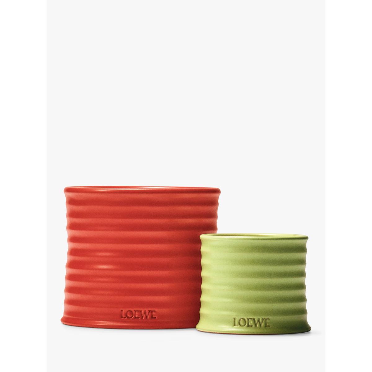 Scented candle with tomato leaves essence. The Tomato Leaves candle has a high-intensity fragrance with a green scent that evokes the fresh, verdant aroma of the vines just before they burst into fruit. It reveals delicate notes of cassis berries once lit. Crafted in natural wax with one cotton wick, the candle is presented in a glazed terracotta vessel with a stamped base. All LOEWE Home Scents items are olfactory creations that highlight nature’s most natural and pure scents. Made in Spain. Due to their handcrafted nature, no two Home Scents Scented Candles are exactly the same.