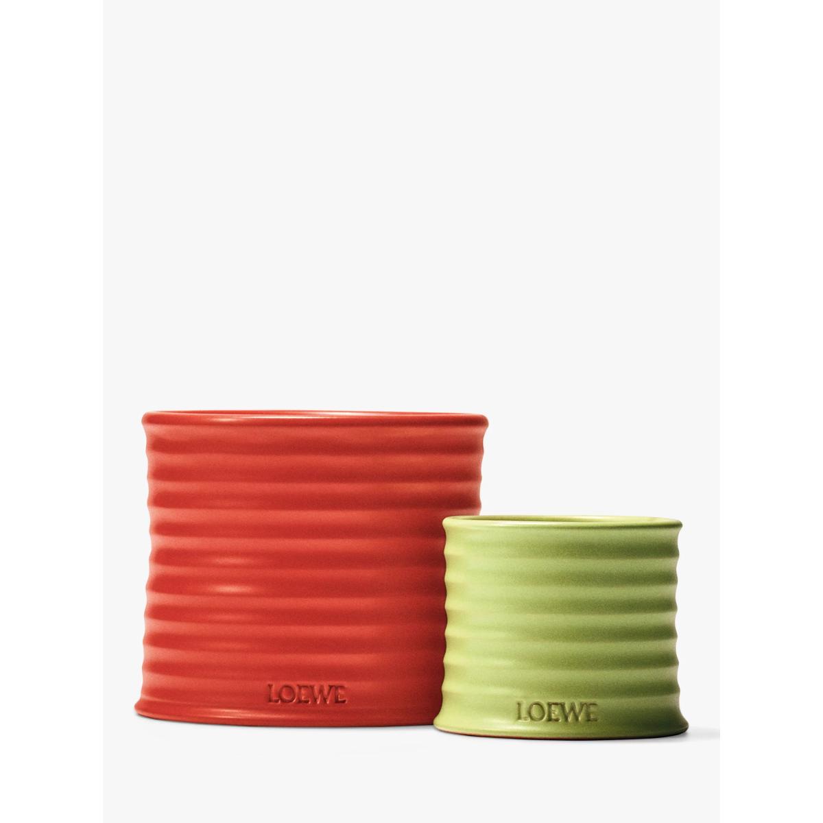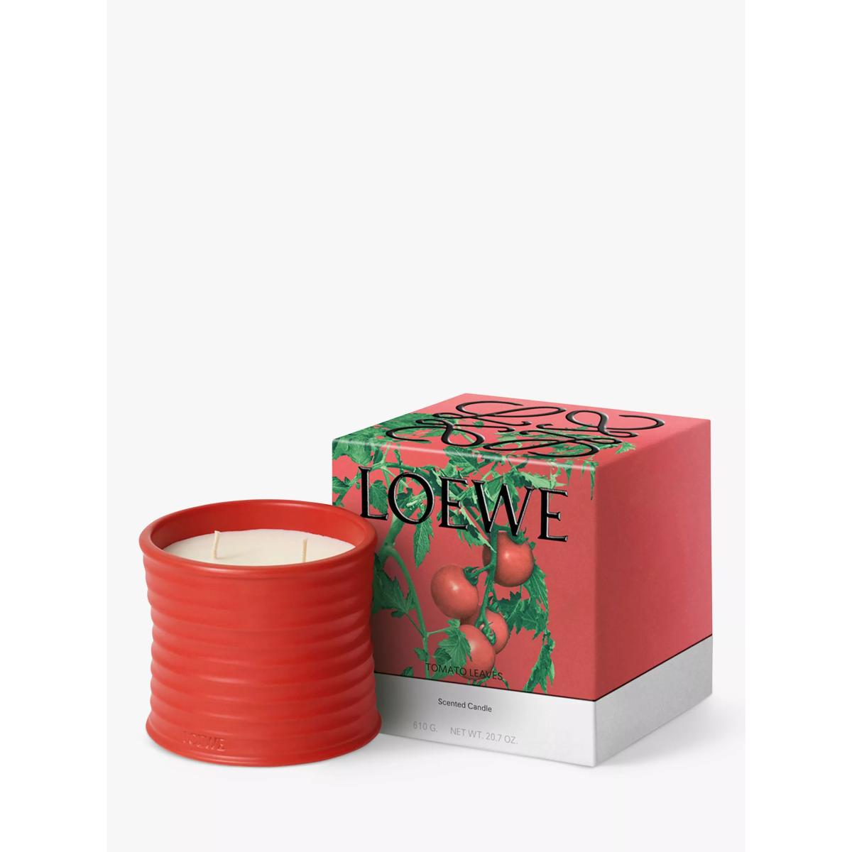 Scented candle with tomato leaves essence. The Tomato Leaves candle has a high-intensity fragrance with a green scent that evokes the fresh, verdant aroma of the vines just before they burst into fruit. It reveals delicate notes of cassis berries once lit. Crafted in natural wax with one cotton wick, the candle is presented in a glazed terracotta vessel with a stamped base. All LOEWE Home Scents items are olfactory creations that highlight nature’s most natural and pure scents. Made in Spain. Due to their handcrafted nature, no two Home Scents Scented Candles are exactly the same.