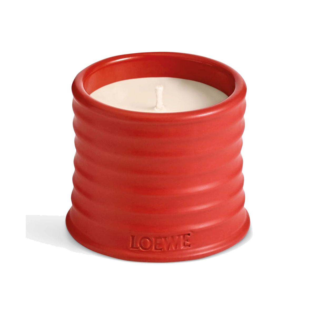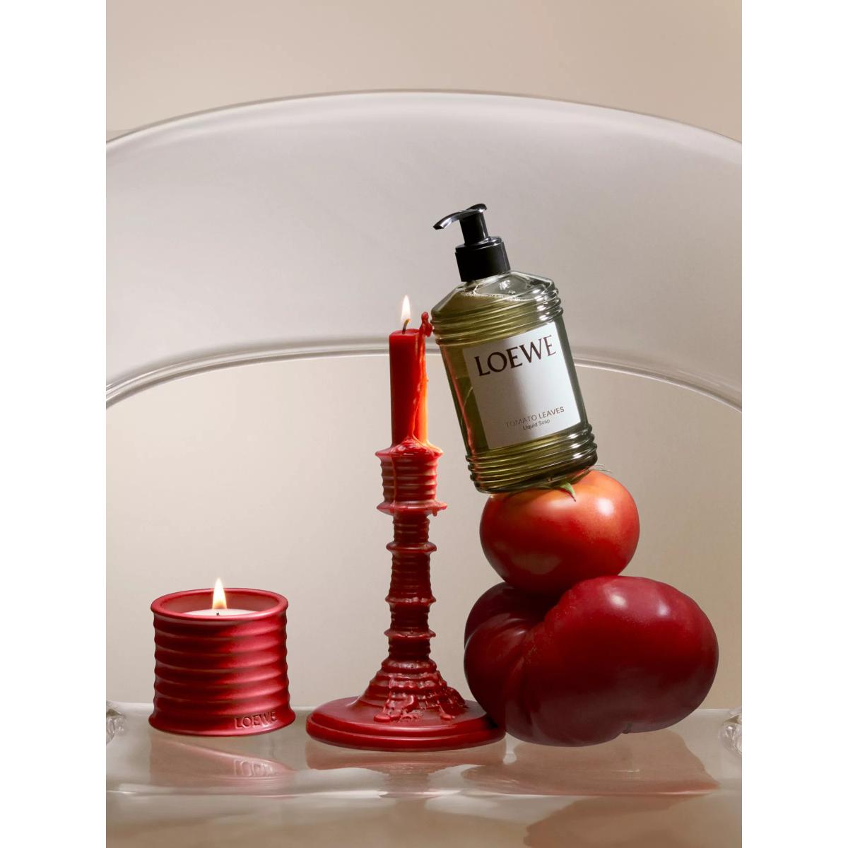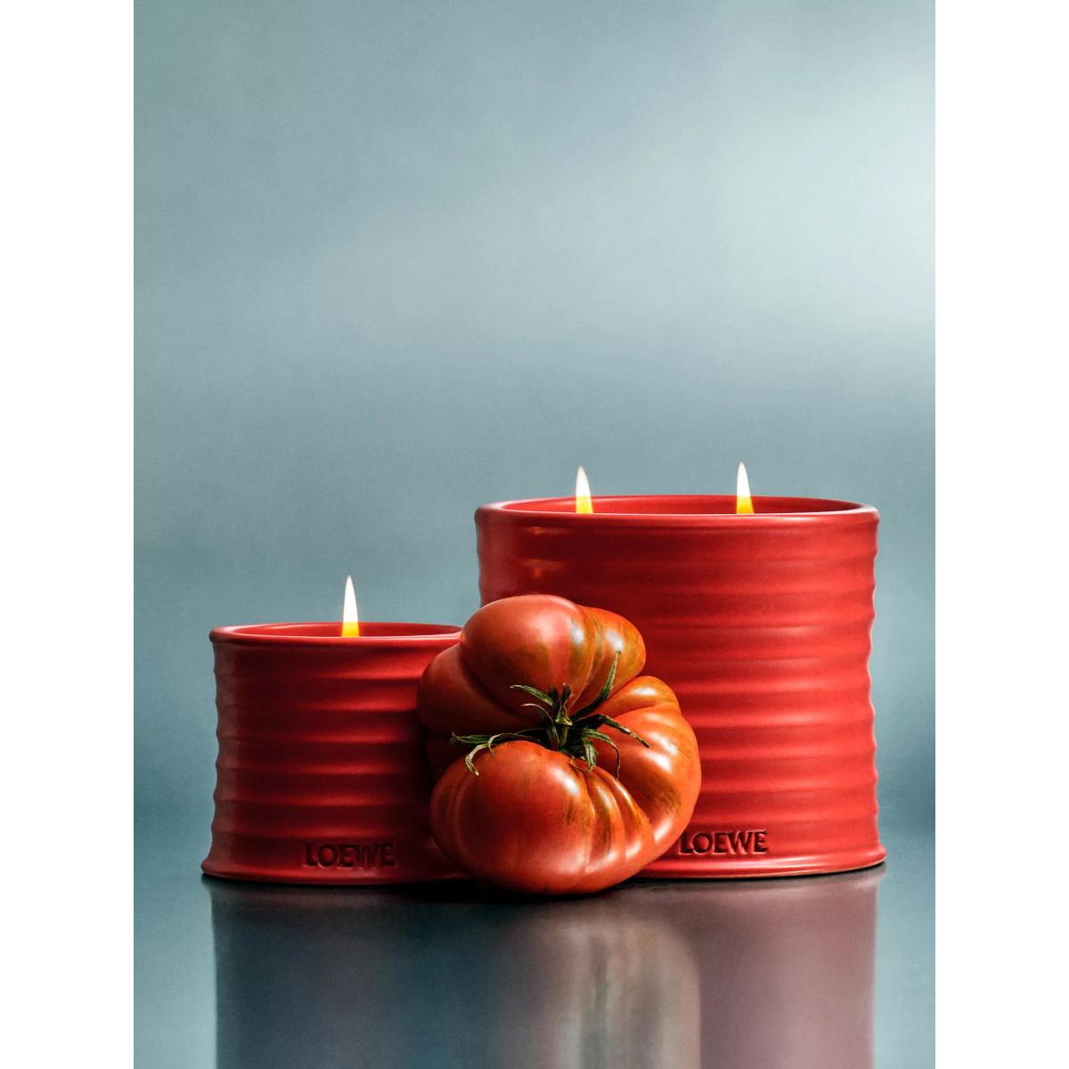 Scented candle with tomato leaves essence. The Tomato Leaves candle has a high-intensity fragrance with a green scent that evokes the fresh, verdant aroma of the vines just before they burst into fruit. It reveals delicate notes of cassis berries once lit. Crafted in natural wax with one cotton wick, the candle is presented in a glazed terracotta vessel with a stamped base. All LOEWE Home Scents items are olfactory creations that highlight nature’s most natural and pure scents. Made in Spain. Due to their handcrafted nature, no two Home Scents Scented Candles are exactly the same.