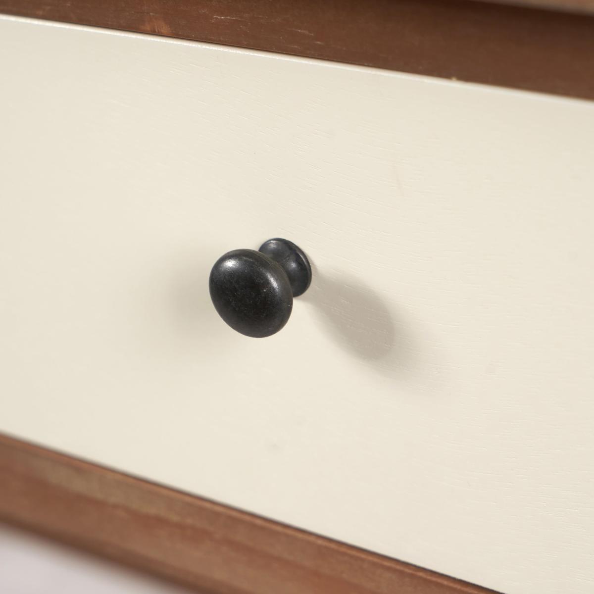 I’m a fan of this desk for its clean, mid-century lines and fun mix of drawer colours - the muted sage, navy and pine tones give a subtle lift without clashing. Its slim profile makes it ideal for smaller home-offices, living rooms or even a hallway writing nook. To style it, keep the desktop uncluttered: a slim metal-framed lamp and a low potted plant work well. Use decorative boxes or trays inside the drawers to sort stationery and paperwork. Pair with a simple wooden or metal chair and a textured rug underneath to ground the space.