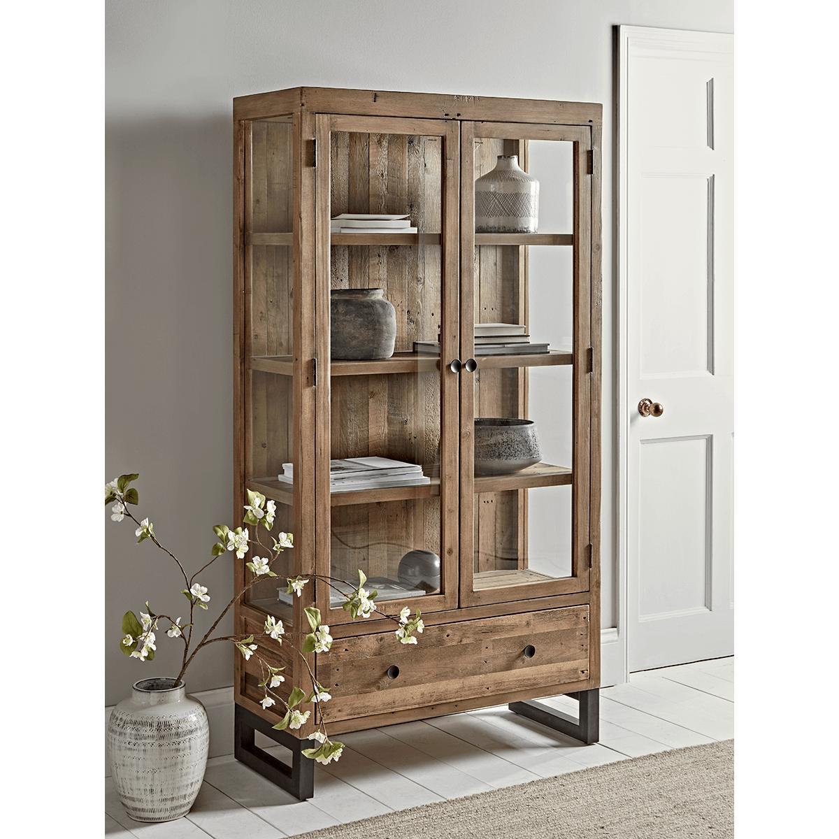 I’m a fan of this loft cabinet for its clean lines and warm reclaimed-wood finish, which makes it versatile in both industrial and modern-farmhouse schemes. It’s ideal in a living room or dining area, where the glass doors let you show off ceramics, books and heirloom pieces without them feeling cluttered. For styling, mix in objects of varying heights and textures - think a couple of low coffee-table books topped with a small plant, a mid-height vase and a taller sculptural piece. Keep odd numbers in each shelf group and leave a little breathing space around items to let the wood’s grain and the cabinet’s structure stand out. Use the lower drawers to stow away less attractive bits and bobs, so the display always looks fresh.