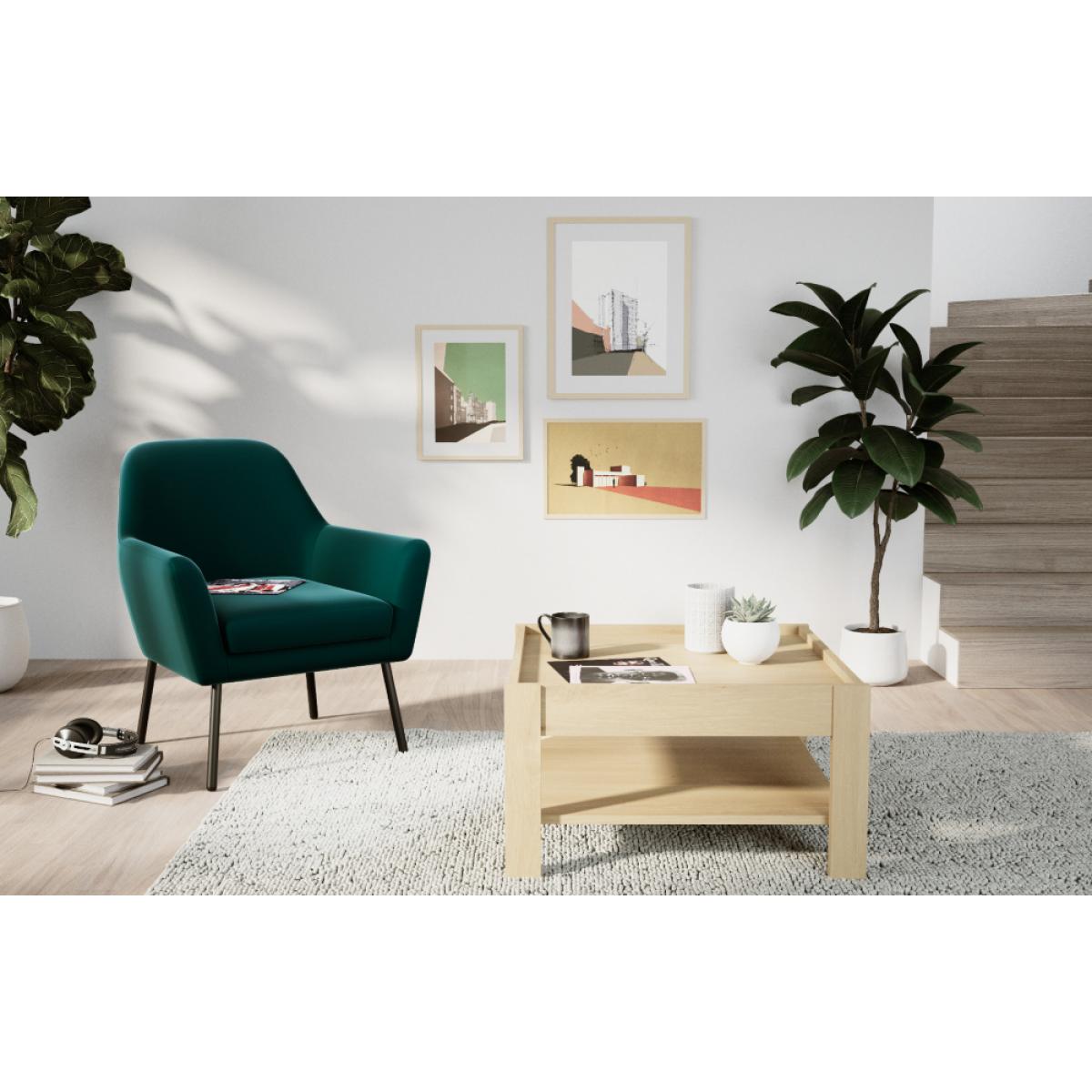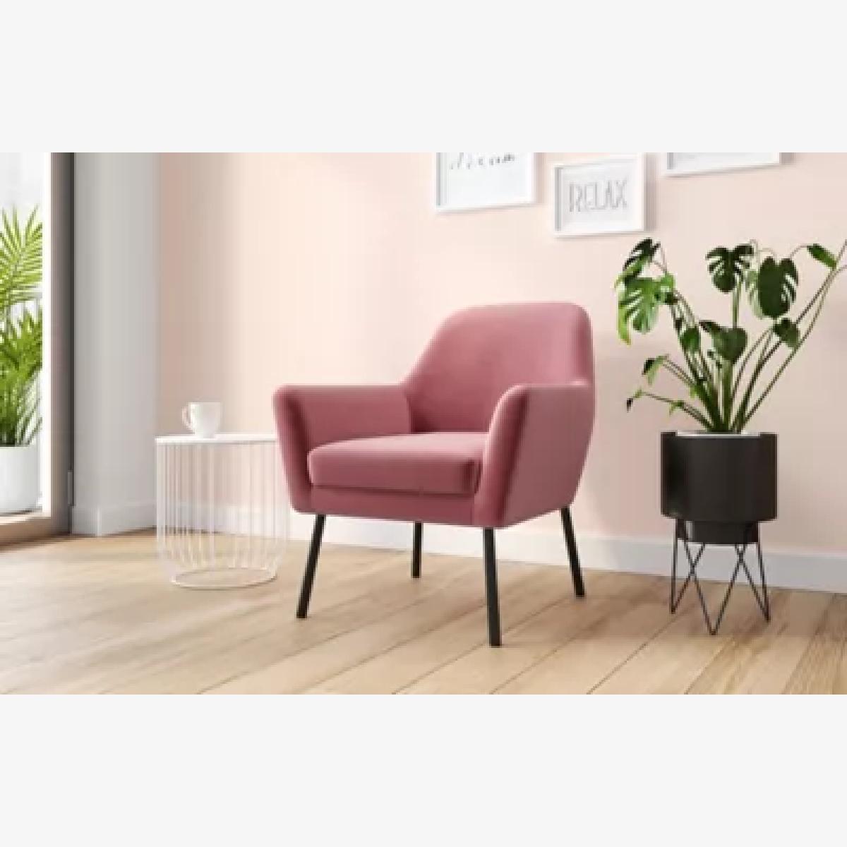 This armchair feels as good as it looks. A solid pine and plywood structure provide durability, while slim metal legs add a Scandinavian-inspired finish to this delicately crafted piece. Supportive cushioning and curved arms make this modern seat ready to sink and relax into after a long day. Delivered to your door Partial assembly required Contemporary chair desigh with slim metal legs, comfy size with nice fitted back pitch Fabric, Pine & Plywood with Metal Feet