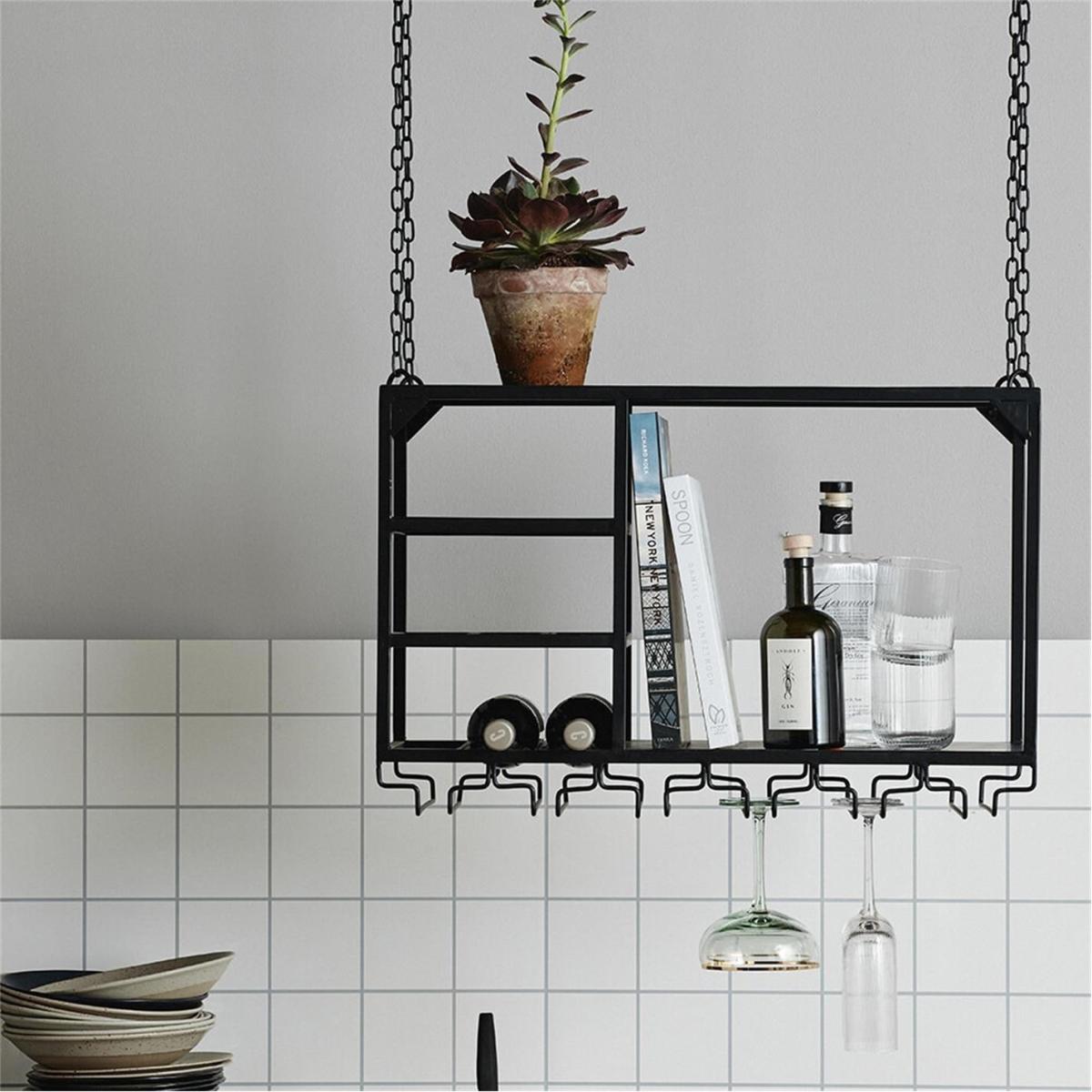 I love this black hanging shelf for its modern, minimalist appeal and functional design. It works particularly well in contemporary or industrial interiors, adding a stylish storage solution without taking up floor space. Practical styling tips include using it to display a mix of decorative objects, potted plants, or books to create visual interest. Layer smaller items on the built-in shelves and hang a few lightweight accessories from the hooks underneath for added organisation. Its sleek, understated look makes it versatile enough to suit kitchens, living rooms, or even a sleek office setting. Overall, it’s a smart piece that combines form and function effortlessly.