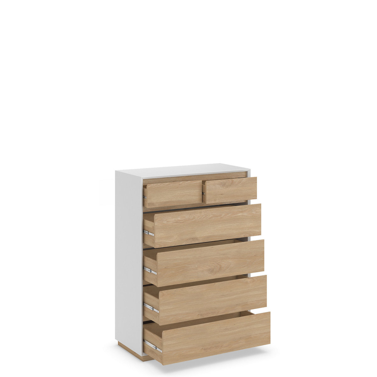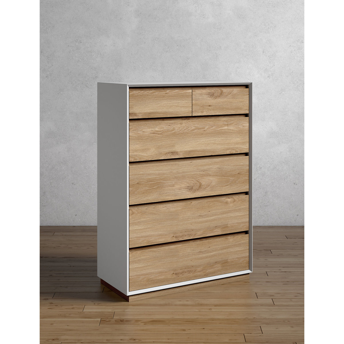 Add some essential storage space to any room with this practical set of drawers, crafted with full-extension drawer runners to provide plenty of room for you to stow away any household items or clothing. This chest has been made with a natural oak-effect front and painted frame for a clean and contemporary style that's easy to match with a wide array of interior decors. Built for durability, this chest is designed to resist cracks, fading and warping. We're so confident our furniture is built to last, our industry-leading guarantee covers any manufacturing failure on all furniture. That's our promise, and why our furniture comes with a 10-year guarantee that you can trust. Excludes: outdoor furniture and any issues that are a result of normal wear and tear, improper care or accidental damage.