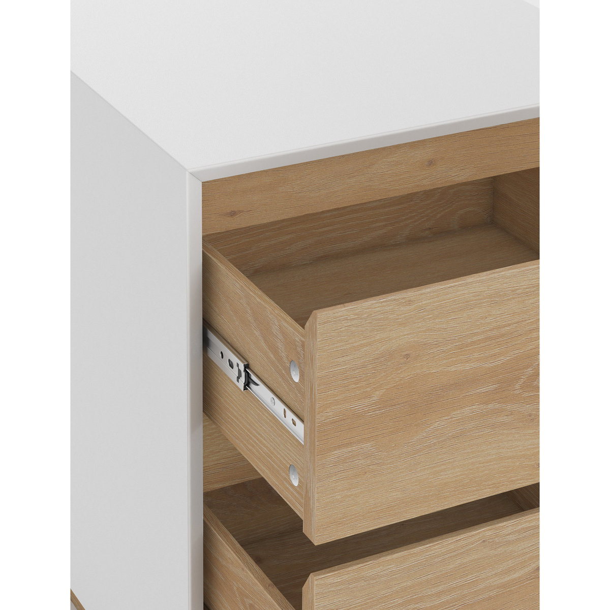 Add some effective storage and surface space to your bedroom with this timeless Jones bedside table, fitted with two drawers to keep any bits and pieces organised. This table has been designed with a durable finish to resist cracks and warps, while a natural oak-effect front will add a traditional charm to your bedroom. We love this bedside table with a lamp or small potted plant to create a tranquil atmosphere in any space. We're so confident our furniture is built to last, our industry-leading guarantee covers any manufacturing failure on all furniture. That's our promise, and why our furniture comes with a 10-year guarantee that you can trust. Excludes: outdoor furniture and any issues that are a result of normal wear and tear, improper care or accidental damage.