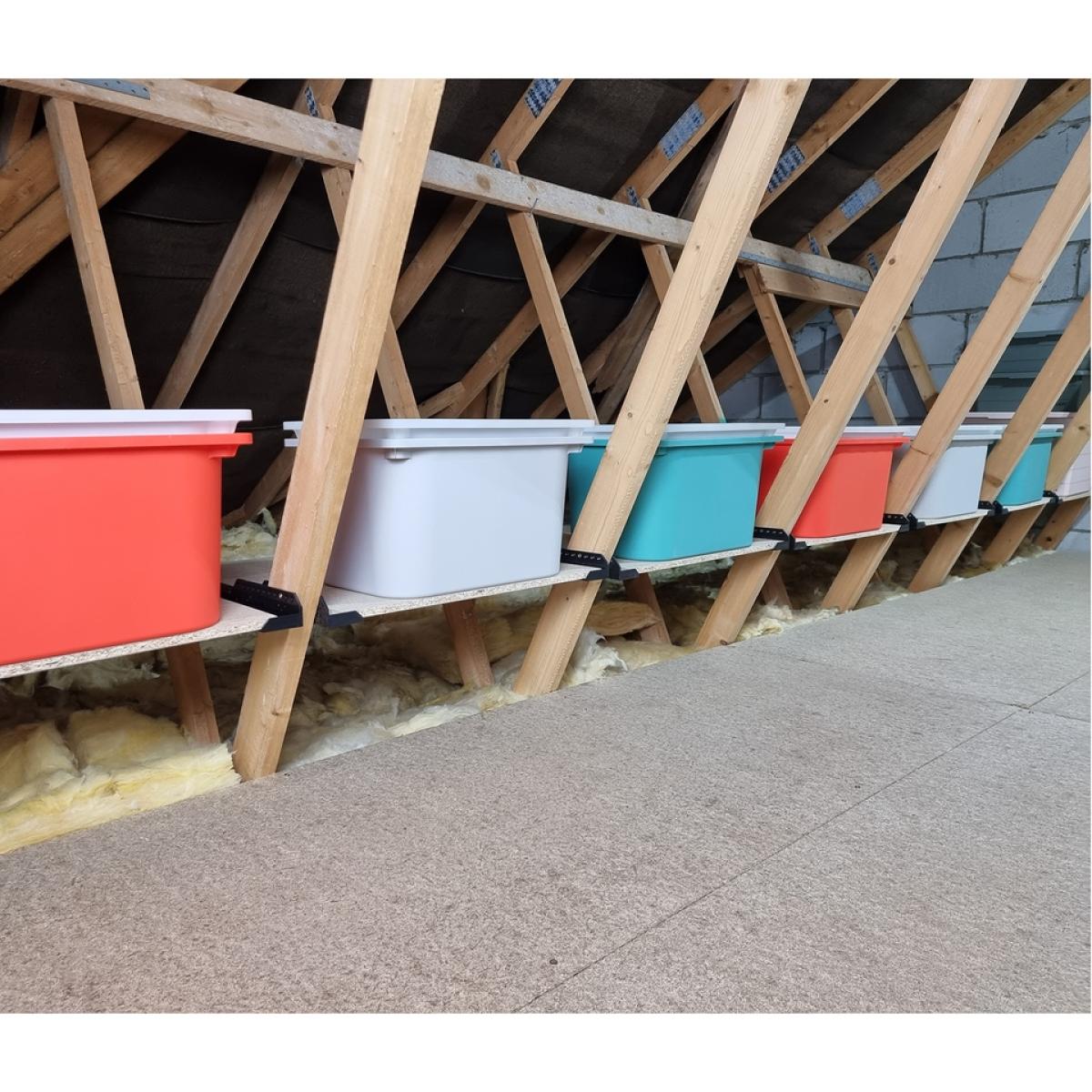The Loft Ledge is an easy and convenient solution that maximises the potential storage space in your trussed roof. The Loft Ledge creates a useful shelf in the normally unused space between trusses above the insulation. It is designed with enough in-built flexibility to fit all standard modern roof truss constructions.
