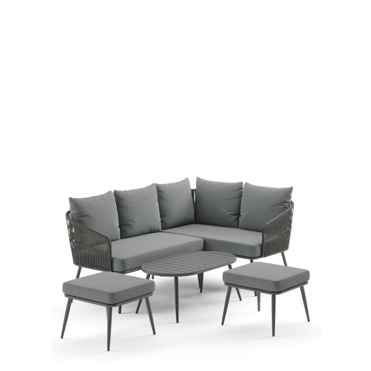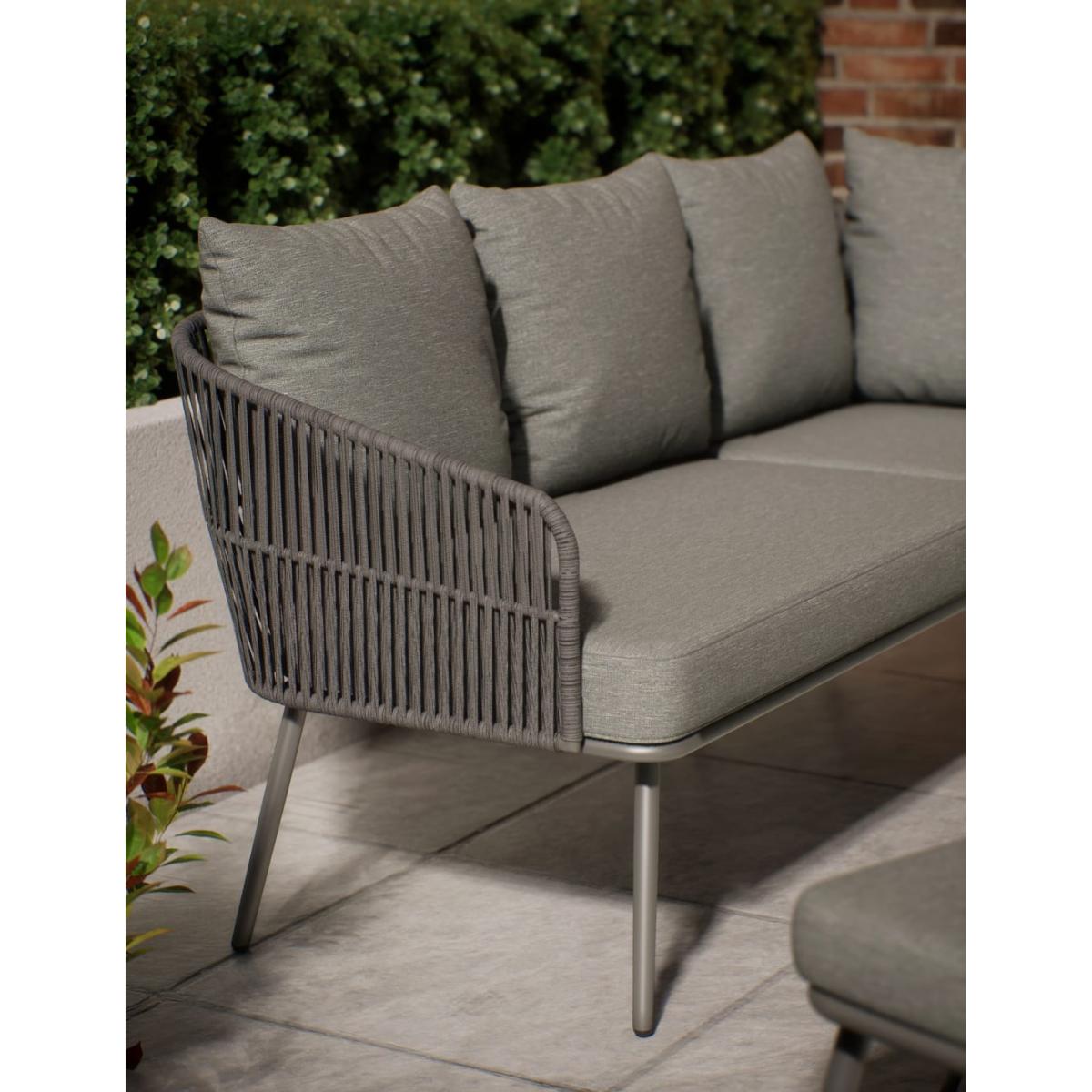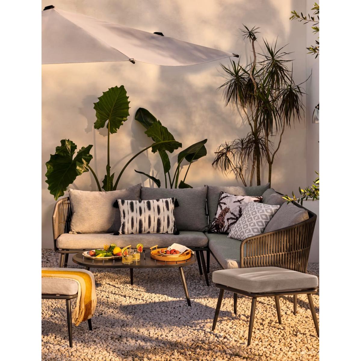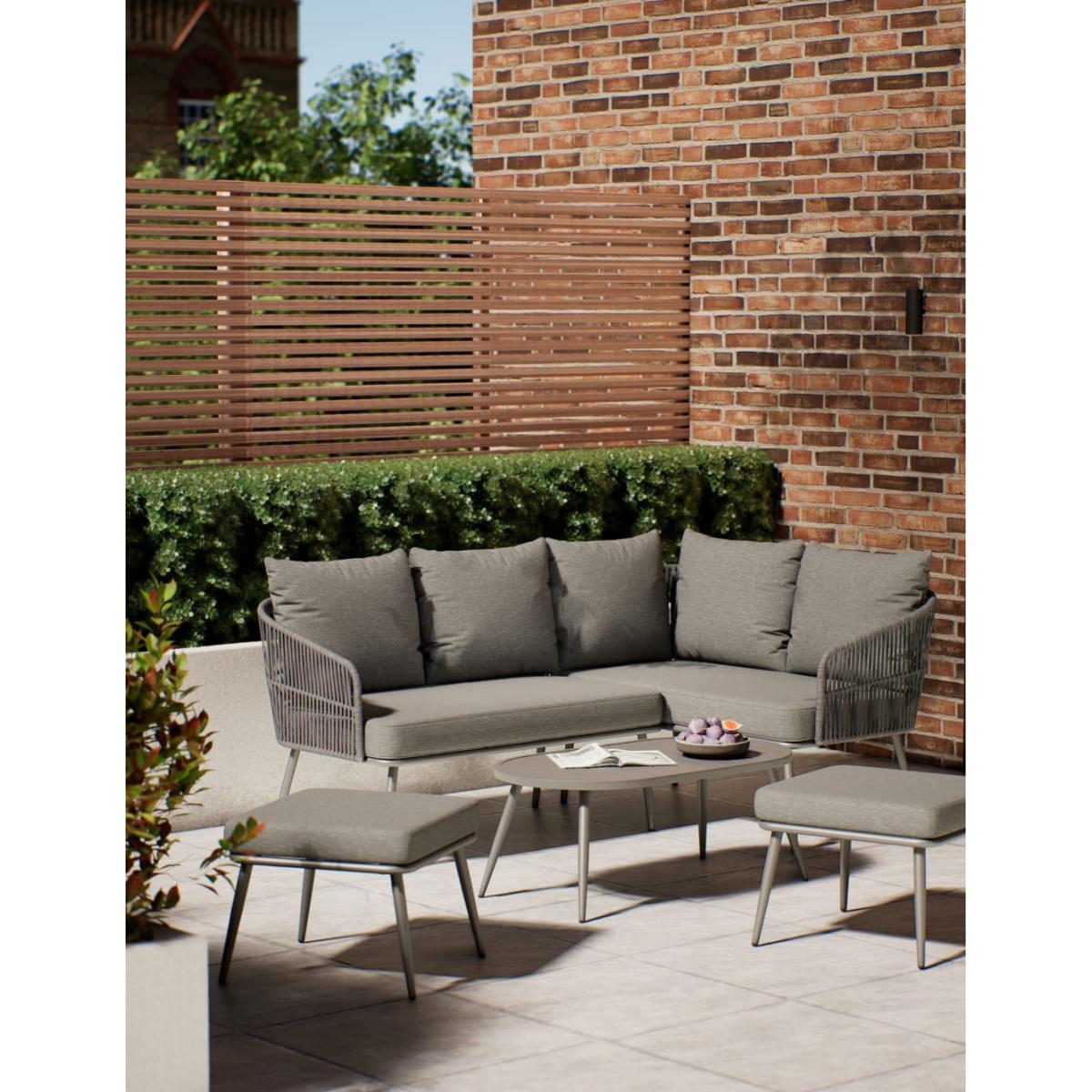 Make the most of your outside space with this stylish six-seater lounge set from the Melbourne range. It's made in a practical corner style, and includes a four-seater sofa, two stools and a table. The all-weather rope and painted metal construction ensure durability, and the cushions are removable. Matching items from the Melbourne collection are available.