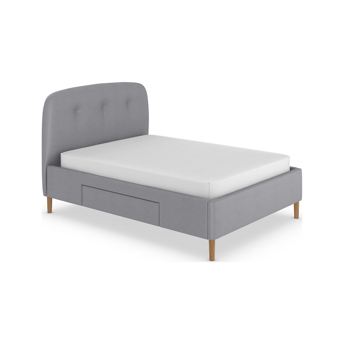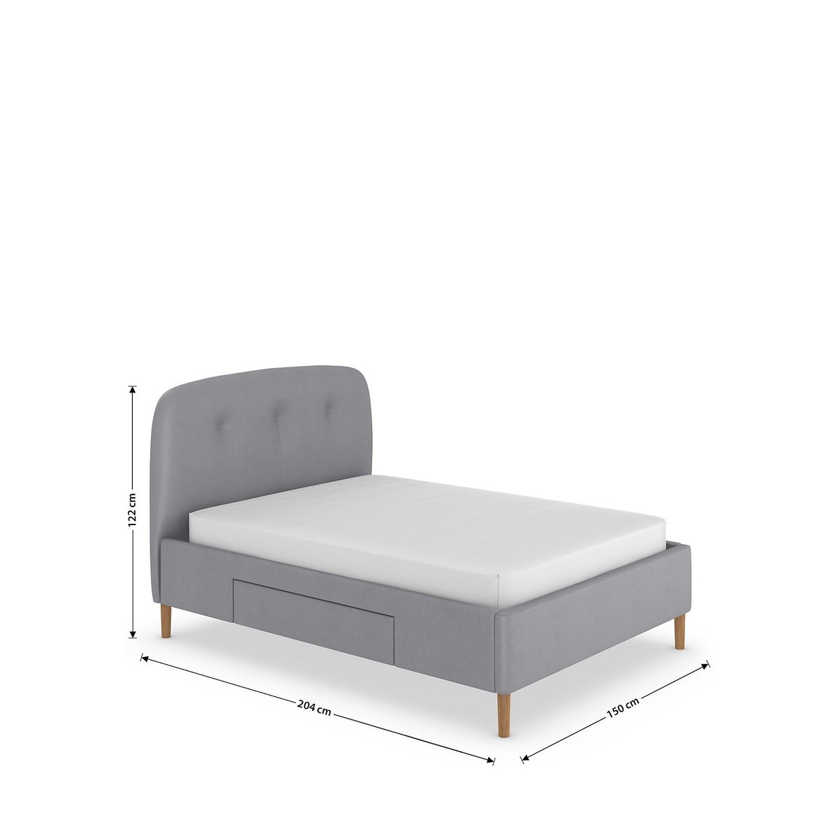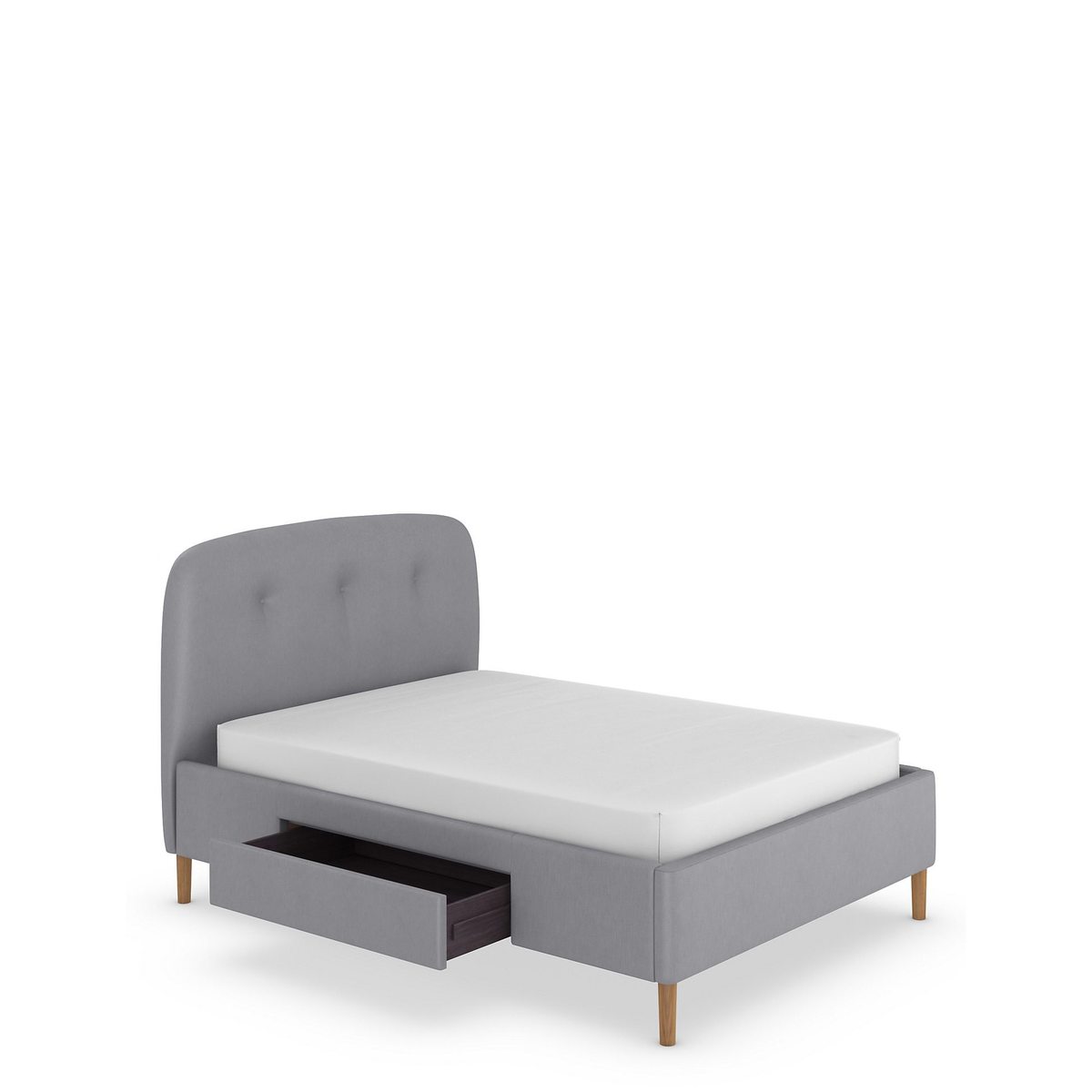Featuring a curved, three button headend this modest bedstead will add a touch of modern sophistication to your bedroom. The two drawers are an ideal solution for your storage needs. Round effect legs and sprung slats for additional mattress support.