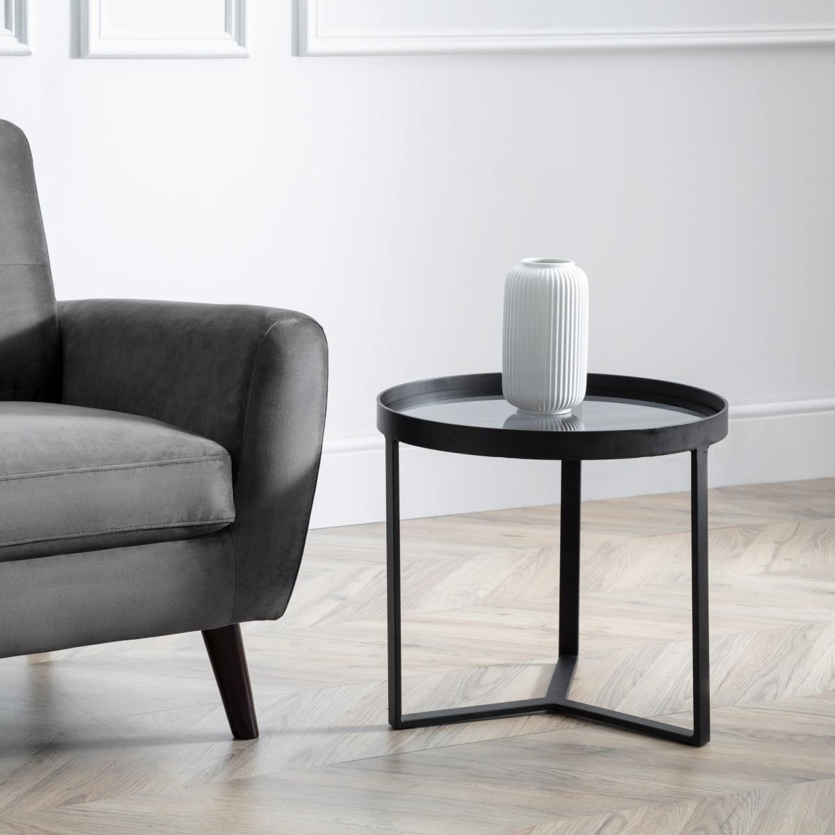 I’m a big fan of this smoked-glass lamp table because its slim black frame and tinted top add just the right amount of edge without overwhelming a space. It sits comfortably in contemporary, industrial or Scandi-inspired rooms, and even works as a sleek nightstand in a minimalist bedroom. For easy styling, top it with a sculptural lamp and a small stack of art books or a single bud vase in a contrasting colour. If you have the floor space, pair two at different heights for an effortless, layered look.