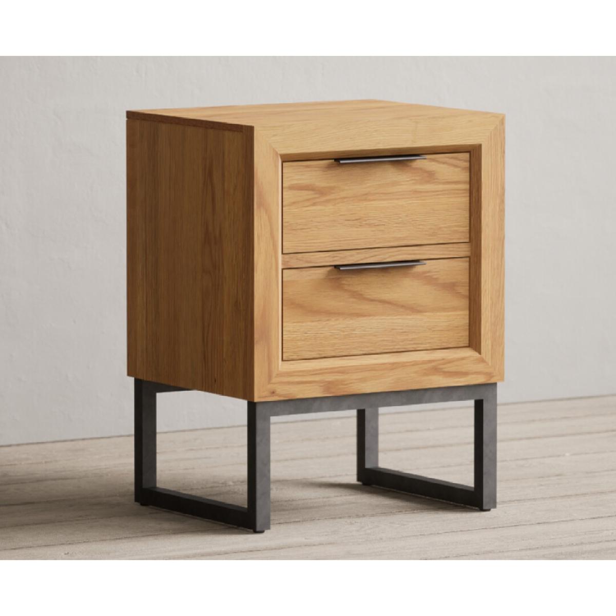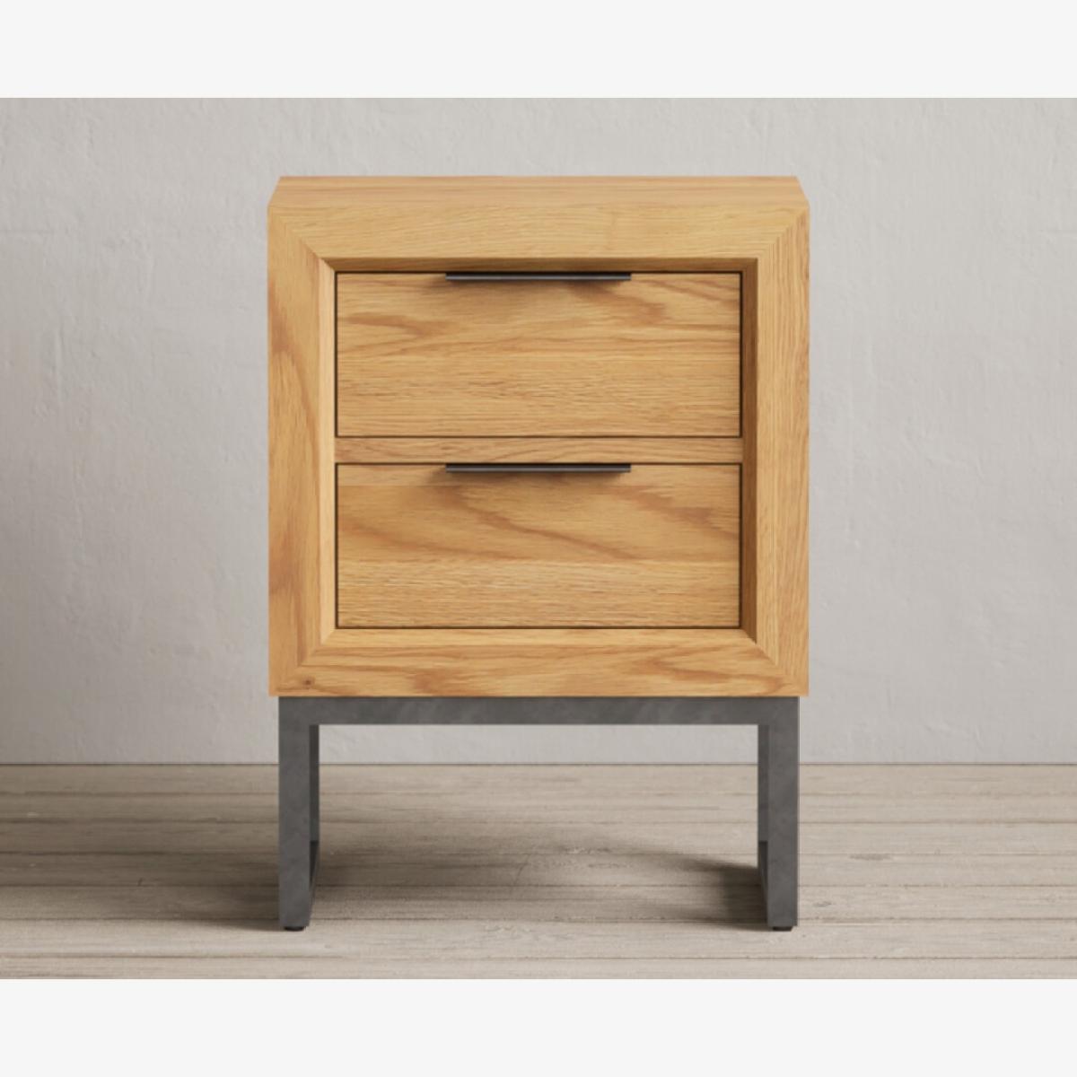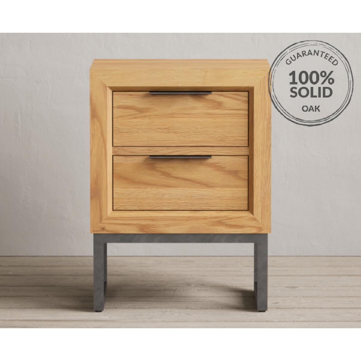 The Loft Solid Oak 2 Drawer Bedside Table has been crafted using 100% solid oak with a natural finish, complete with metal legs and two dovetail drawers.