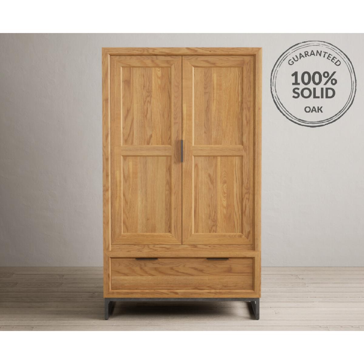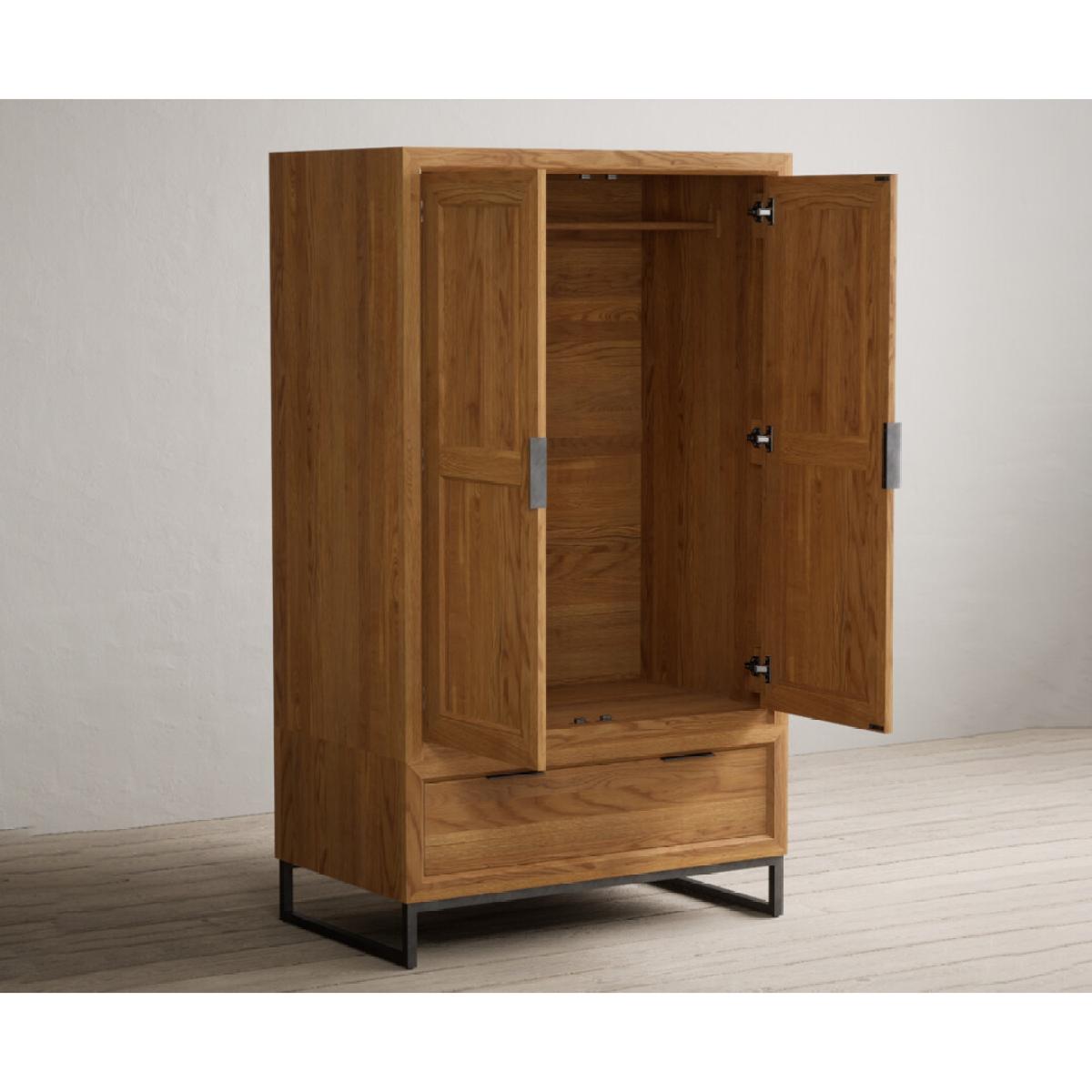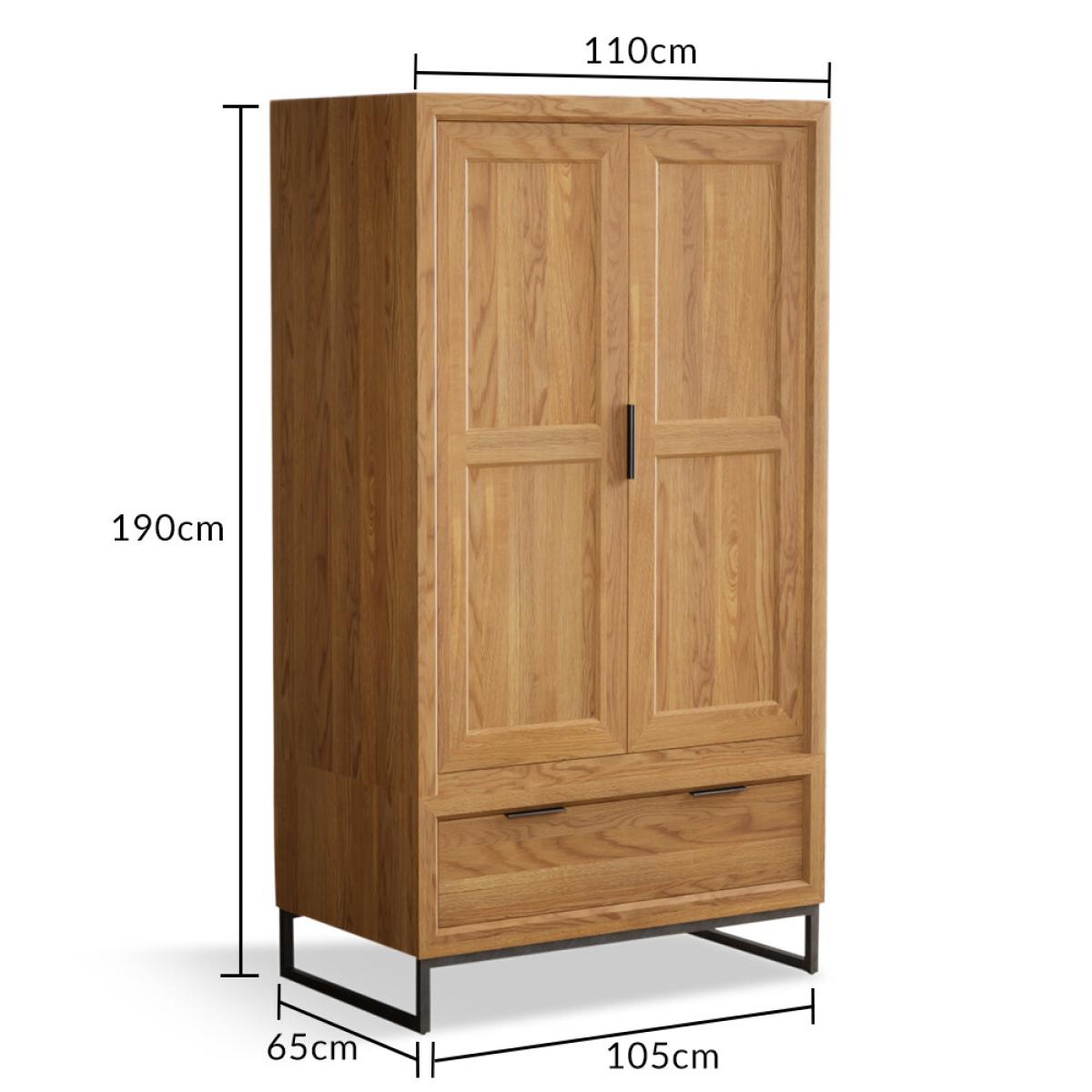 The Loft Solid Oak Double Wardrobe has been crafted using 100% solid oak and features sleek metal legs and sturdy dovetail drawers.