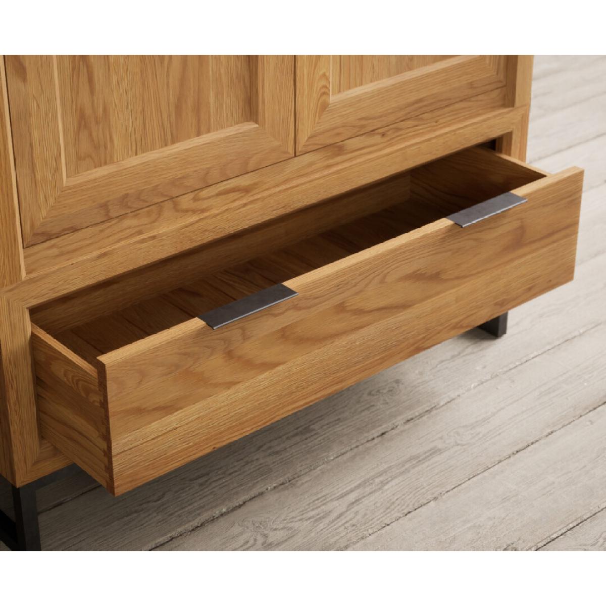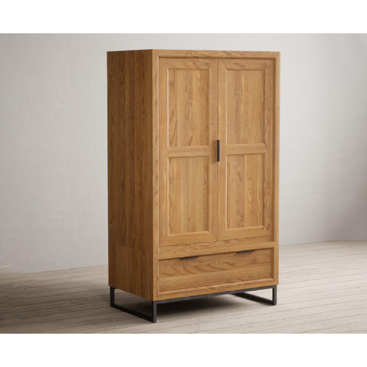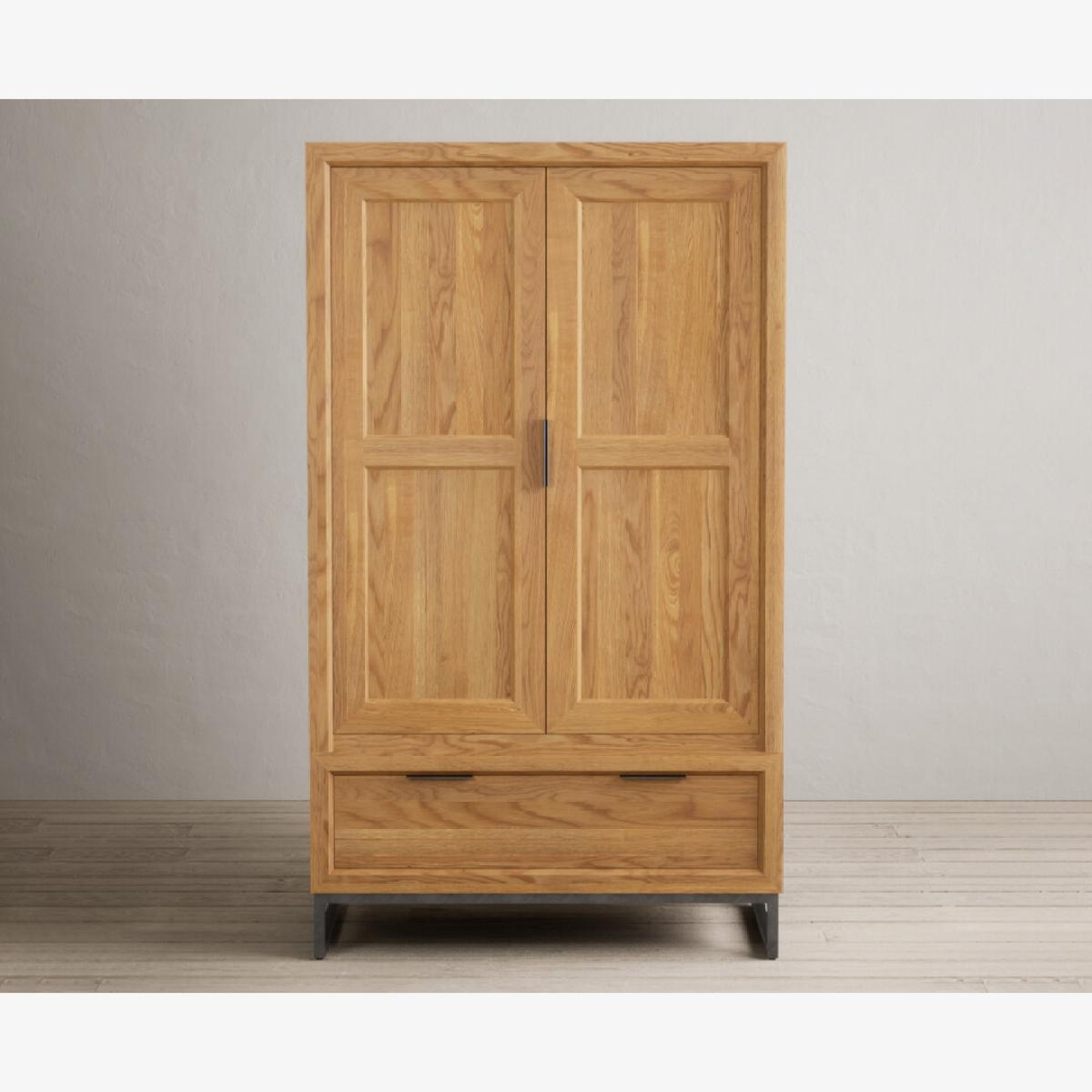 The Loft Solid Oak Double Wardrobe has been crafted using 100% solid oak and features sleek metal legs and sturdy dovetail drawers.