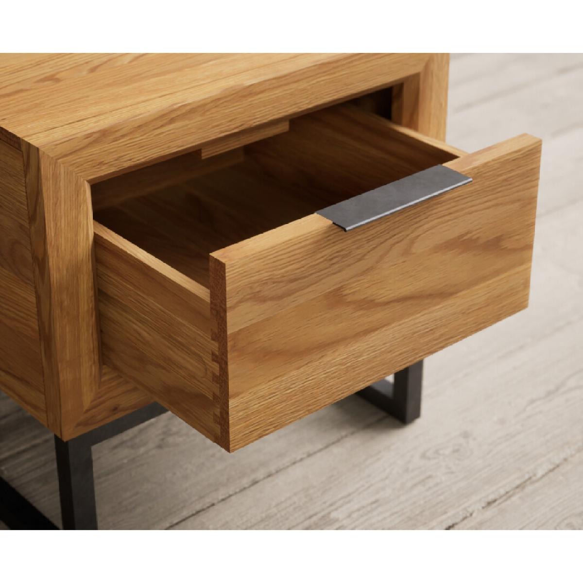 The Loft Solid Oak 1 Drawer Lamp Table has been crafted using 100% solid oak and features a natural finish, with dovetail drawers and metal legs.