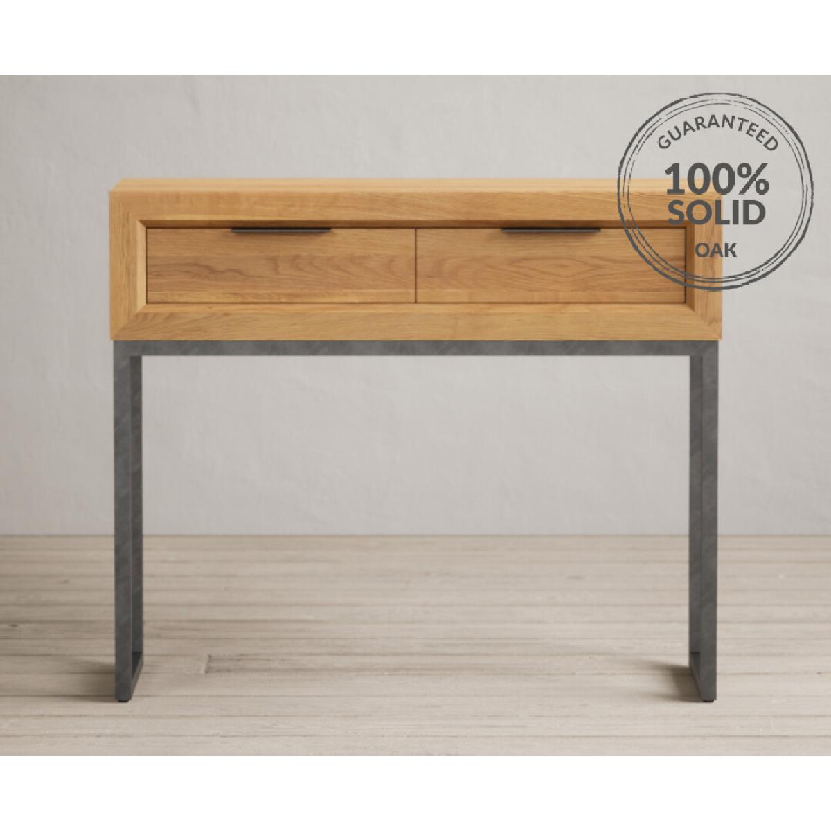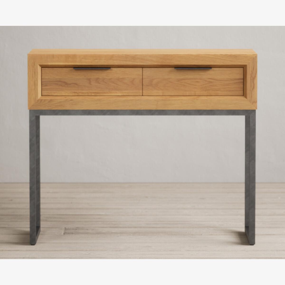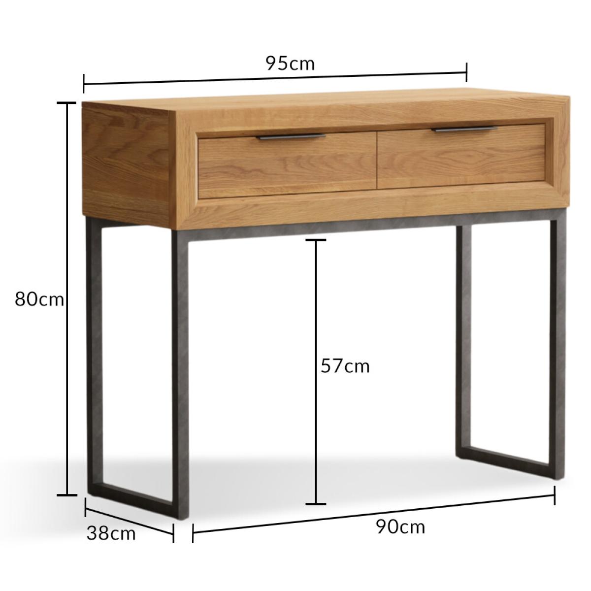 The Loft Solid Oak Storage Console Table is crafted using 100% solid oak, with metal legs and dovetail drawers.
