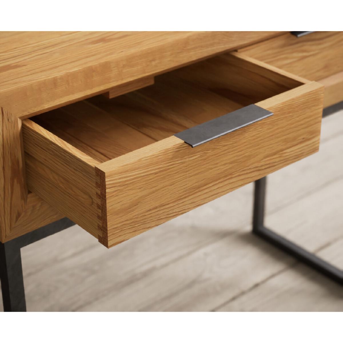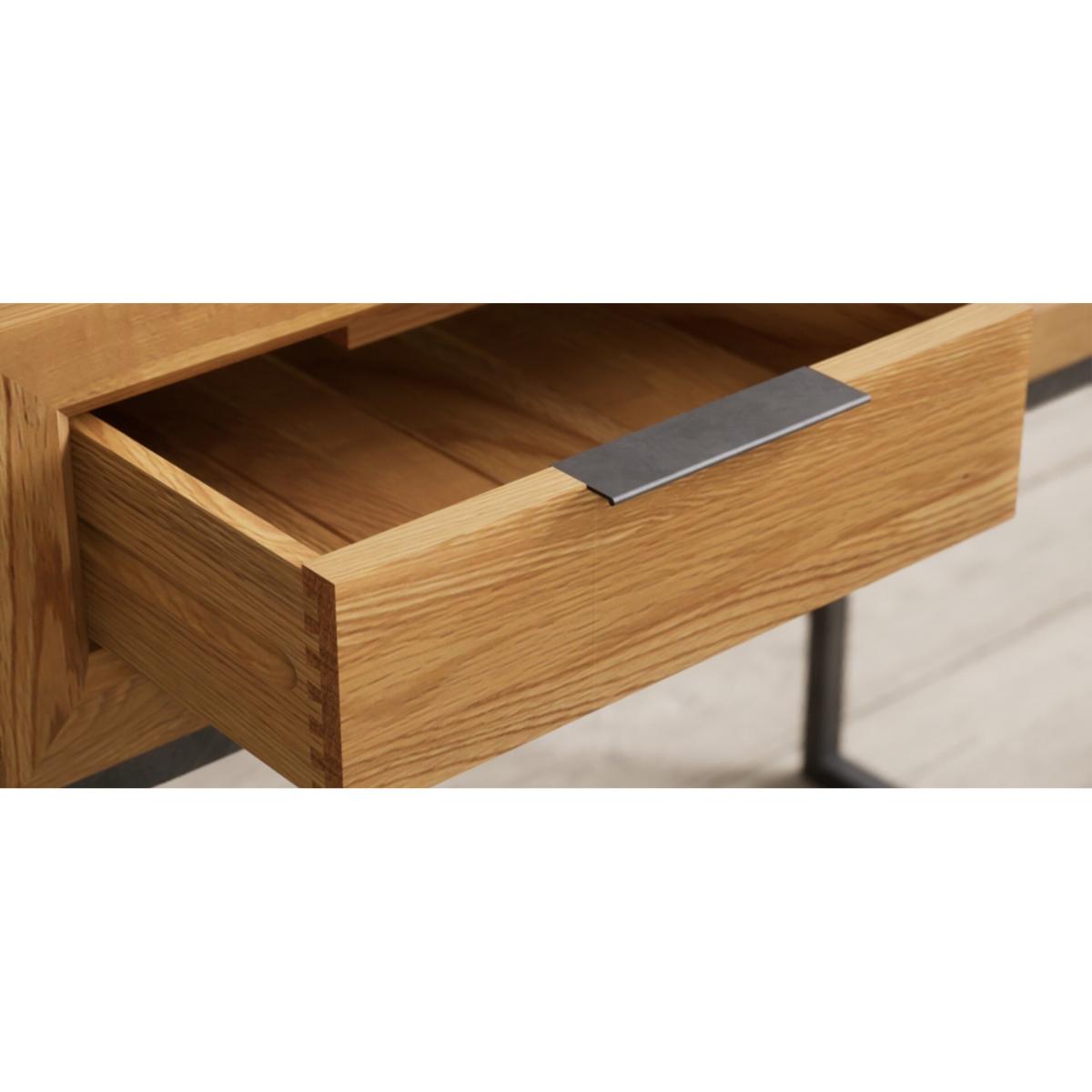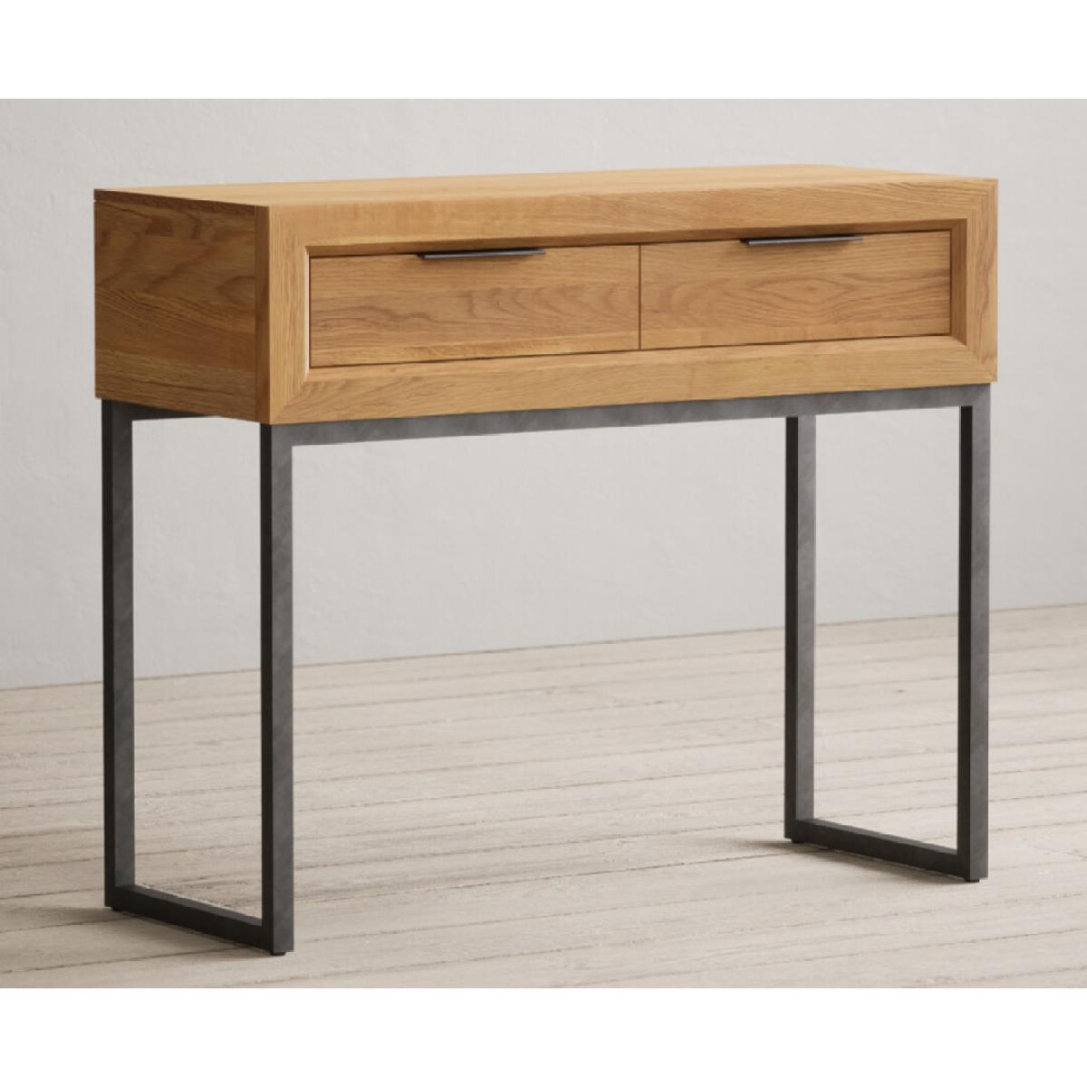 The Loft Solid Oak Storage Console Table is crafted using 100% solid oak, with metal legs and dovetail drawers.
