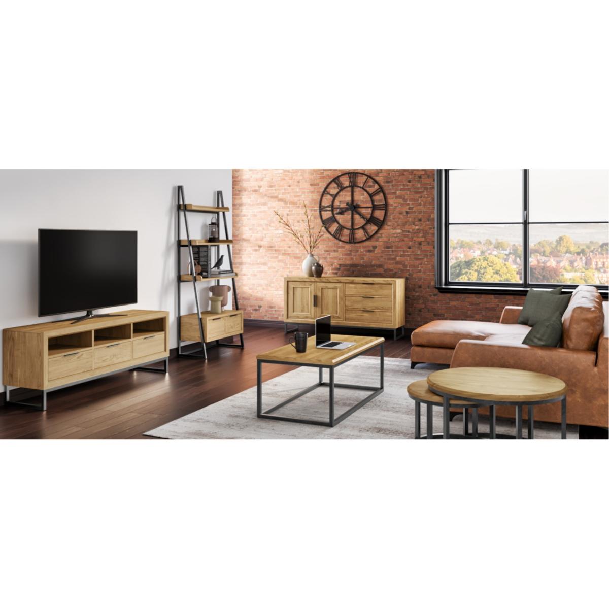 I’m a big fan of the loft console for its clean-lined oak top paired with slim, dark metal legs - it brings warmth without feeling bulky. It works equally well in Scandi-inspired hallways, pared-back industrial lofts or even modern farmhouse schemes. To style it, keep the surface uncluttered: try a slim mirror or simple artwork hung above, a pair of low-profile ceramic vases or a small lamp, then hide keys and mail in the two drawers. Finish with a low-growing potted plant at one end and a neat tray for everyday essentials.