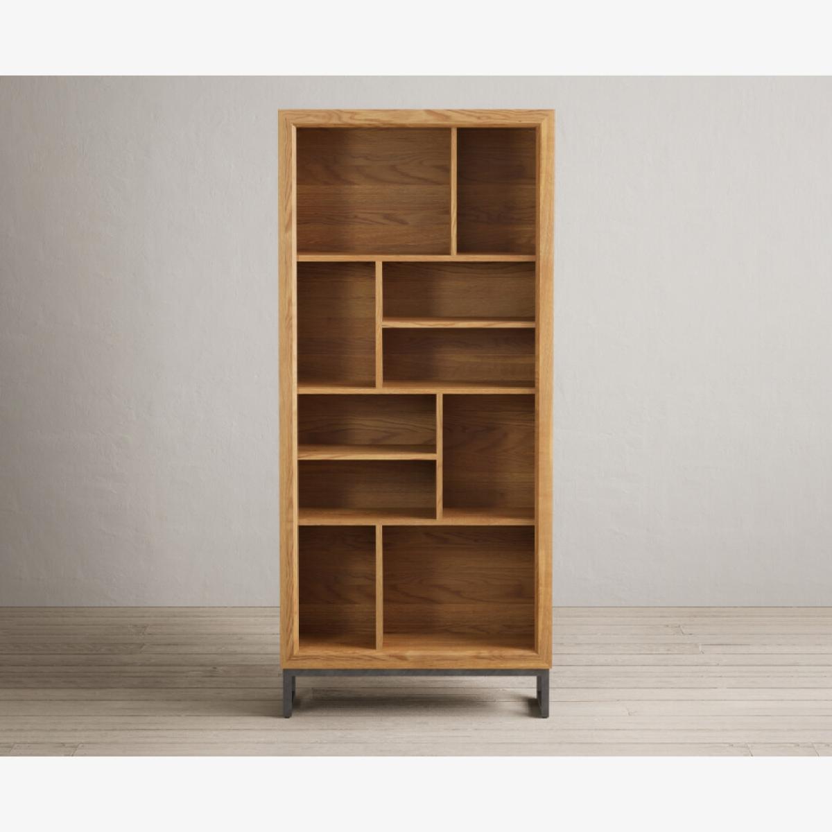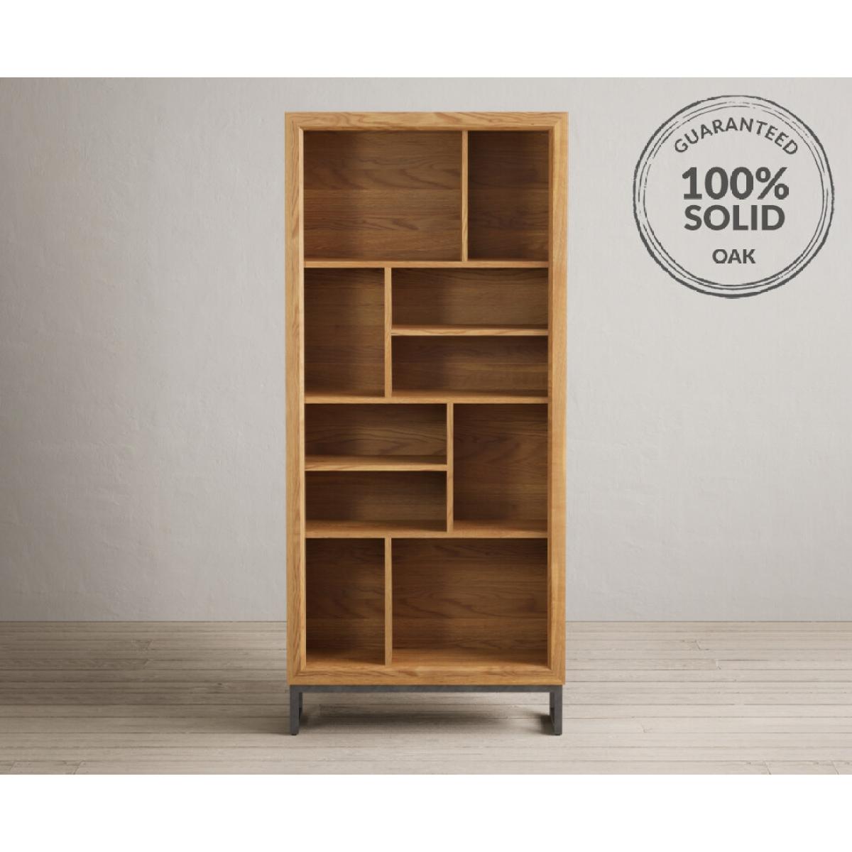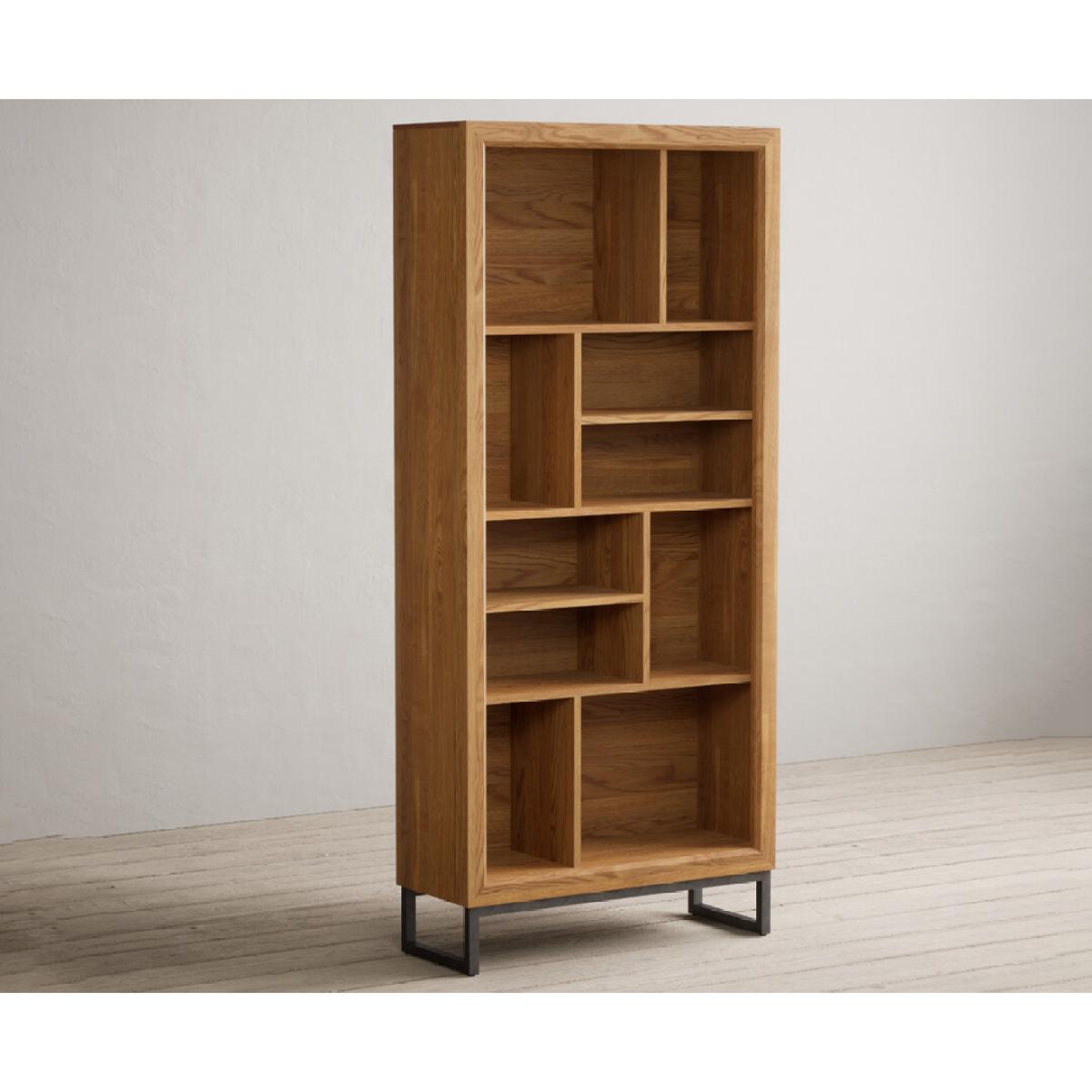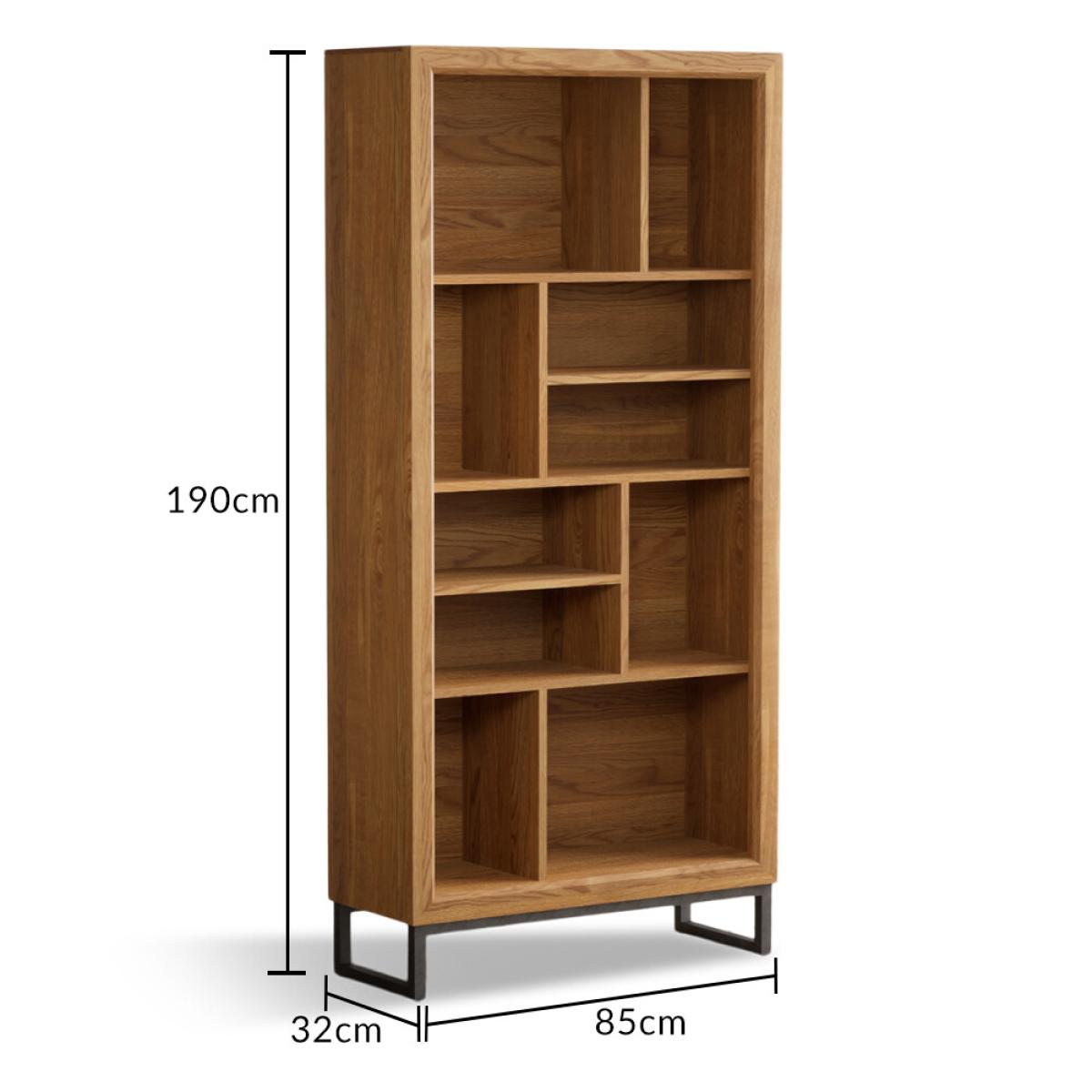 The Loft Solid Oak Tall Bookcase is crafted from 100% solid oak, with metal legs and sturdy shelves in a chic jigsaw design.