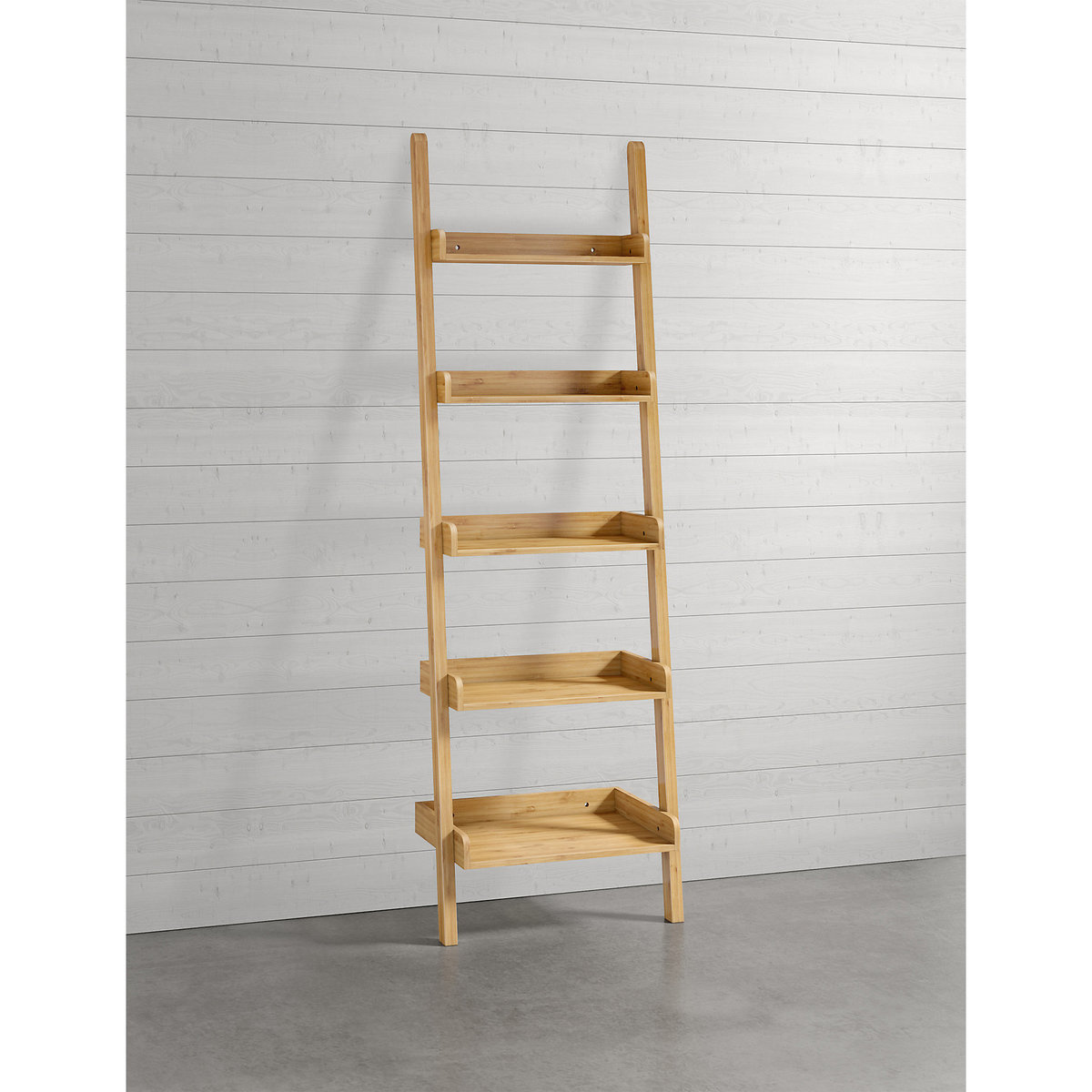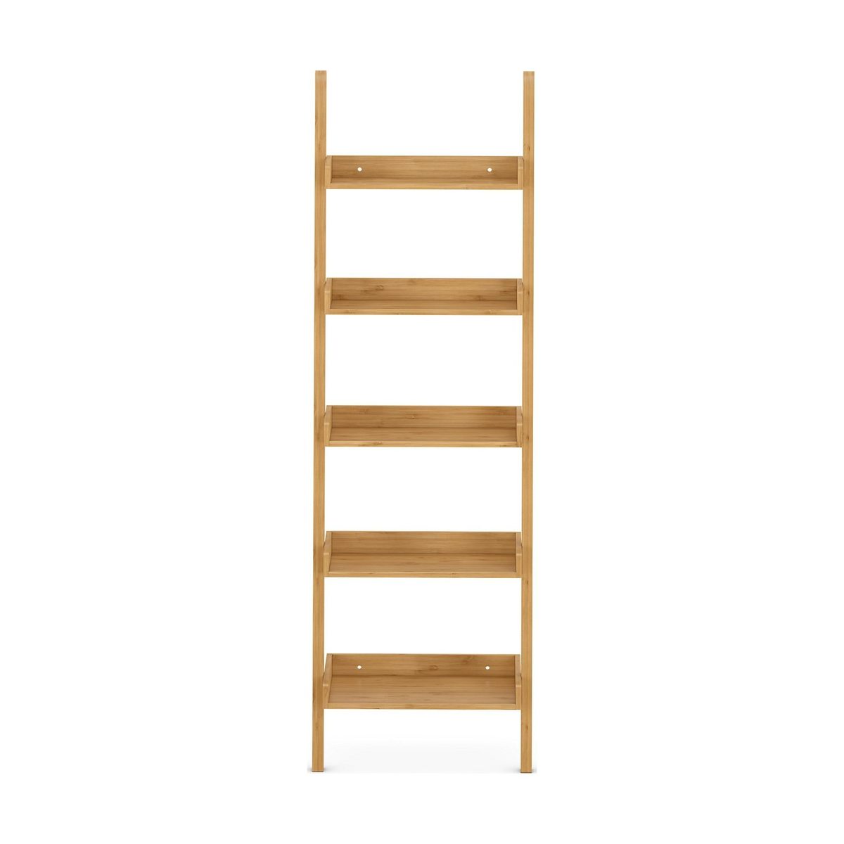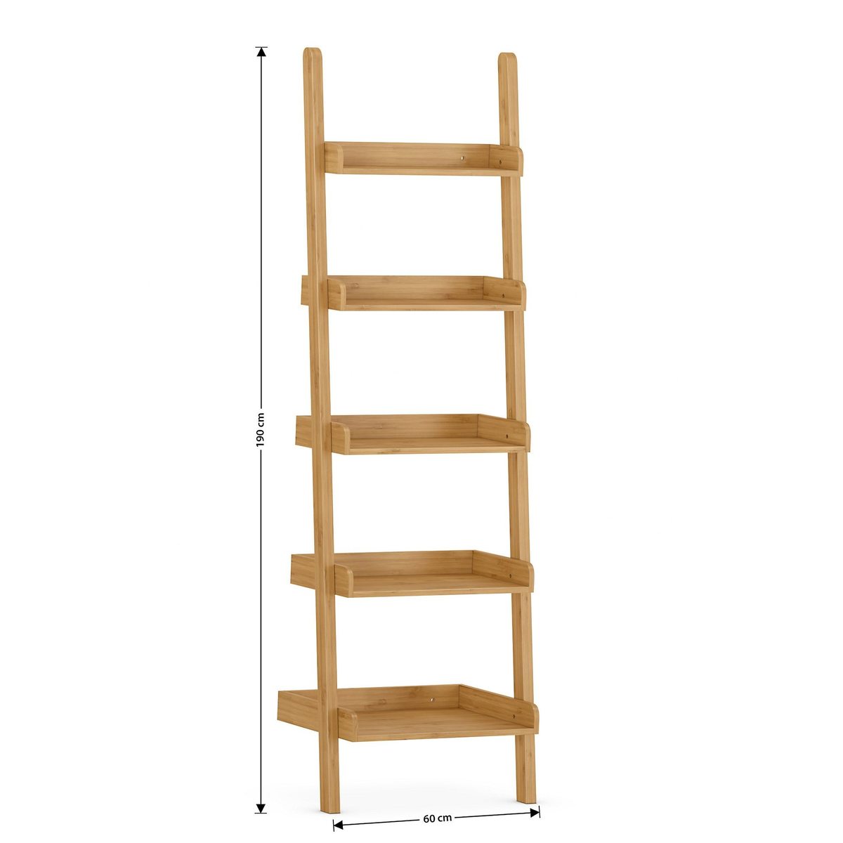 An ingenious space-saving solution, ladder shelves are a must-have for compact spaces in need of a little organisation. Our step ladder bookshelf has five ample shelves for you to proudly display your favourite books and trinkets while leaving a minimal footprint. Crafted from wood for a sturdy and durable build, each shelf securely holds your possessions thanks to a lipped tray design. In a gorgeous natural wood shade, this is the perfect way to lighten up contemporary and traditional spaces alike."}