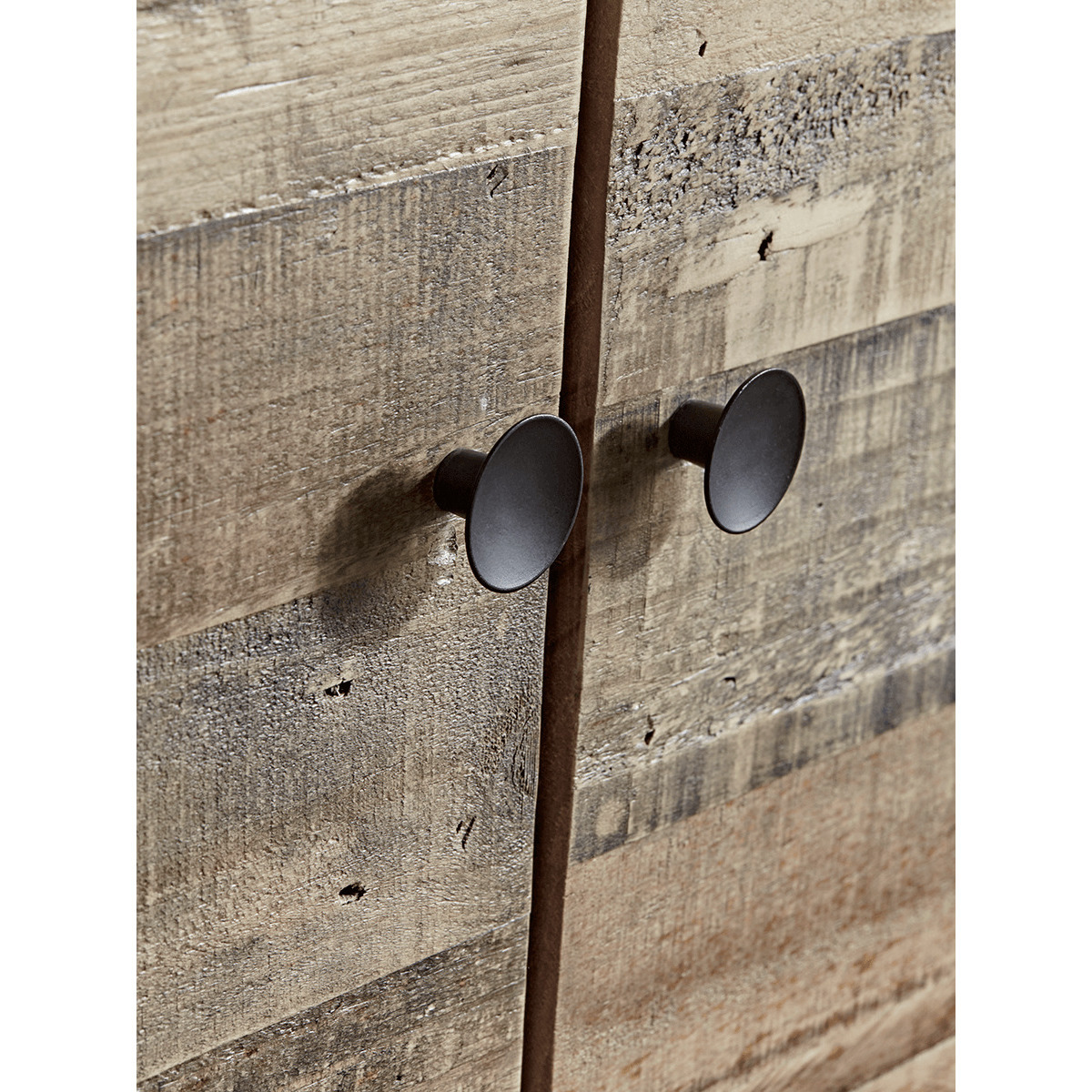 Crafted in solid wood that has been carefully aged with character details for a reclaimed look, encased in a smooth edge frame, each Loft Wardrobe is unique. With rich black metal hardware and a bold functional form, our statement bedroom piece takes inspiration from repurposed industrial pieces to strike a contemporary punch in any interior. To browse matching pieces view our Loft Furniture Collection.